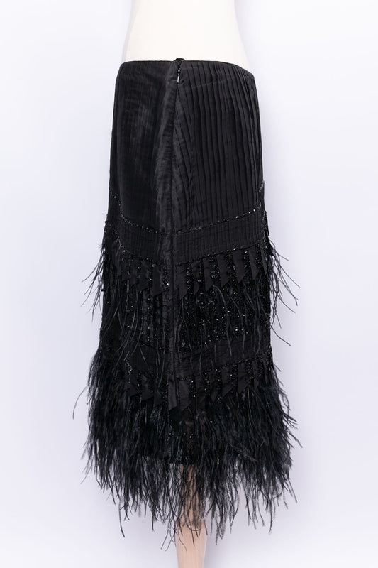 Jupe à plumes en soie Oscar de la Renta