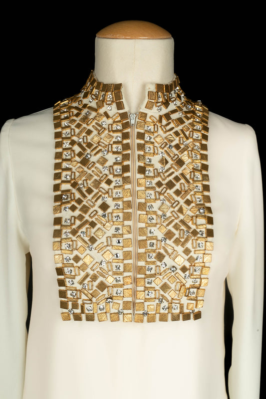 Haut perlé blanc et corail Louis Féraud Haute Couture
