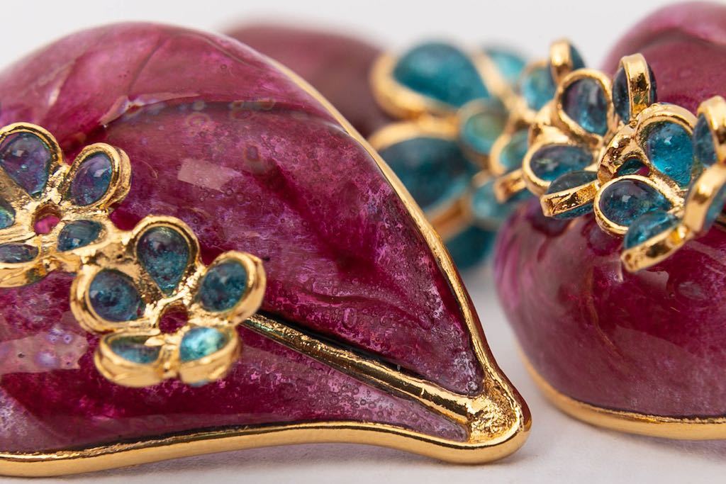 Developed by Gripoix in the 19th century, the glass paste technique uses coloured glass pieces, finely shaped, bringing a touch of art and sophistication to the creations of Augustine.