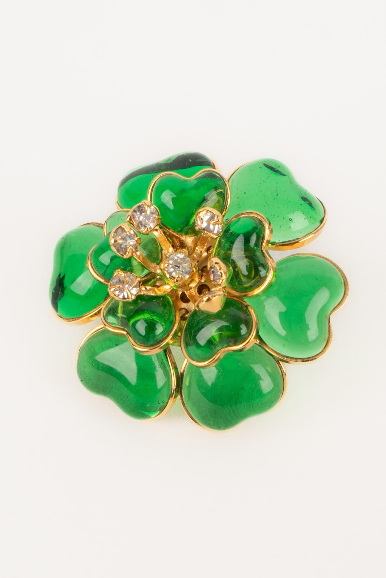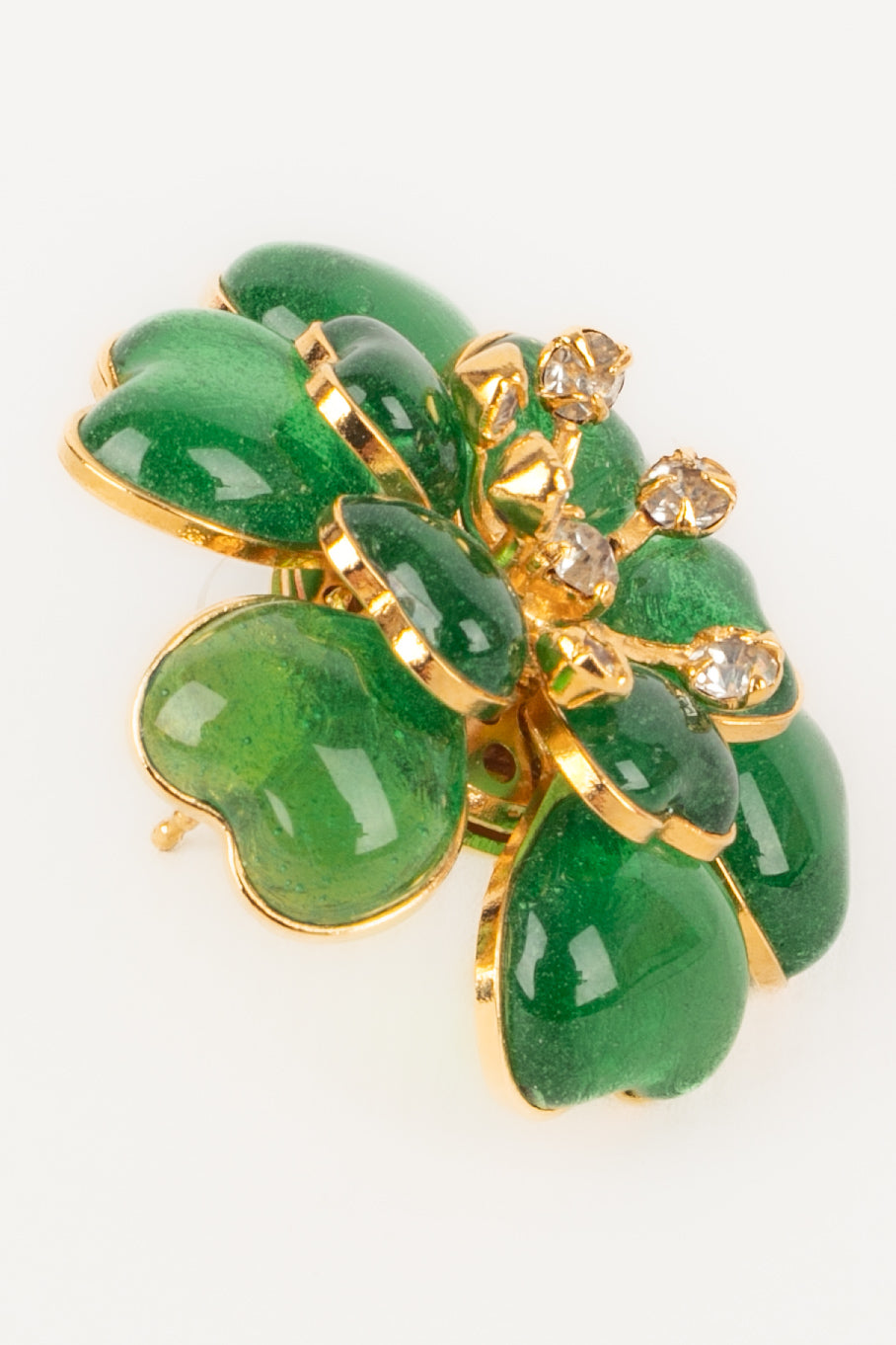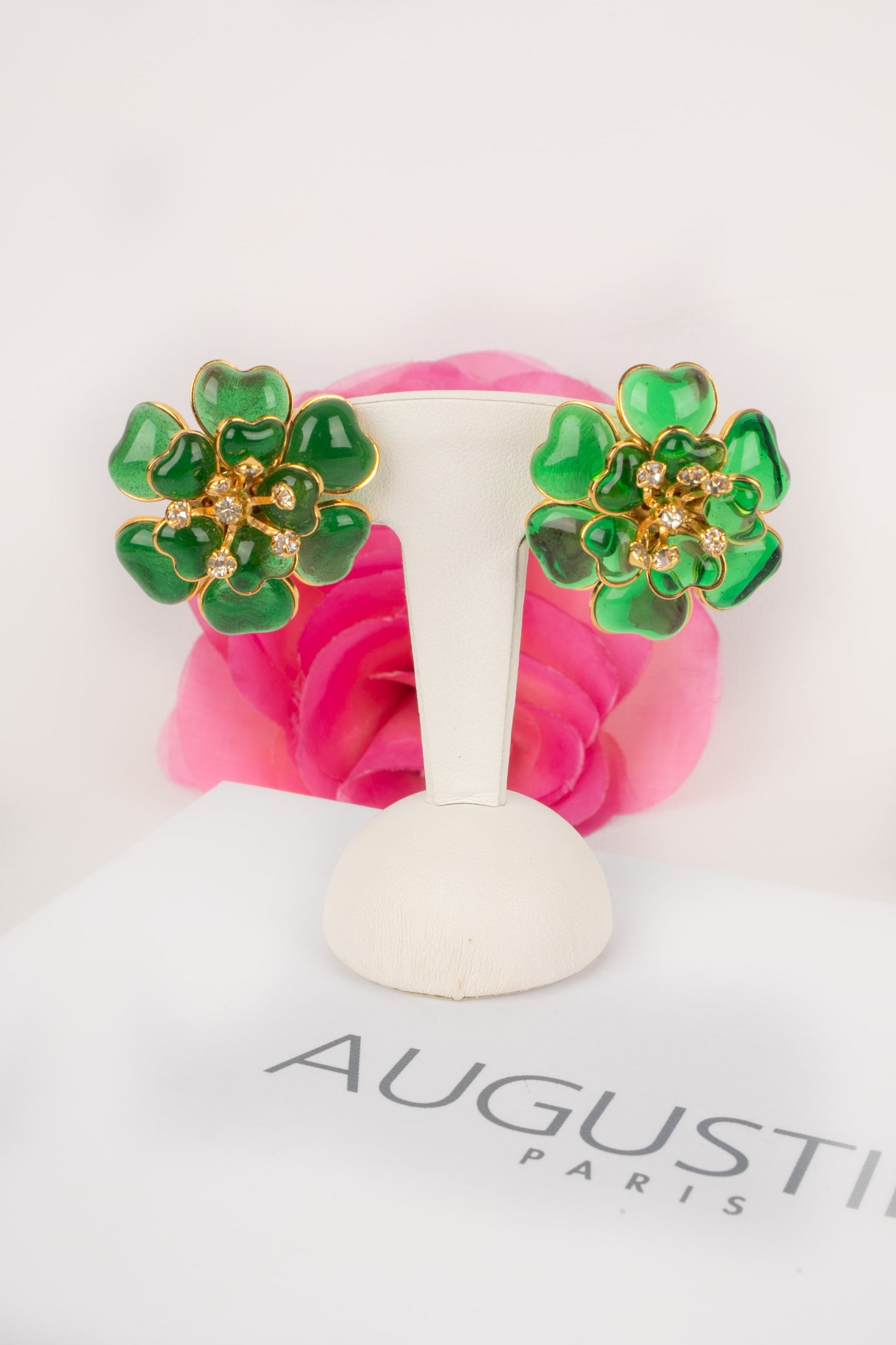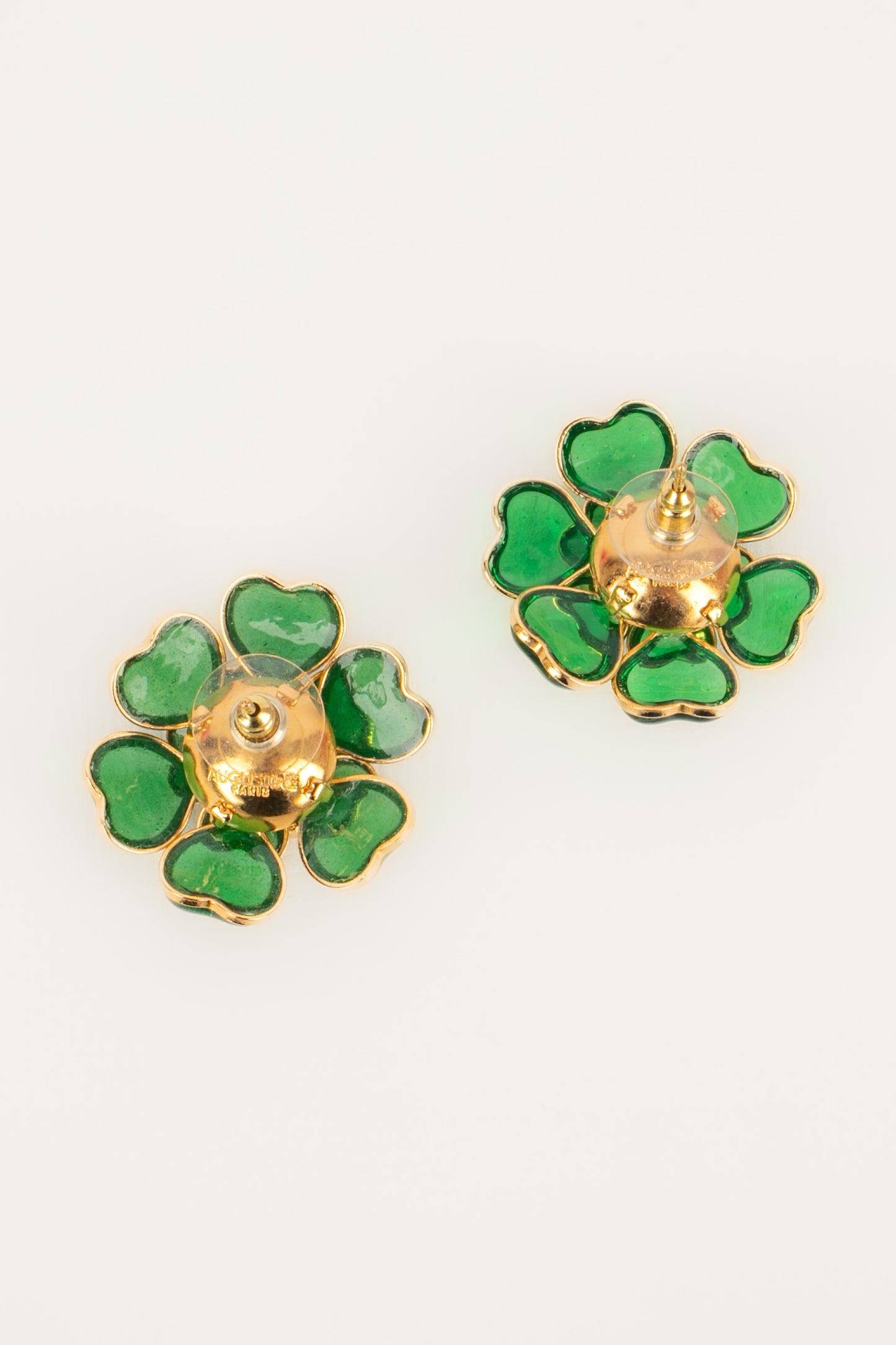 Developed by Gripoix in the 19th century, the glass paste technique uses coloured glass pieces, finely shaped, bringing a touch of art and sophistication to the creations of Augustine.