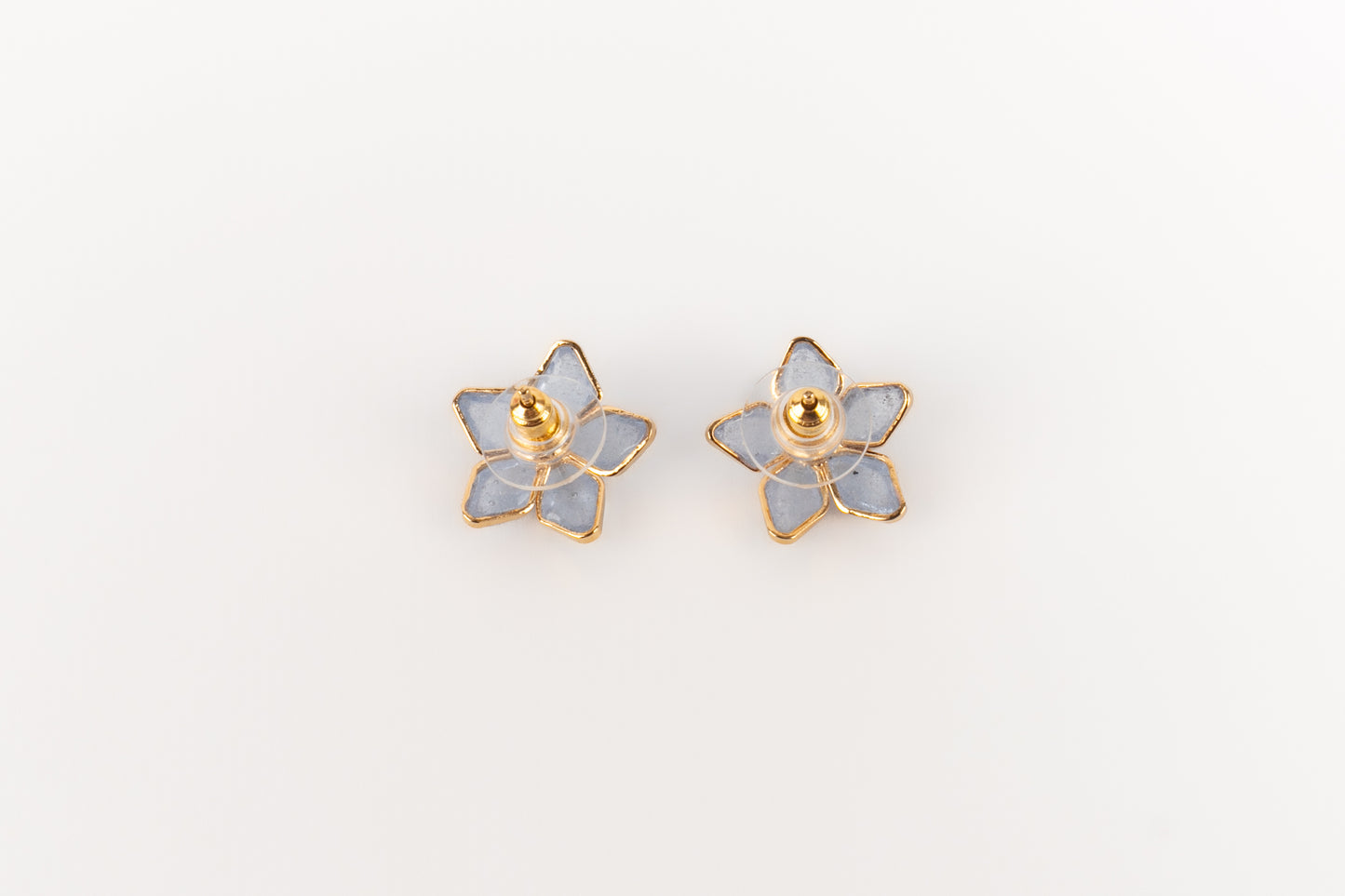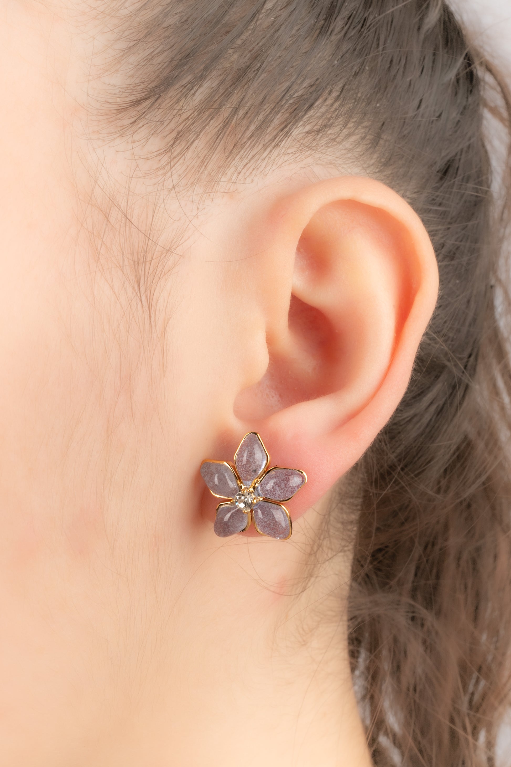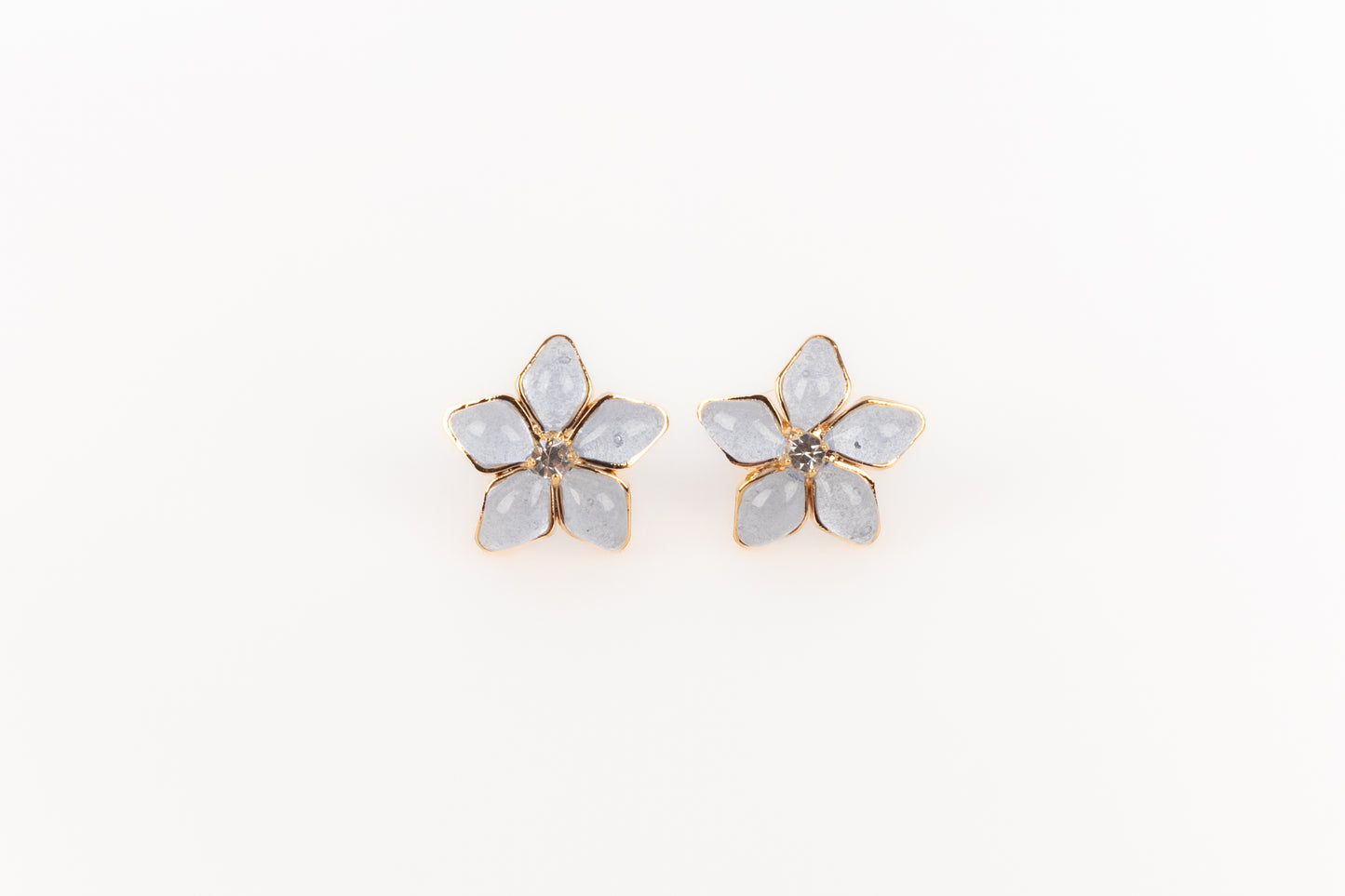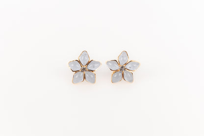 AUGUSTINE - (Made in France) Golden metal earrings with rhinestones and greyish-blue transparent glass paste.