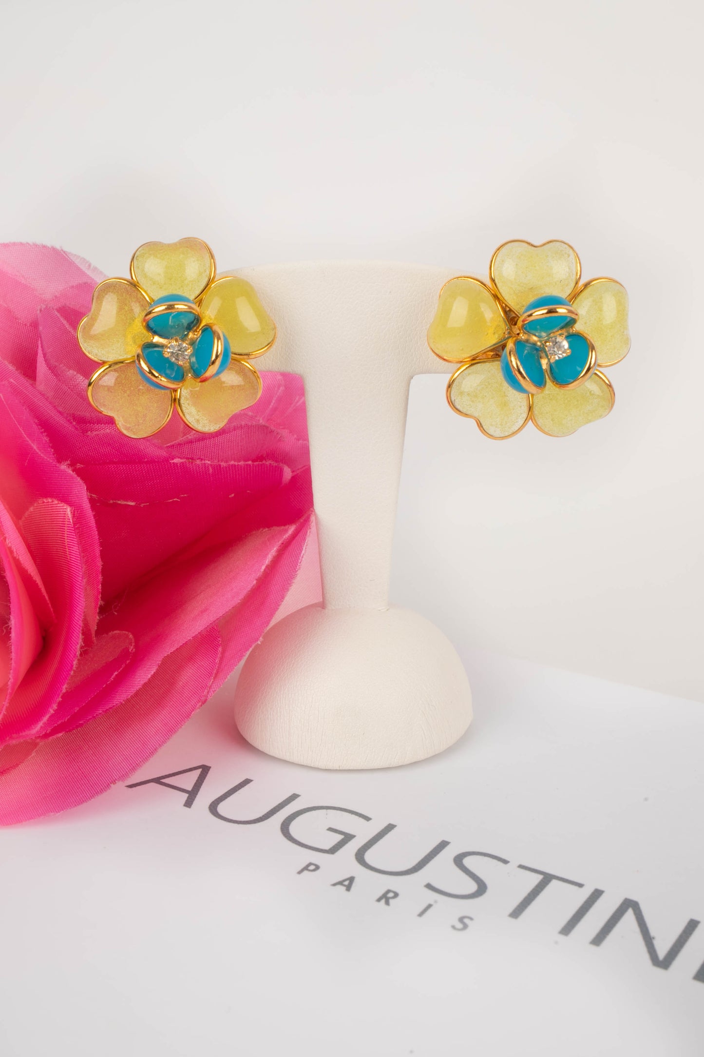 Developed by Gripoix in the 19th century, the glass paste technique uses coloured glass pieces, finely shaped, bringing a touch of art and sophistication to the creations of Augustine.