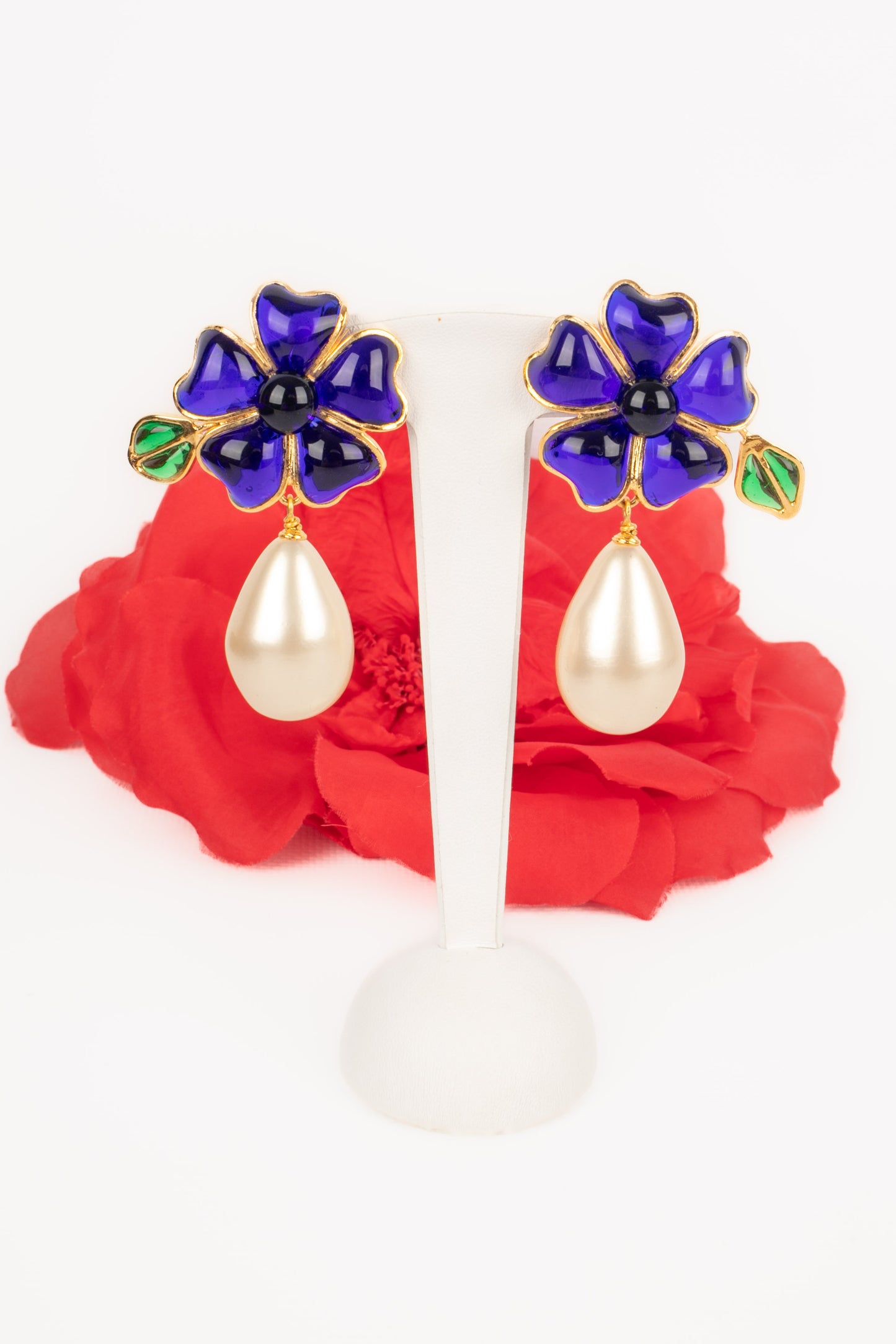 Developed by Gripoix in the 19th century, the glass paste technique uses coloured glass pieces, finely shaped, bringing a touch of art and sophistication to the creations of Augustine.
