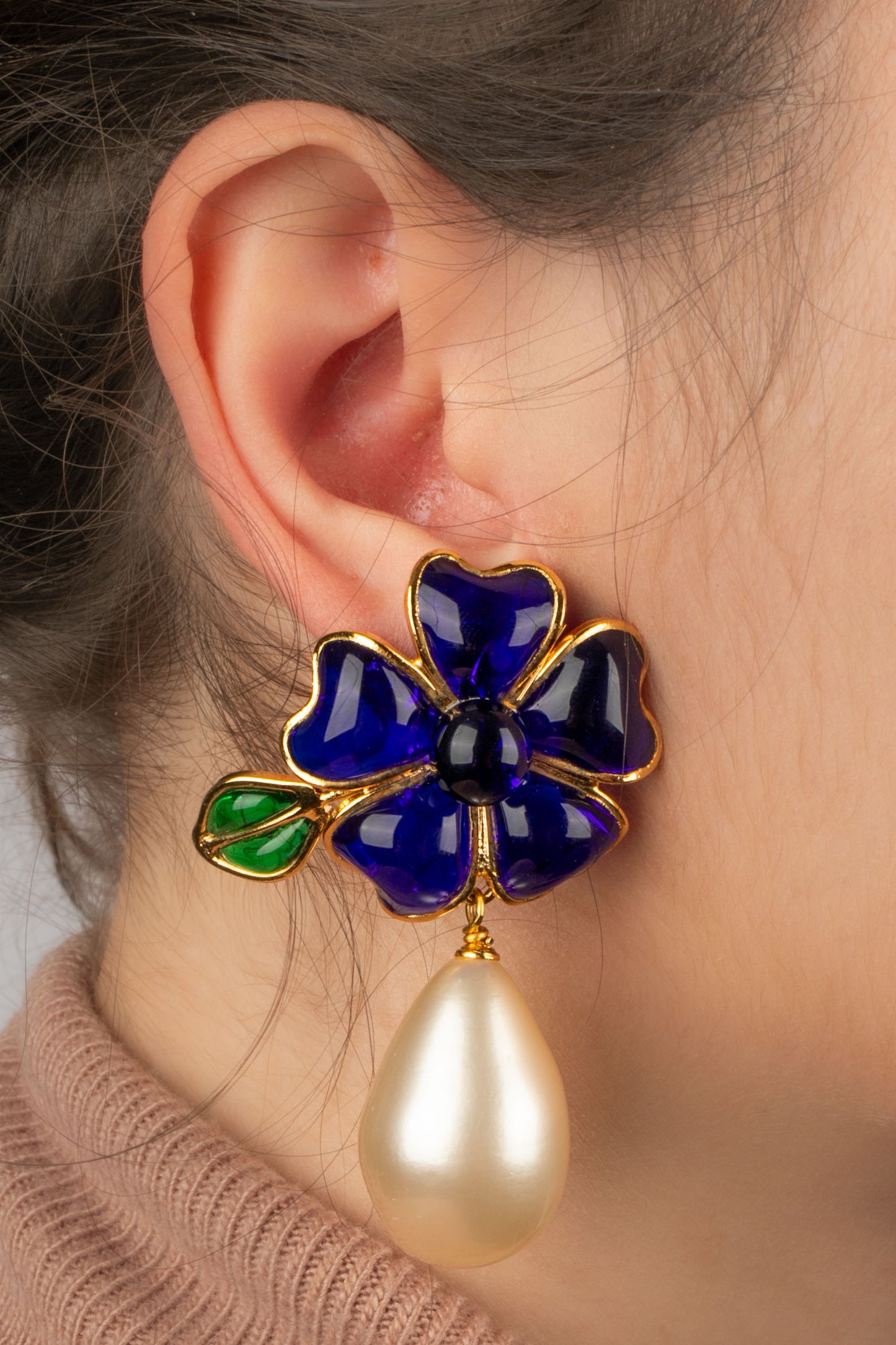 Discover our range of vintage costume earrings from the major fashion houses. Each pair, as Chanel’s famous CC earrings, is hard-to-find and unique piece, embodying luxury and timeless elegance. Whether you are looking for sparkling stones or costume pearls, our creations bring a touch of exclusivity to your style.