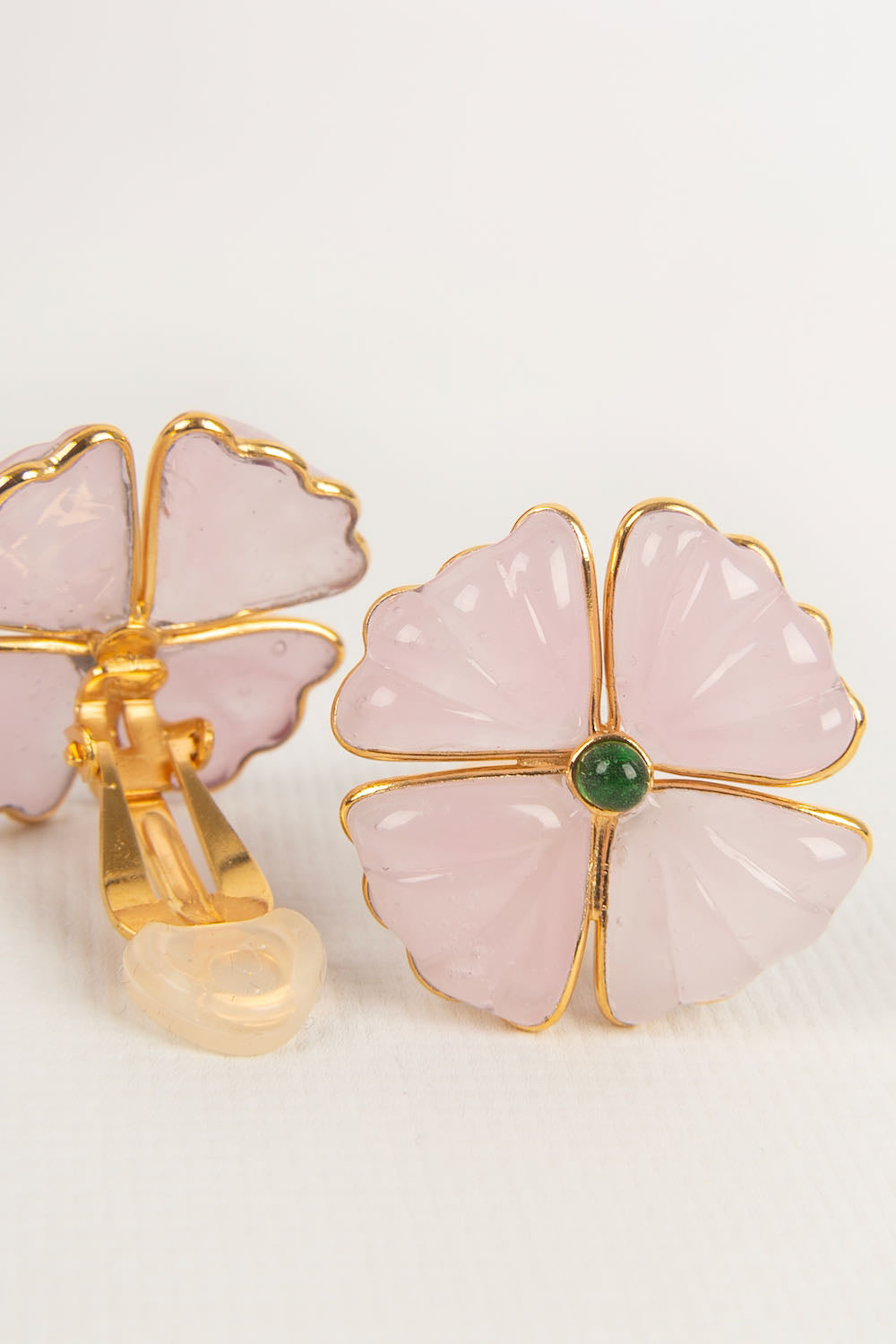 AUGUSTINE -(Made in France) Golden metal and glass paste clip-on earrings.