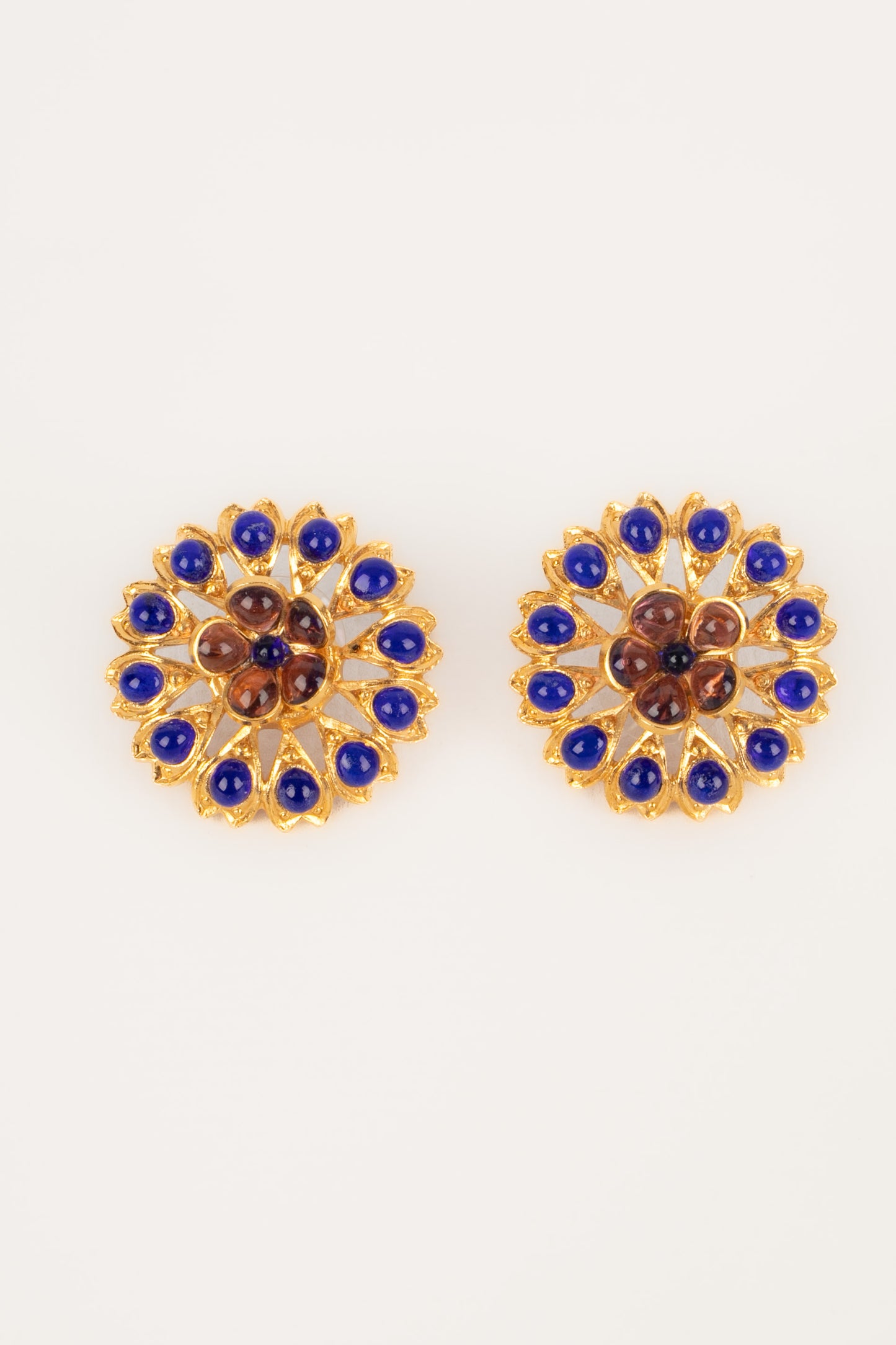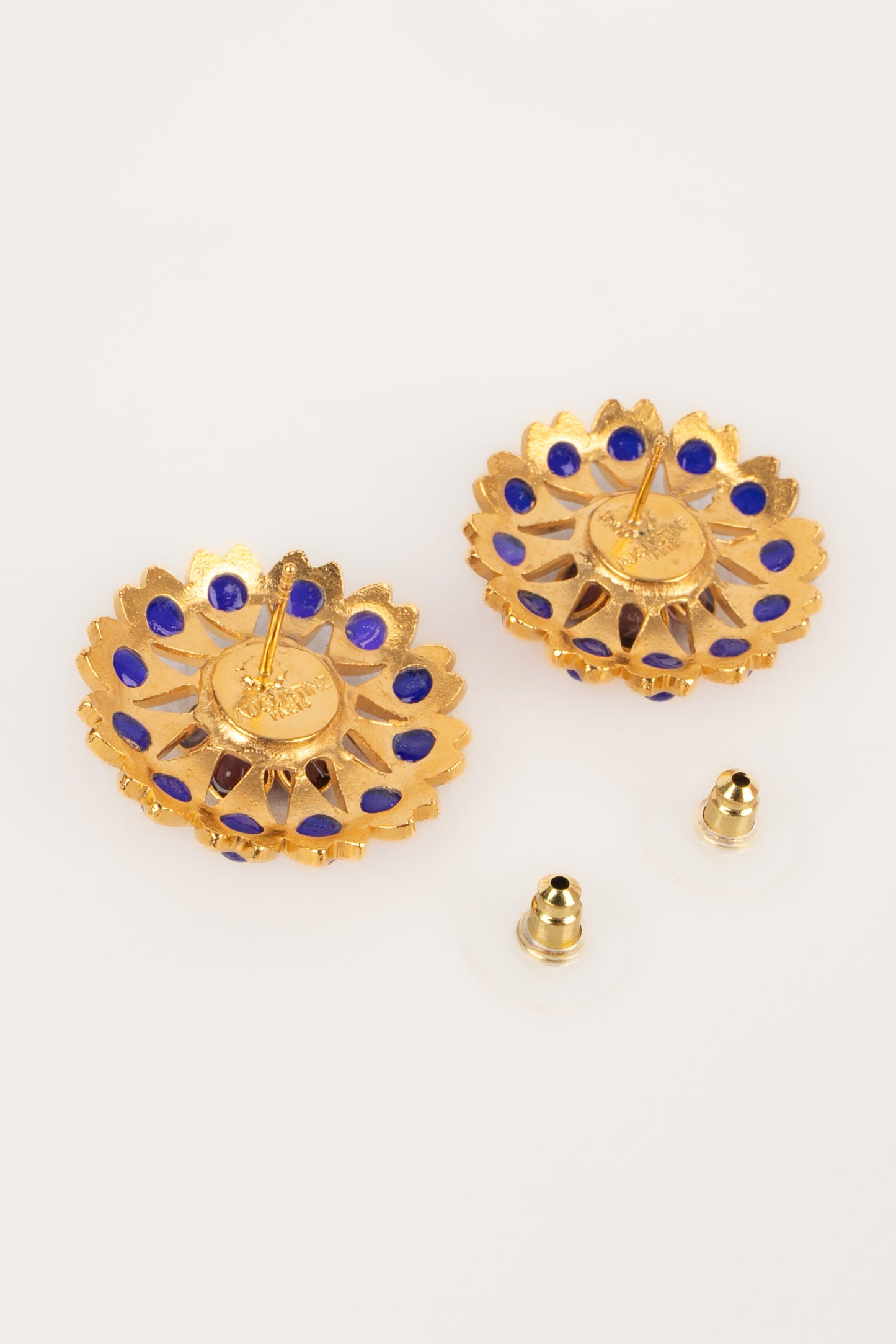 AUGUSTINE - (Made in France) Golden metal openwork earrings with glass paste.