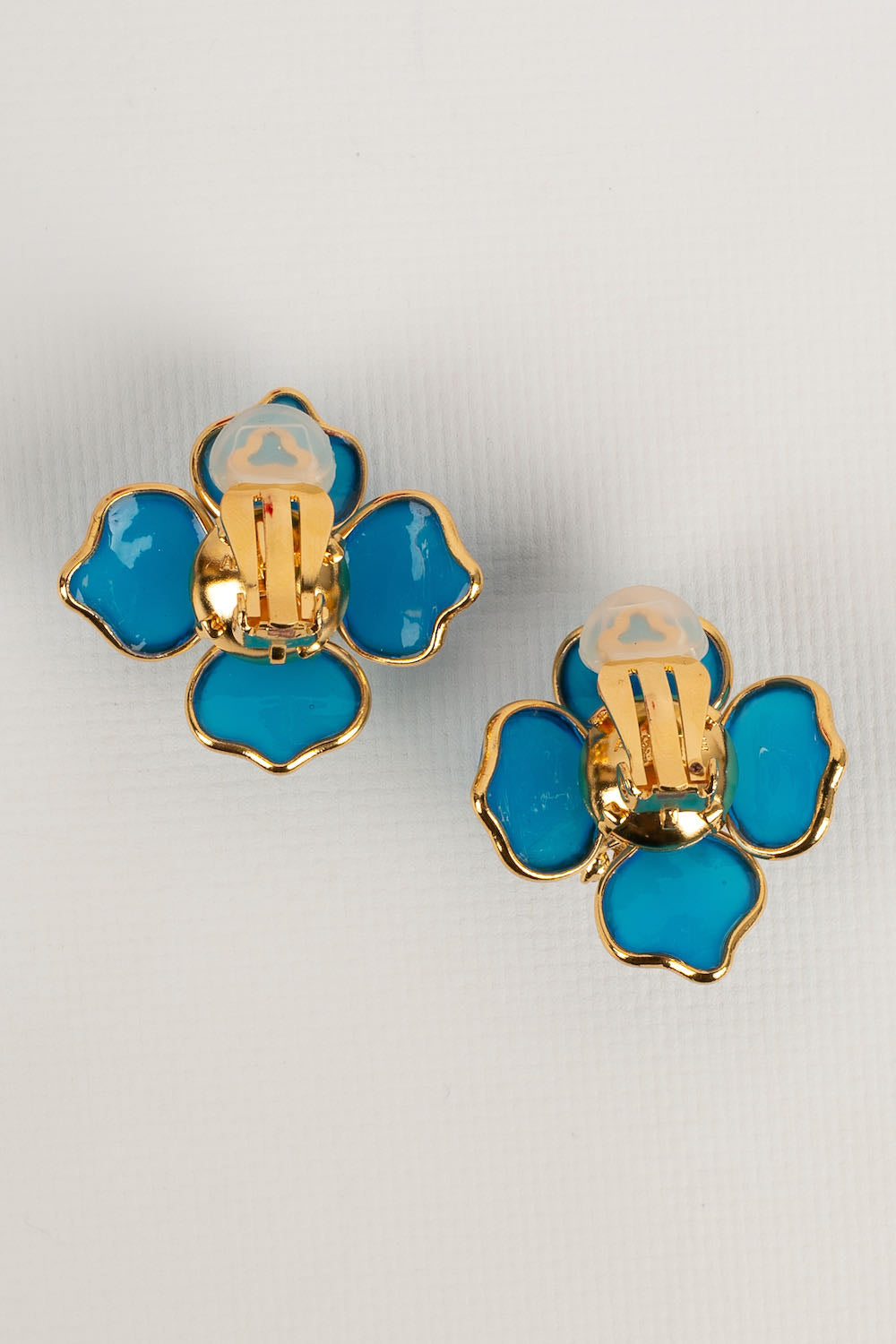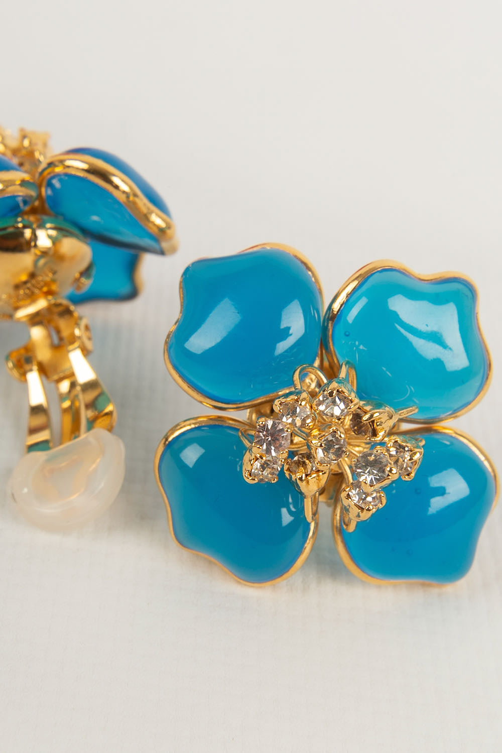 AUGUSTINE -(Made in France) Golden metal and glass paste clip-on earrings.