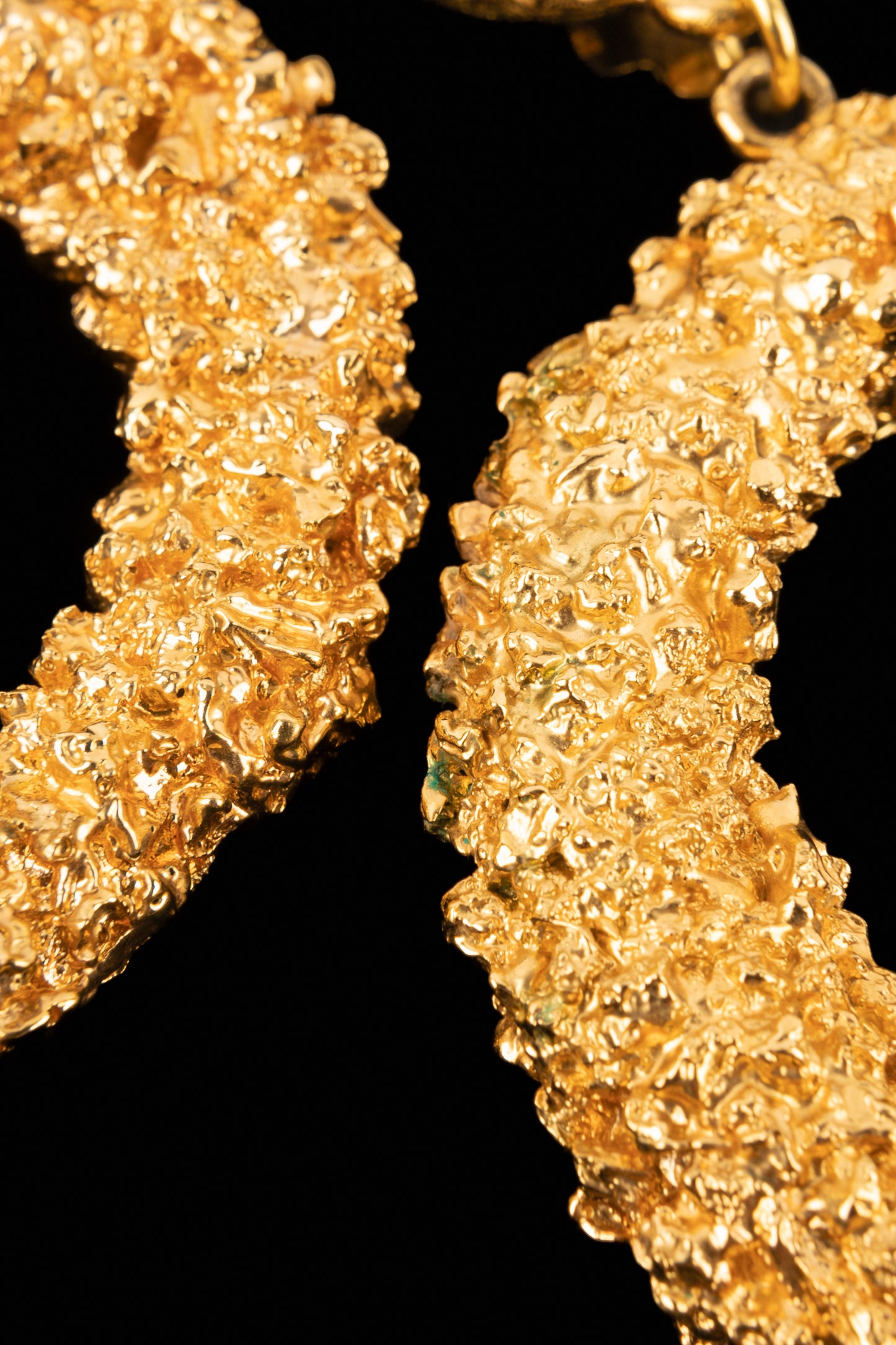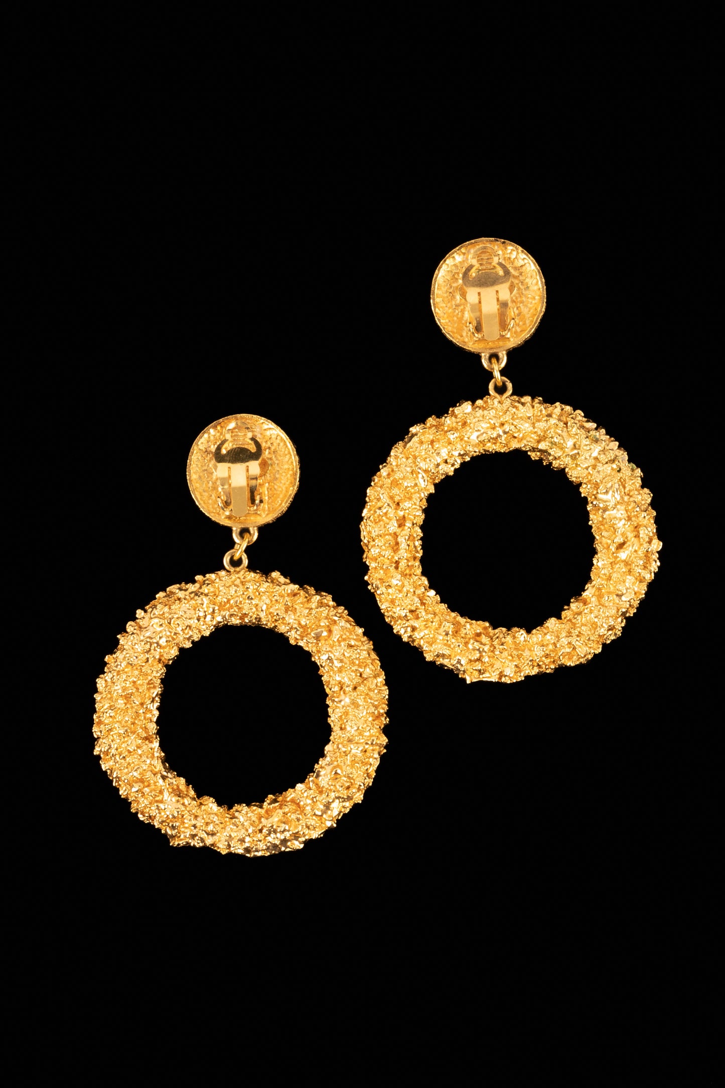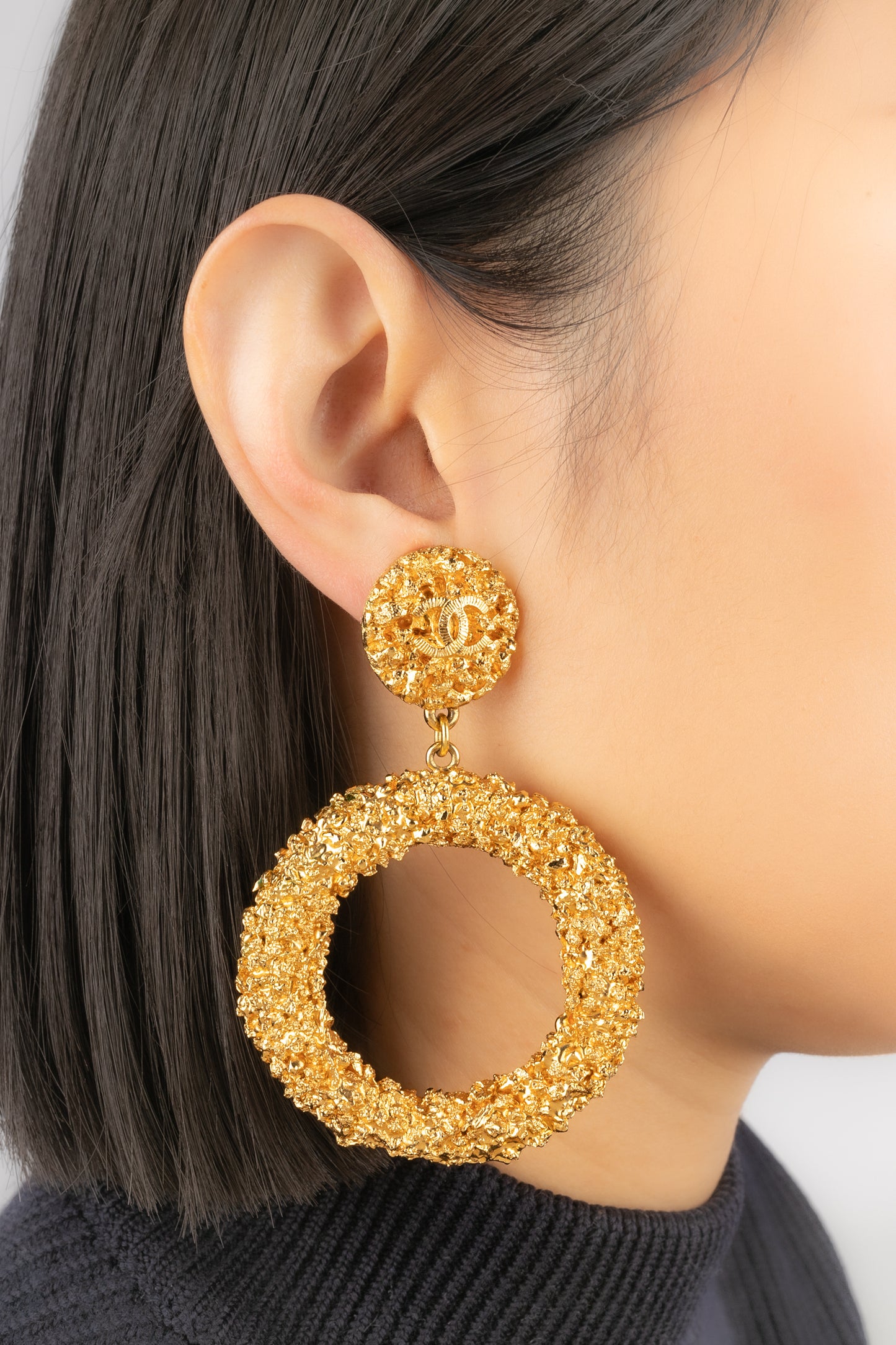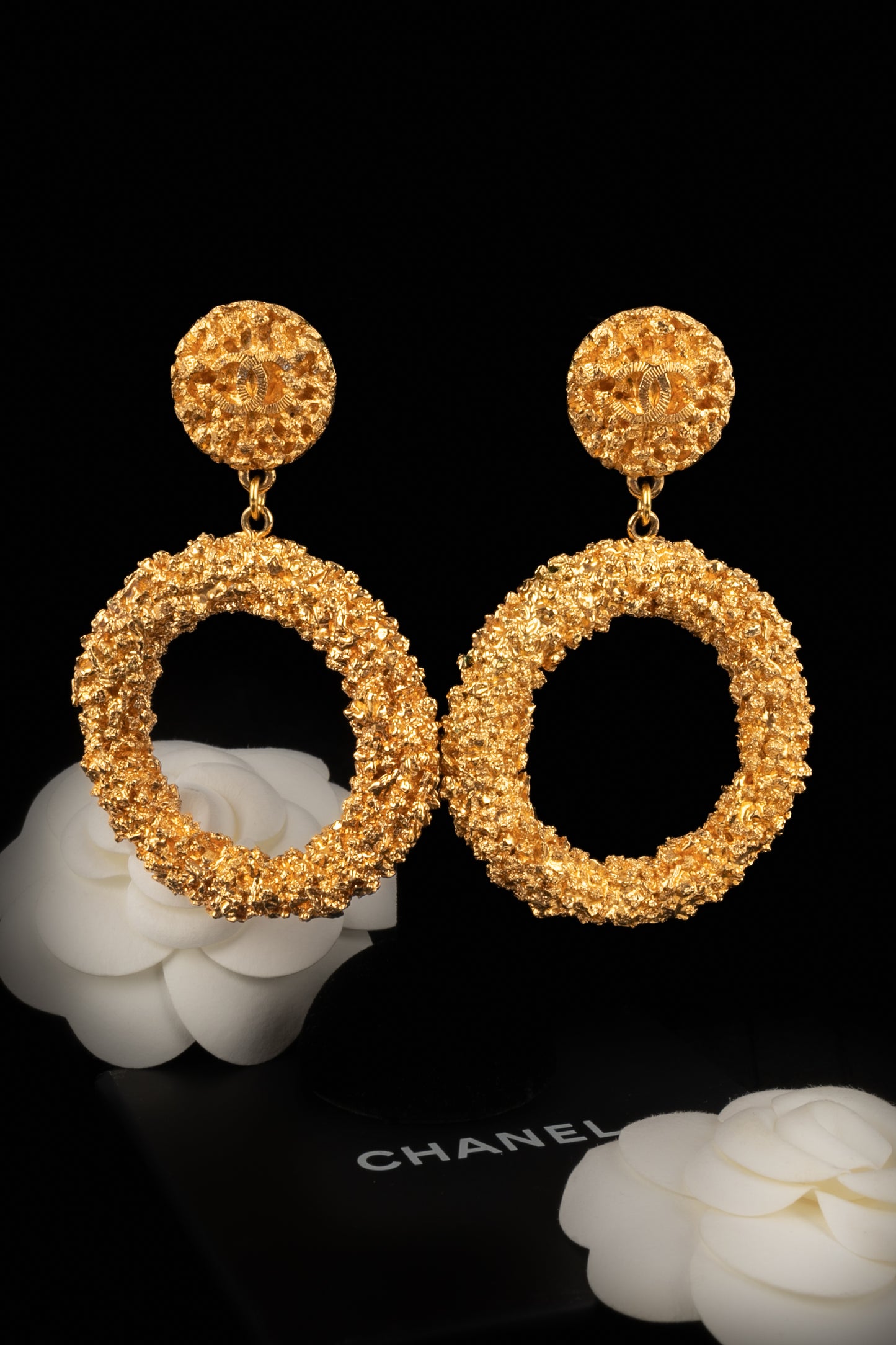 CHANEL - (Made in France) Golden metal large-hoop-style earrings. 1993 Cruise Collection, under the artistic direction of Karl Lagerfeld.