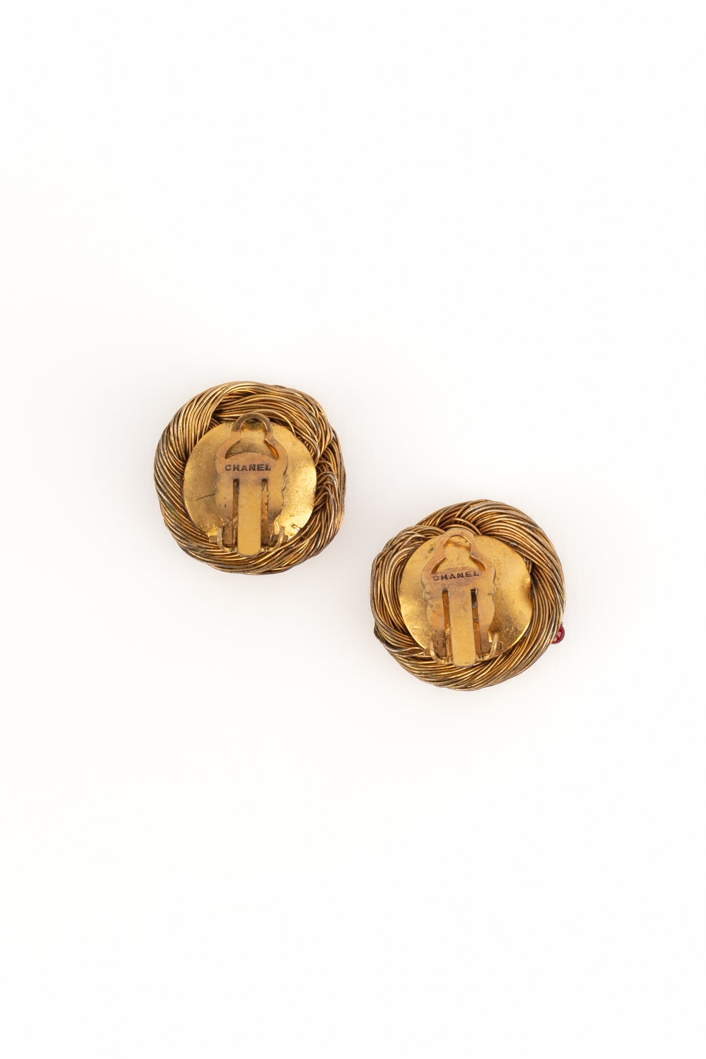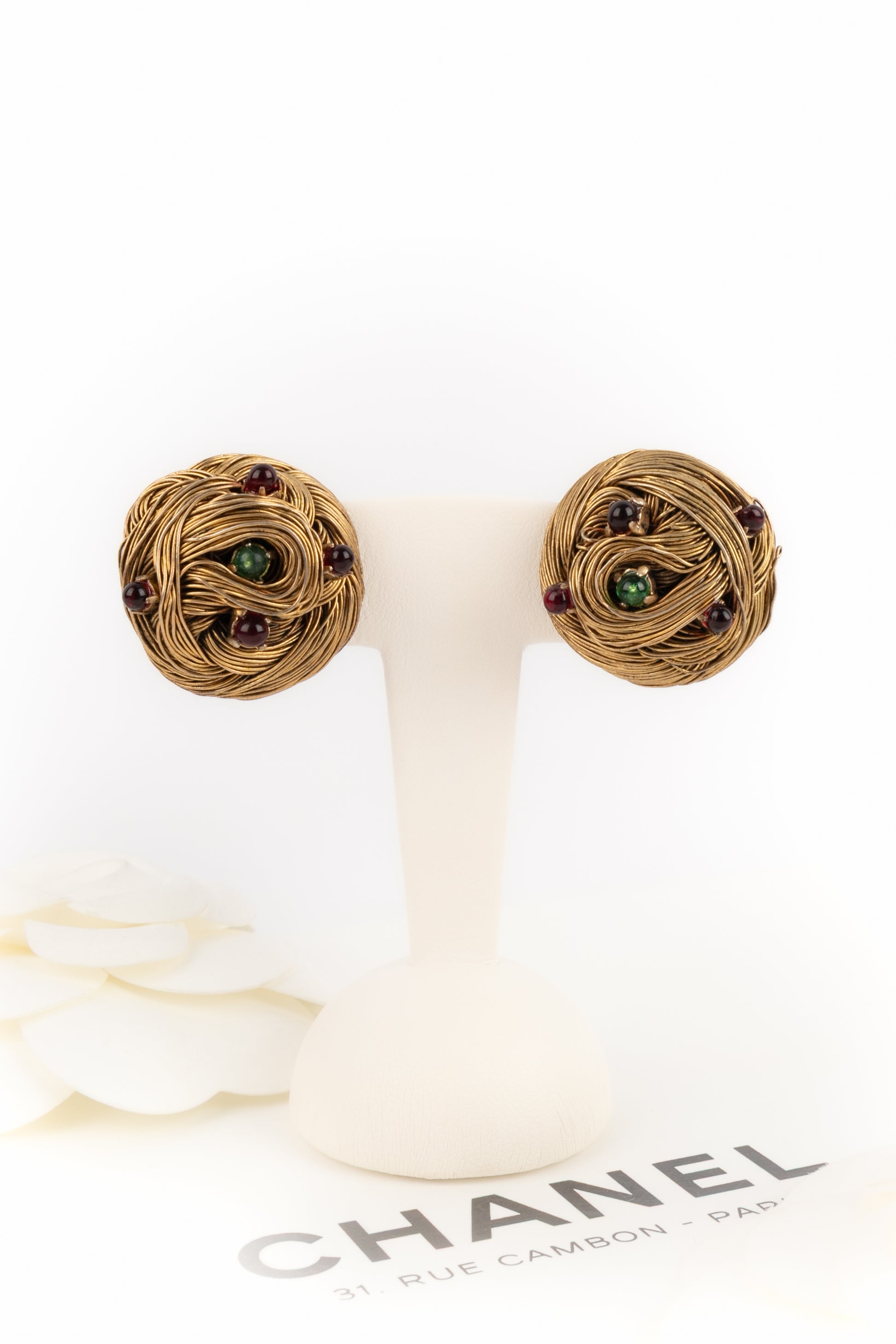 CHANEL - (Made in France) Golden metal clip-on earrings with tiny glass pearls. A Haute Couture Collection.