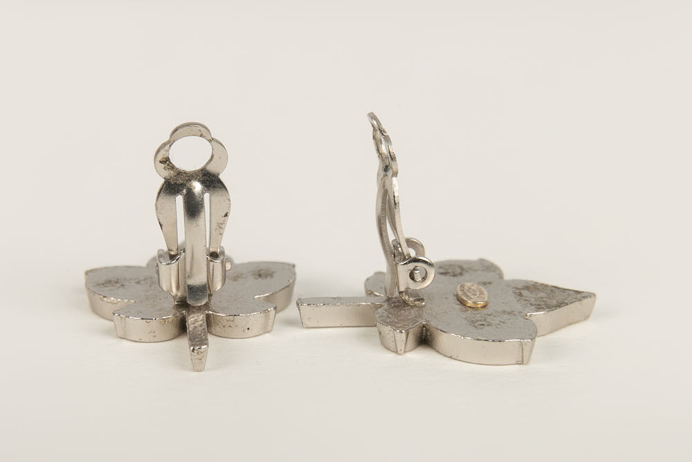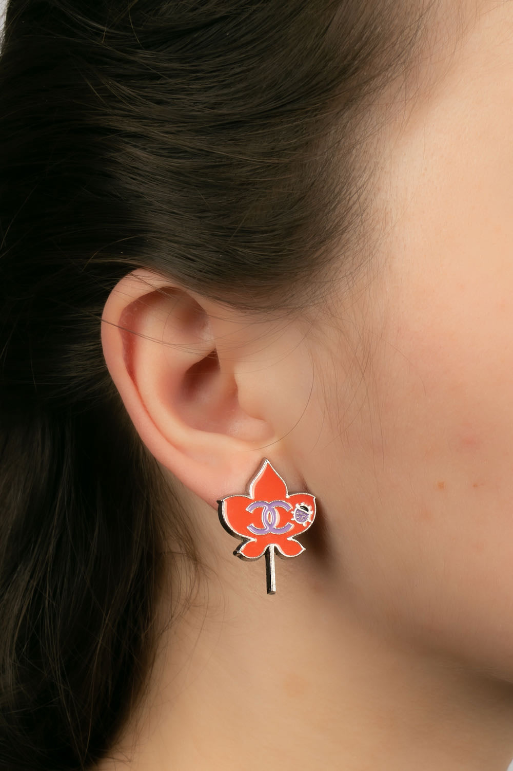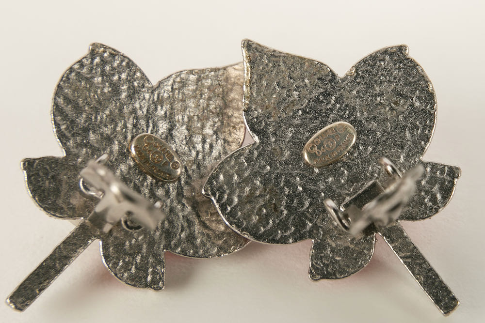 CHANEL -(Made in France) Clip-on earrings in silvery metal enamelled. Spring-Summer 2004 collection.