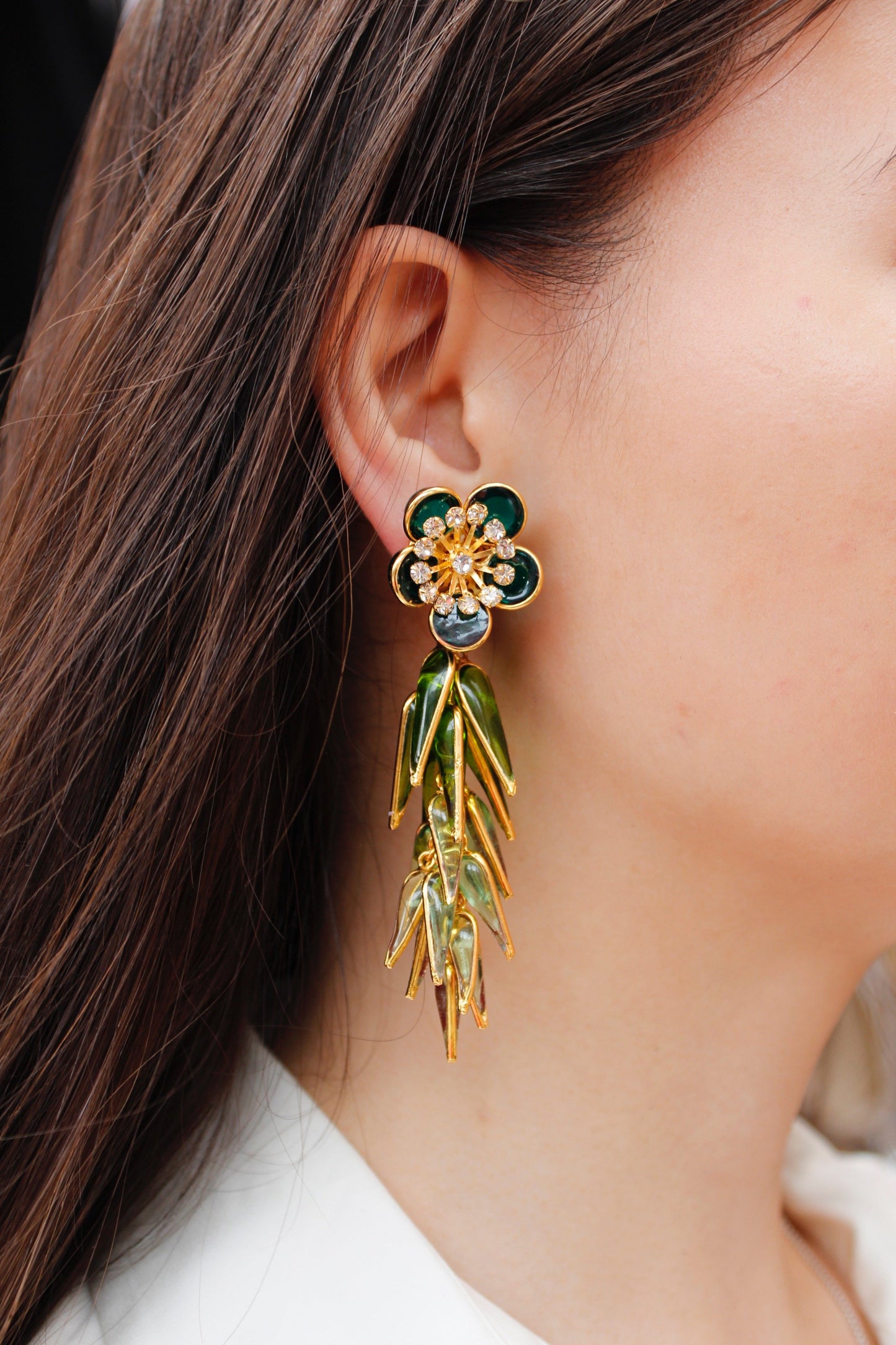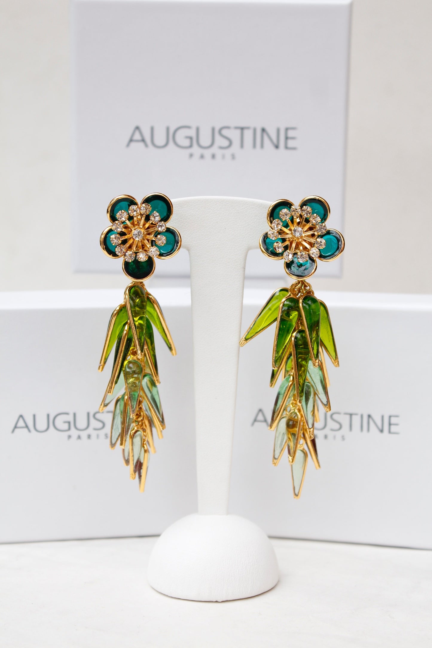 Developed by Gripoix in the 19th century, the glass paste technique uses coloured glass pieces, finely shaped, bringing a touch of art and sophistication to the creations of Augustine.
