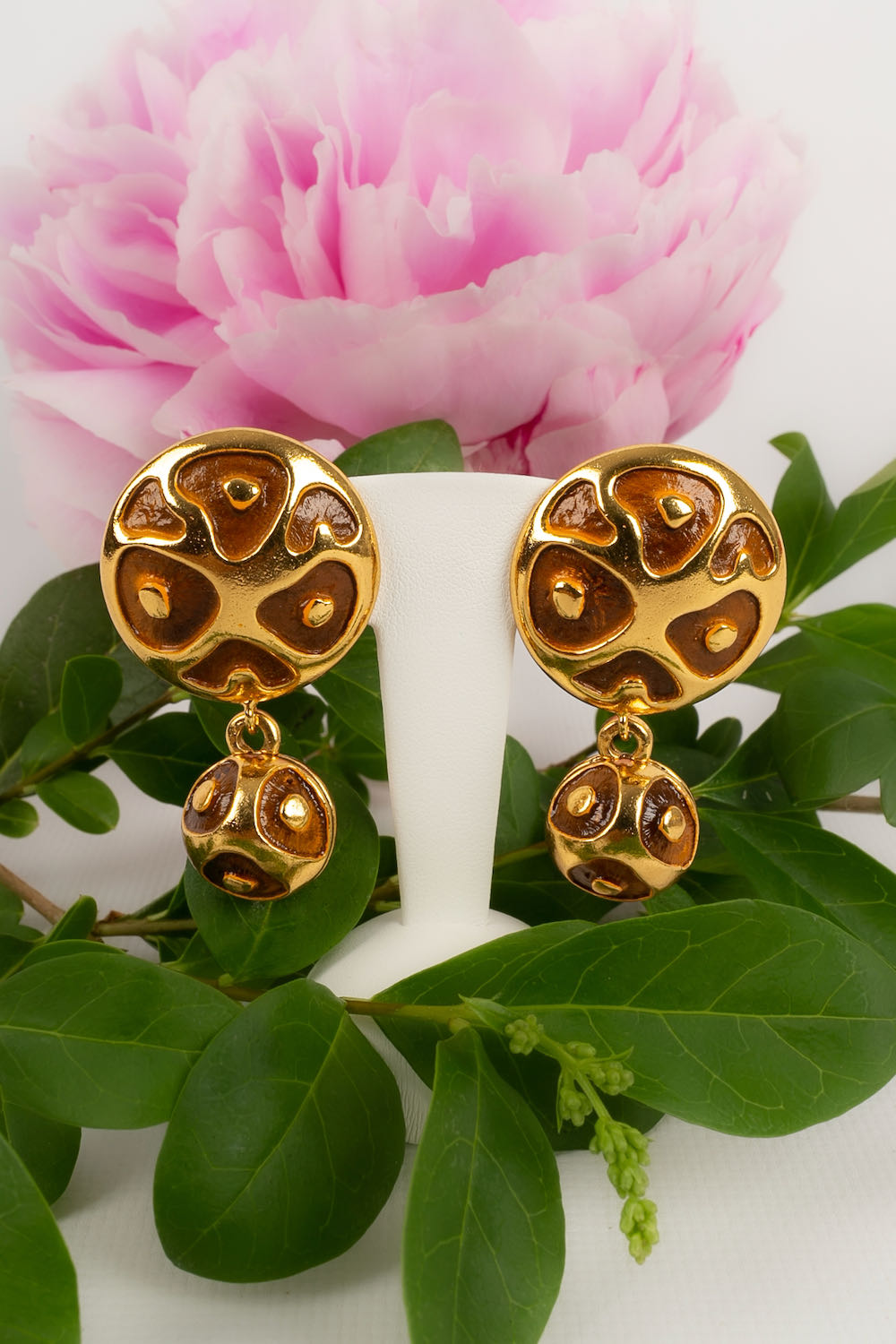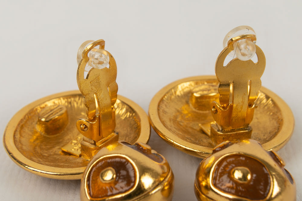 VALENTINO -Golden enamelled metal clip-on earrings.