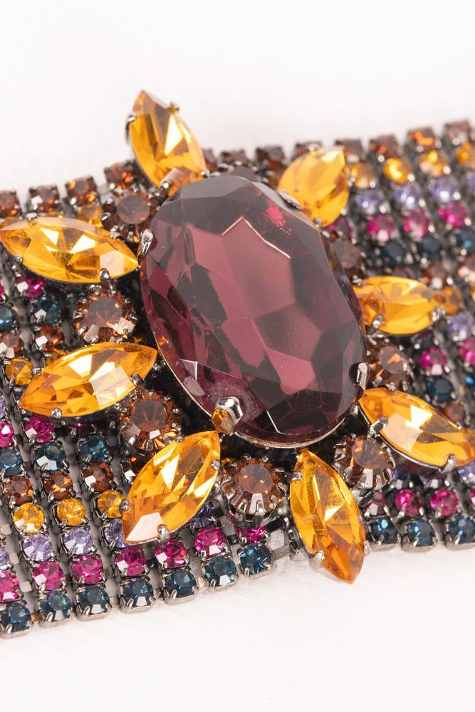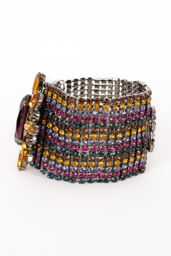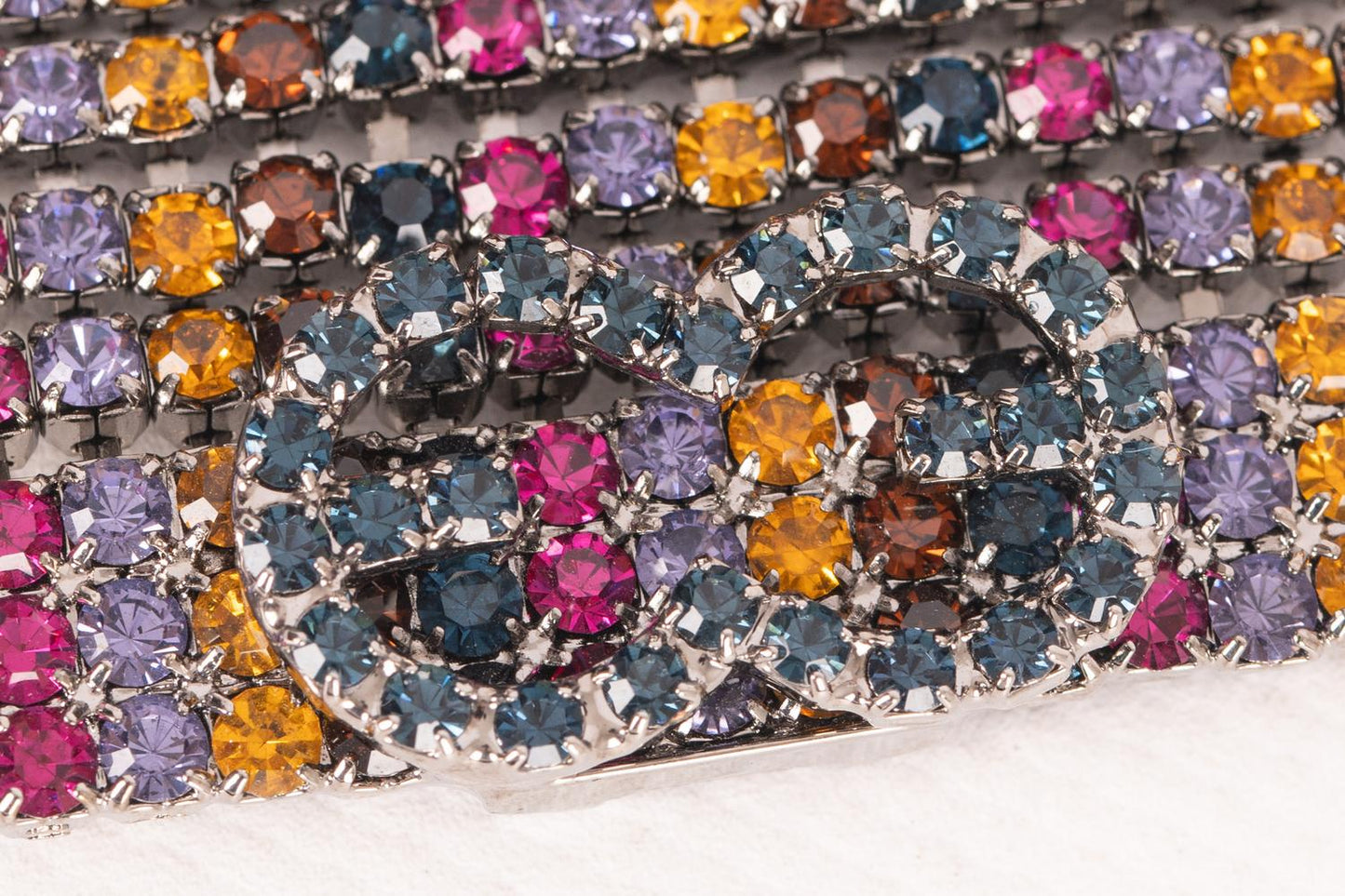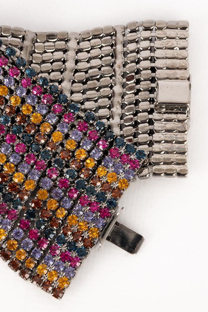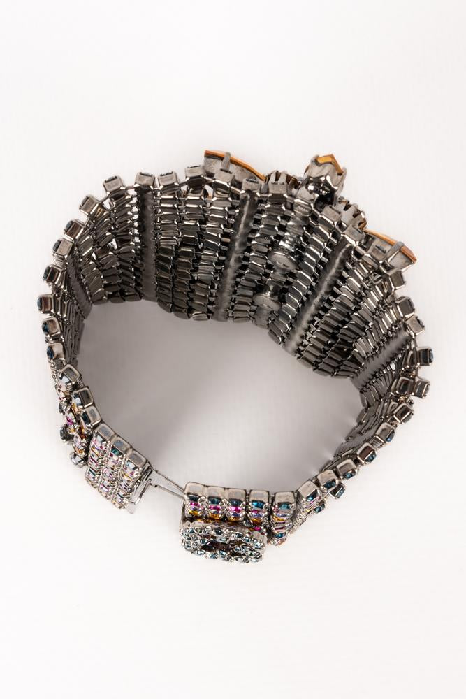 ESCADA - (Attributed to) Dark-silvery metal articulated bracelet ornamented with multicolored rhinestones. Not signed.