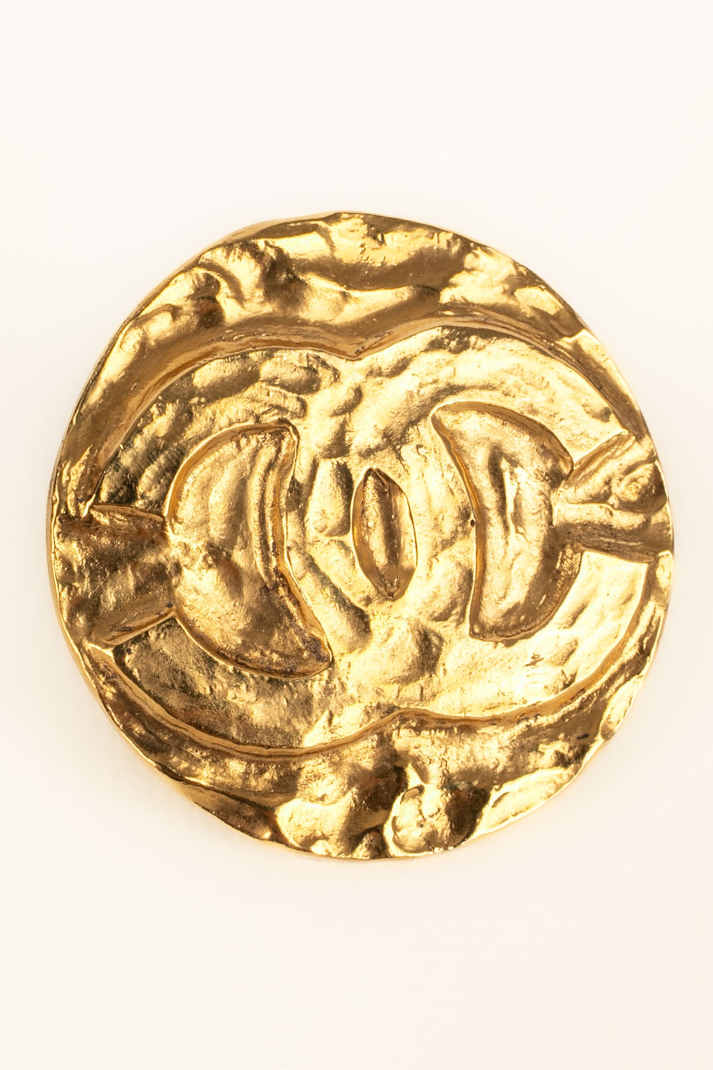 CHANEL - (Made in France) Beaten golden metal brooch. 1995 Fall-Winter Collection.