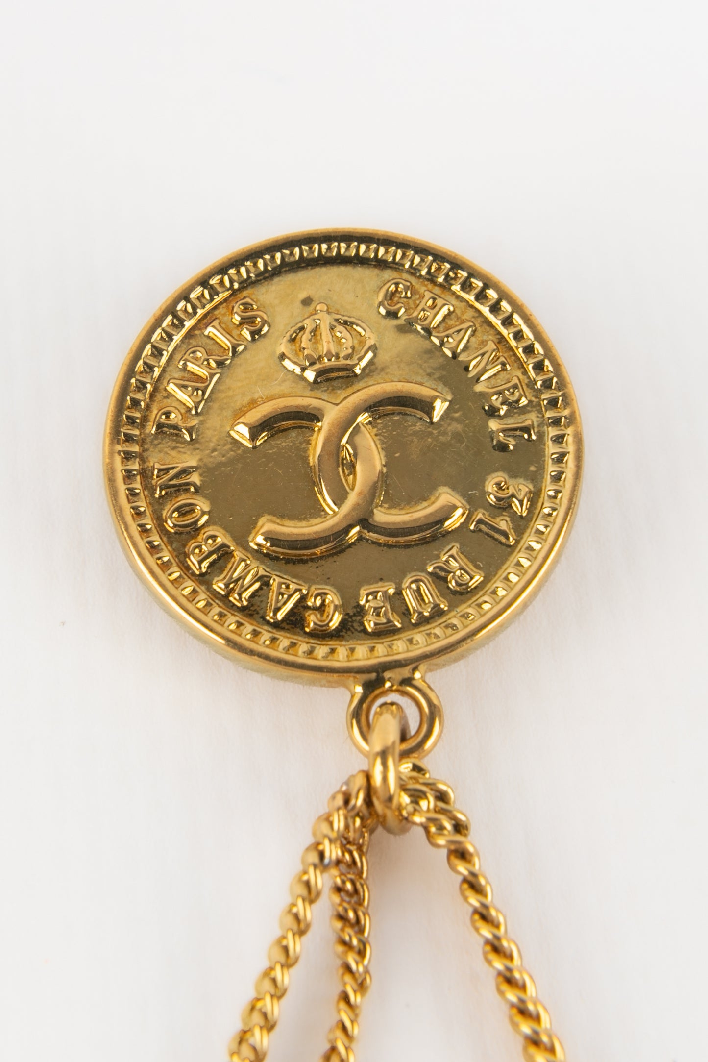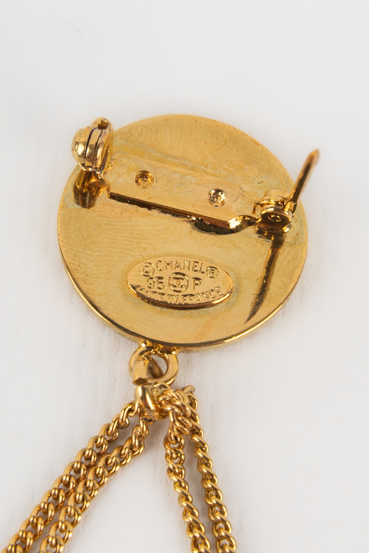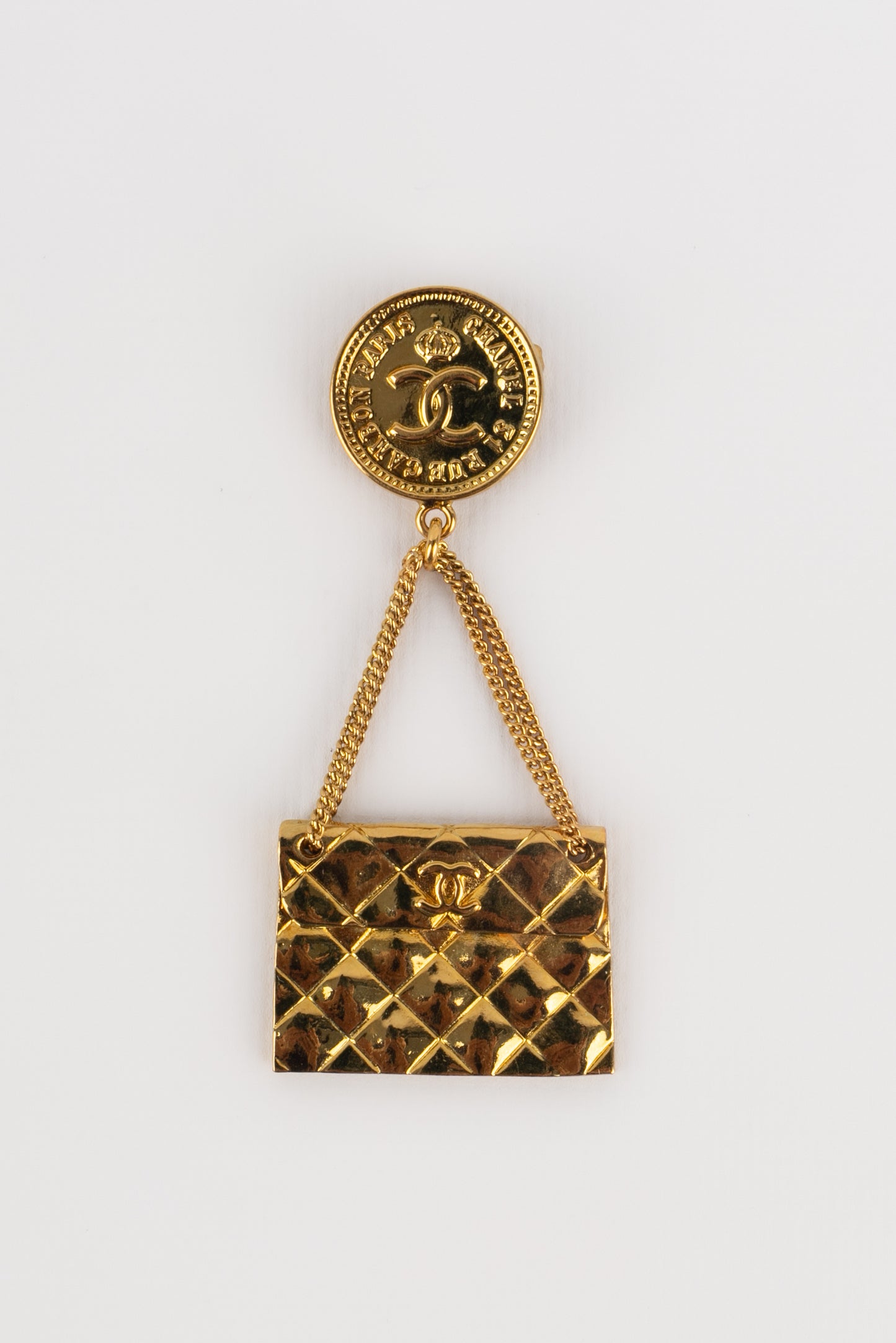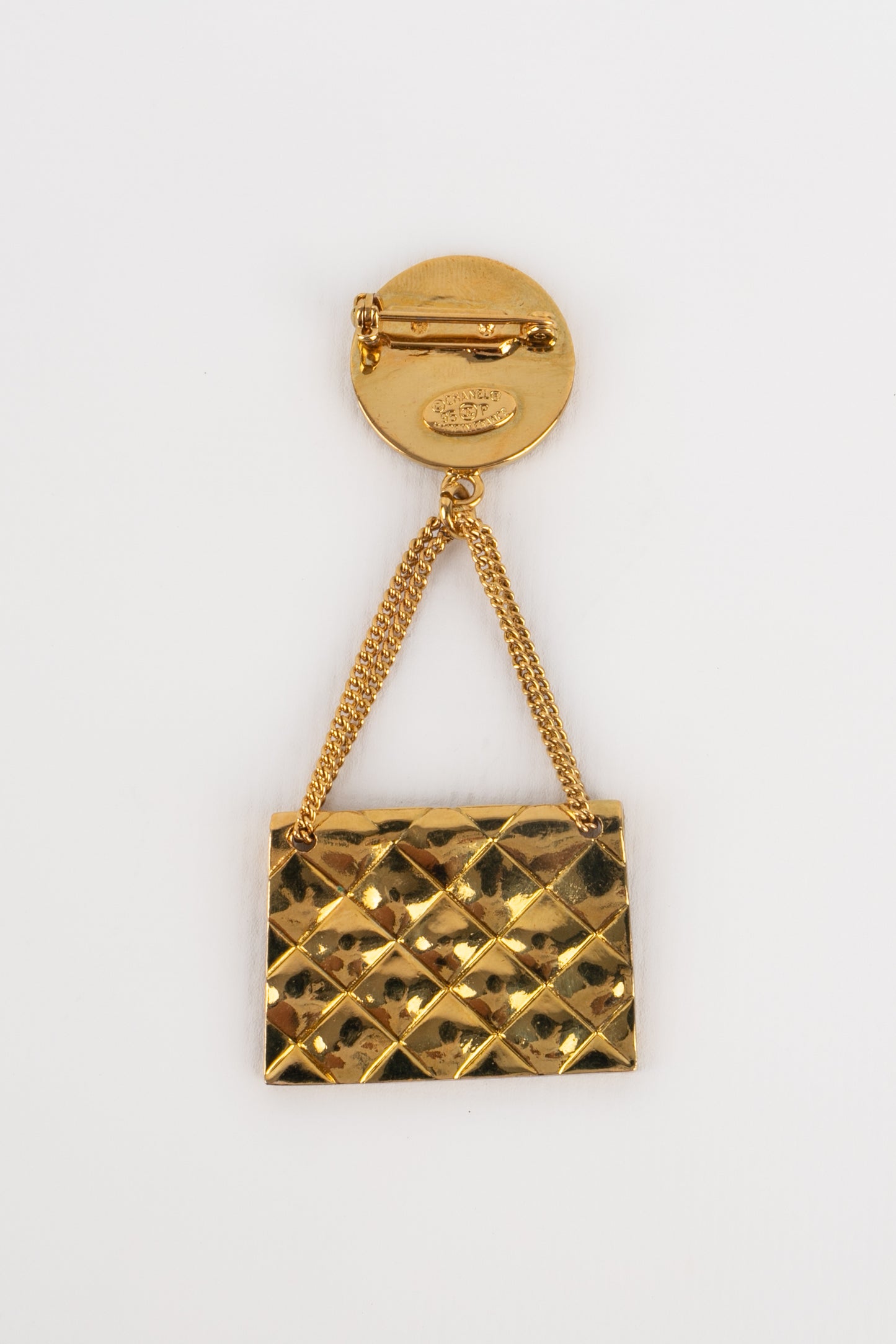 CHANEL - (Made in France) Golden metal brooch representing the quilted classic bag of Chanel. Jewellery from the 1980s.