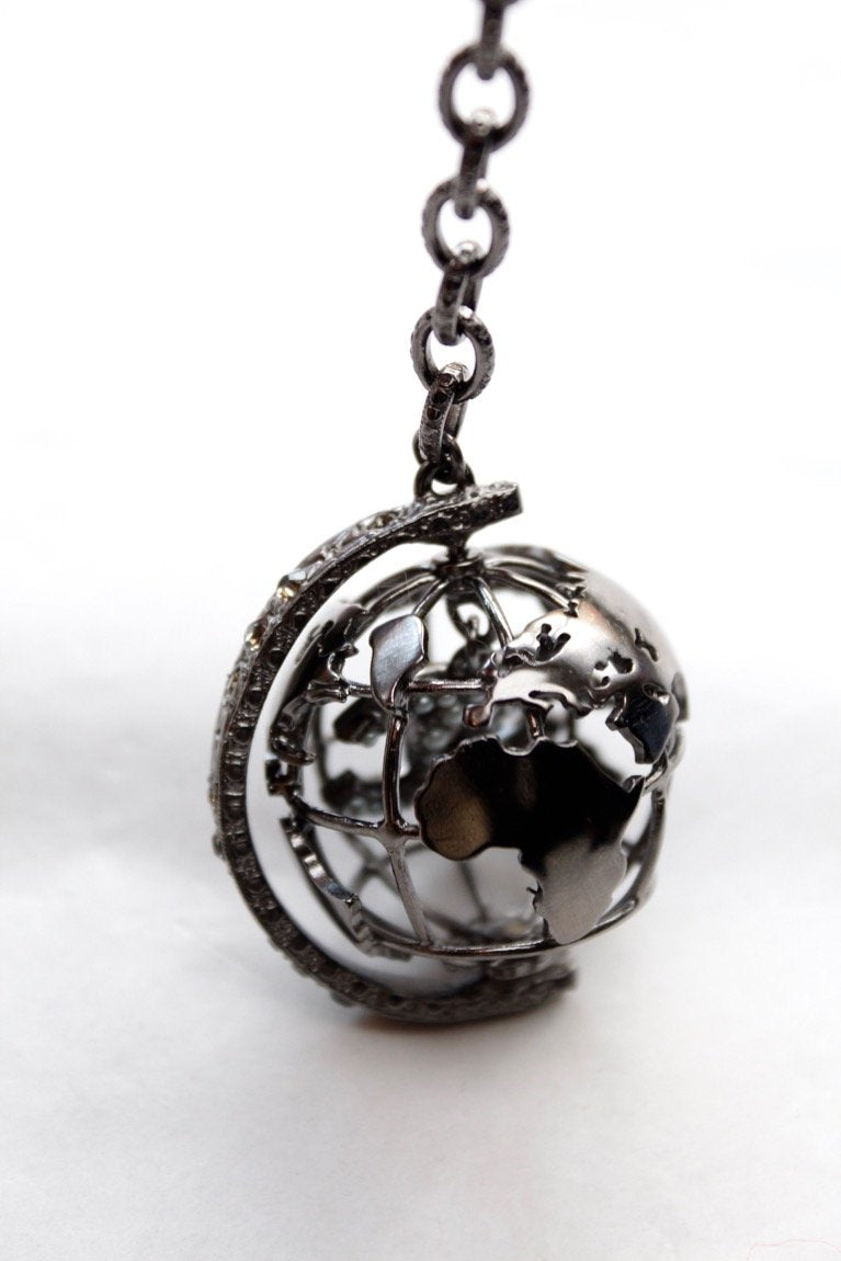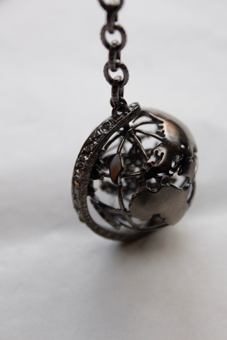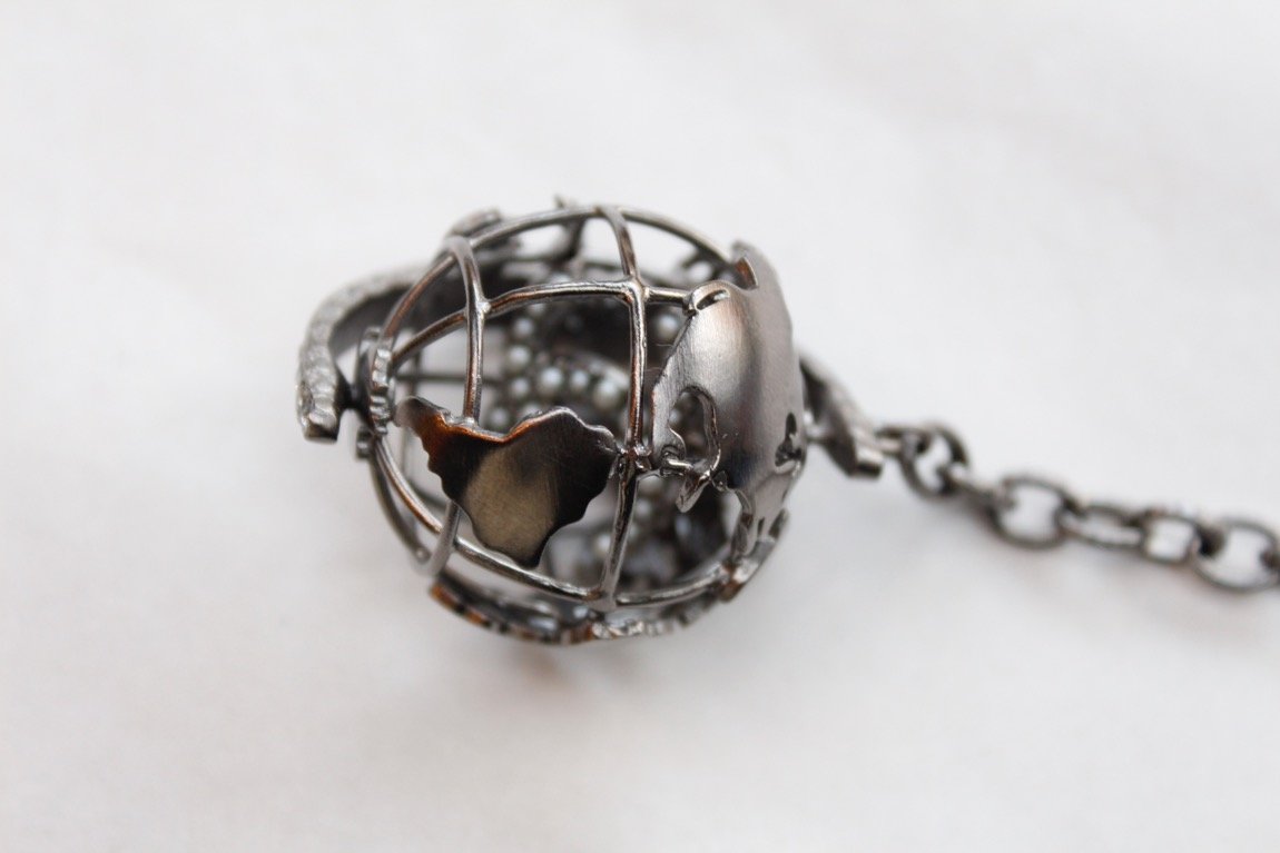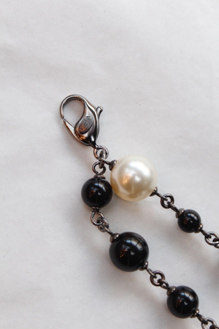 CHANEL (Made in France) Belt composed of Pearly beads and black glass beads, finishing with a world globe. 2013 Collection.