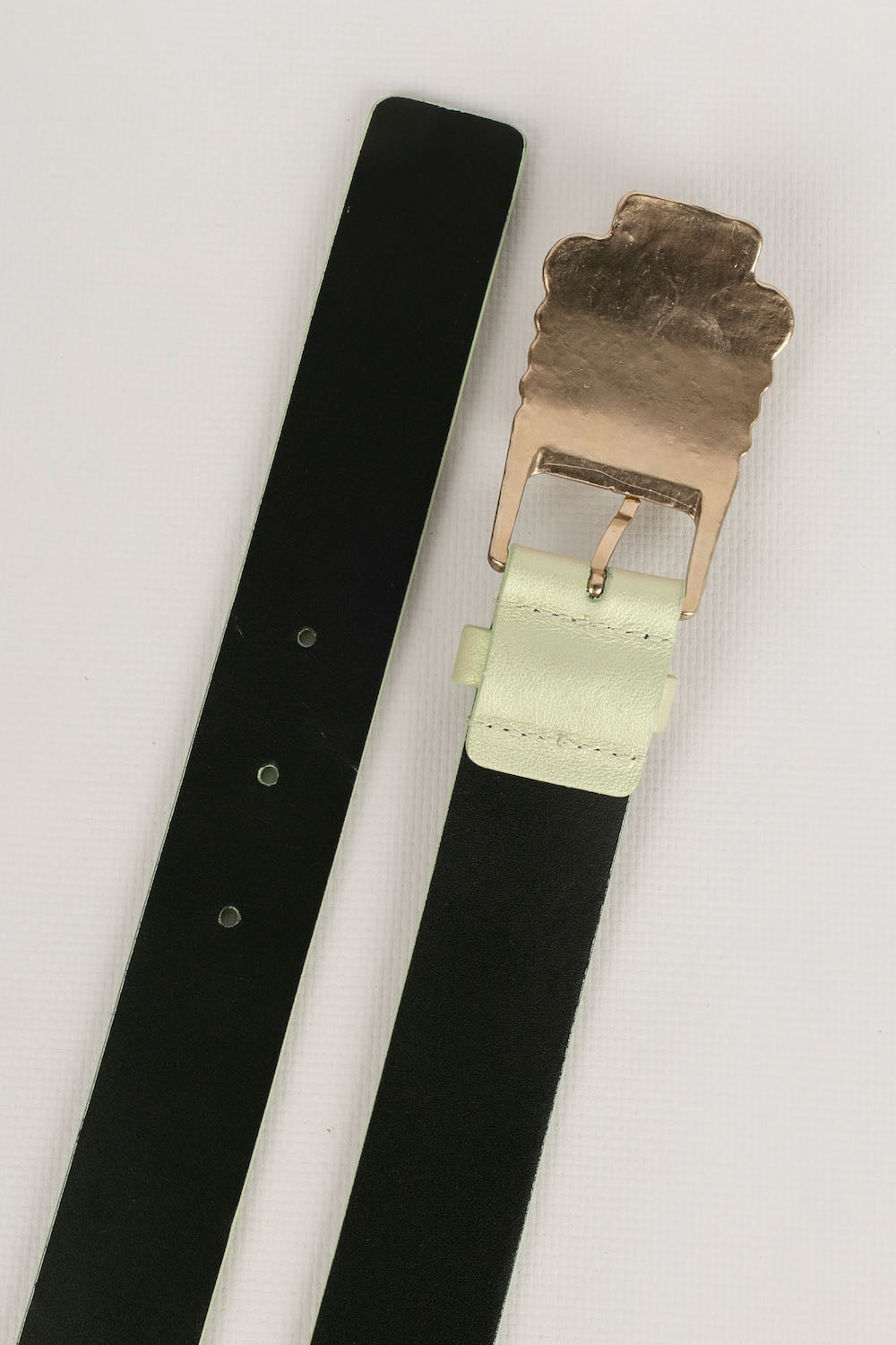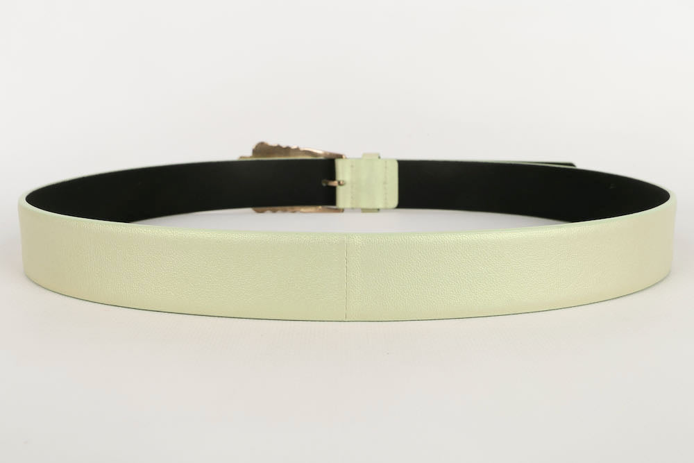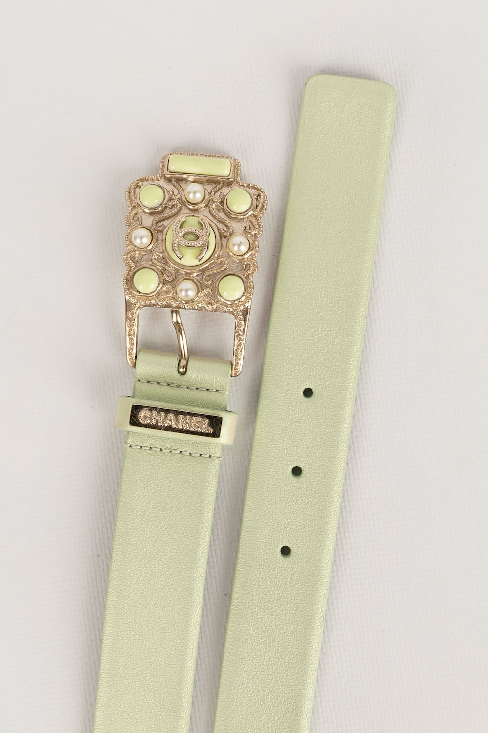 CHANEL -Leather belt and jewel buckle. No size or brand marking, it comes from private sales.
