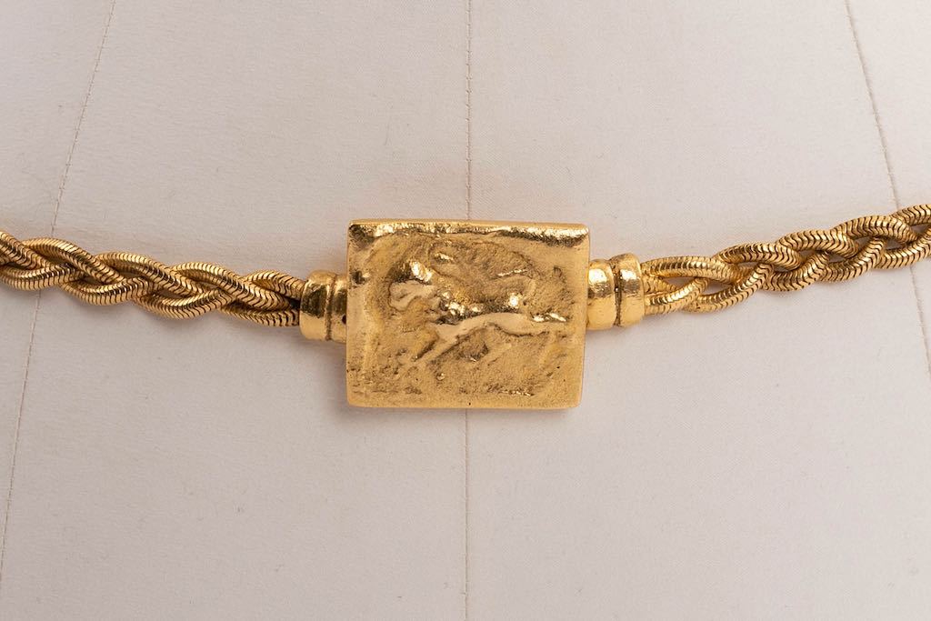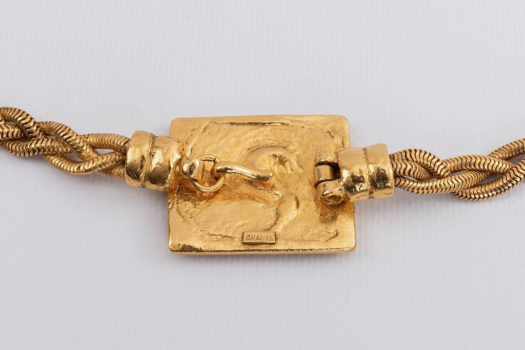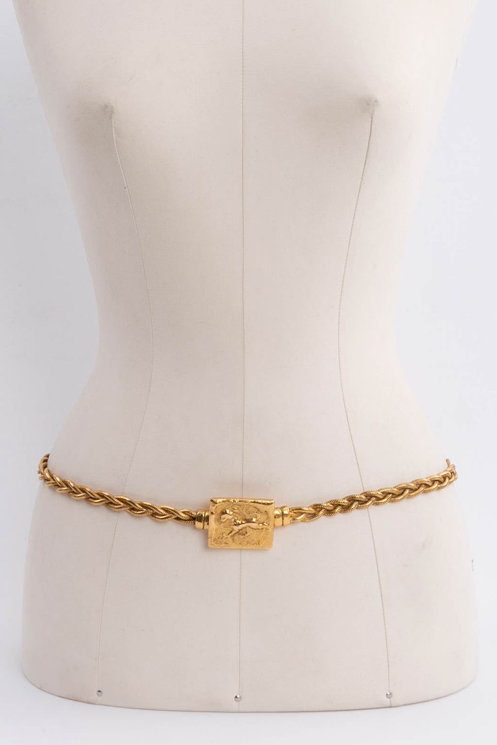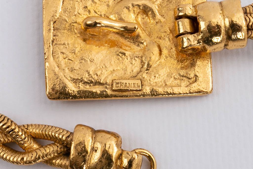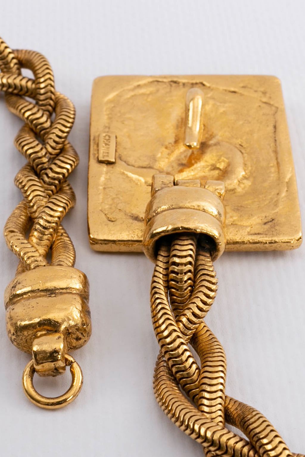 CHANEL (Made in France) Gilded metal belt with a rectangular hammered buckle.