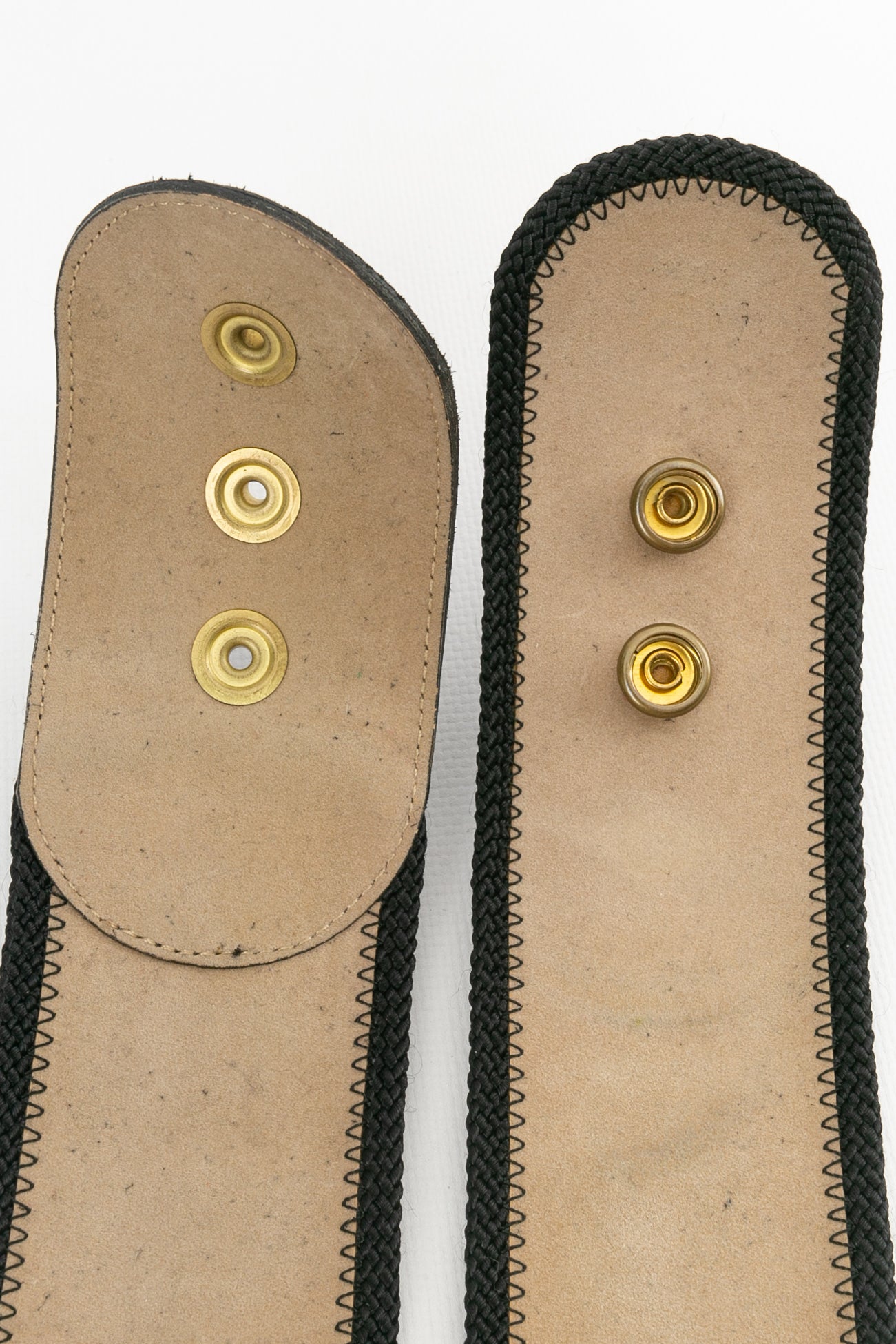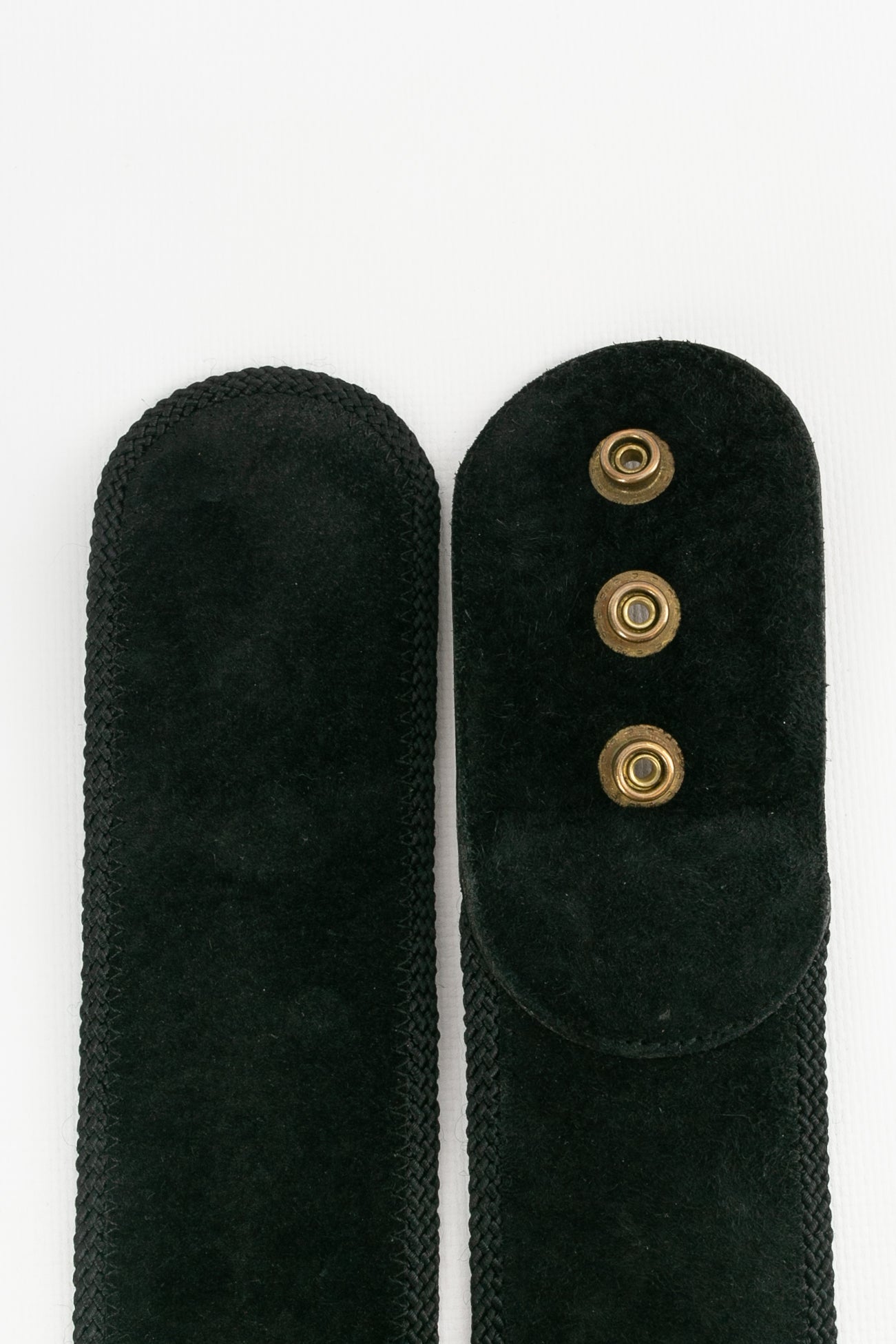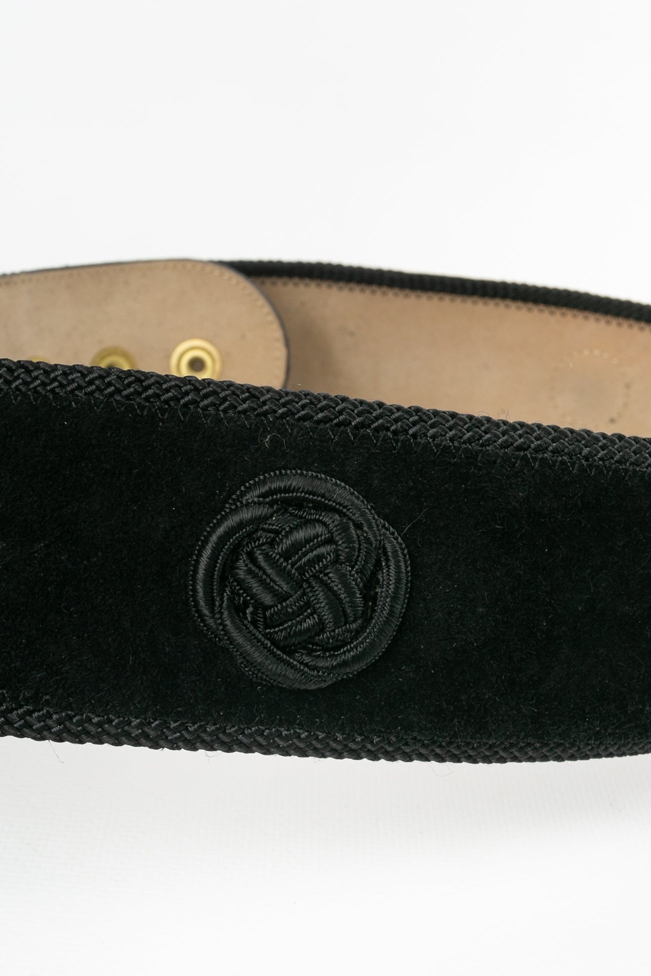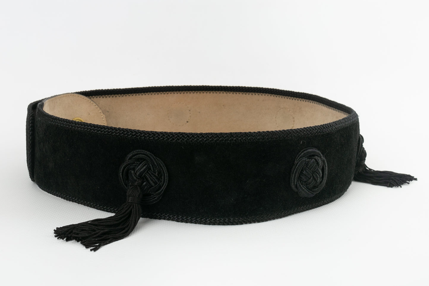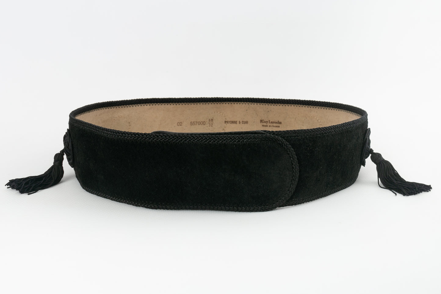 GUY LAROCHE (Made in France) Belt composed of leather decorated with black trimmings.
