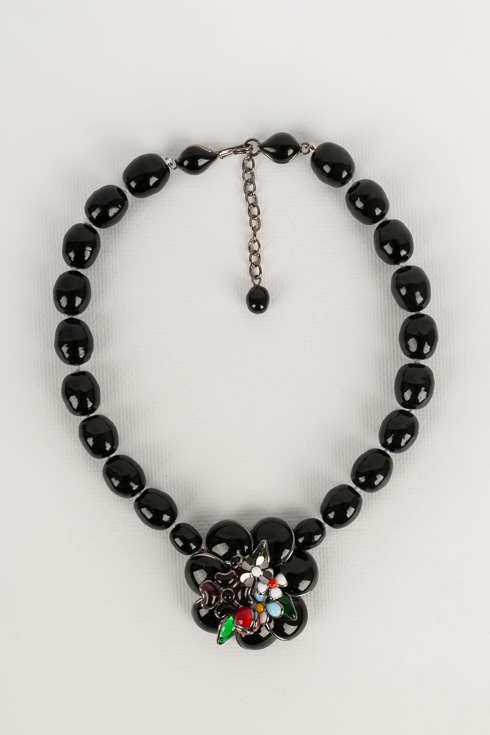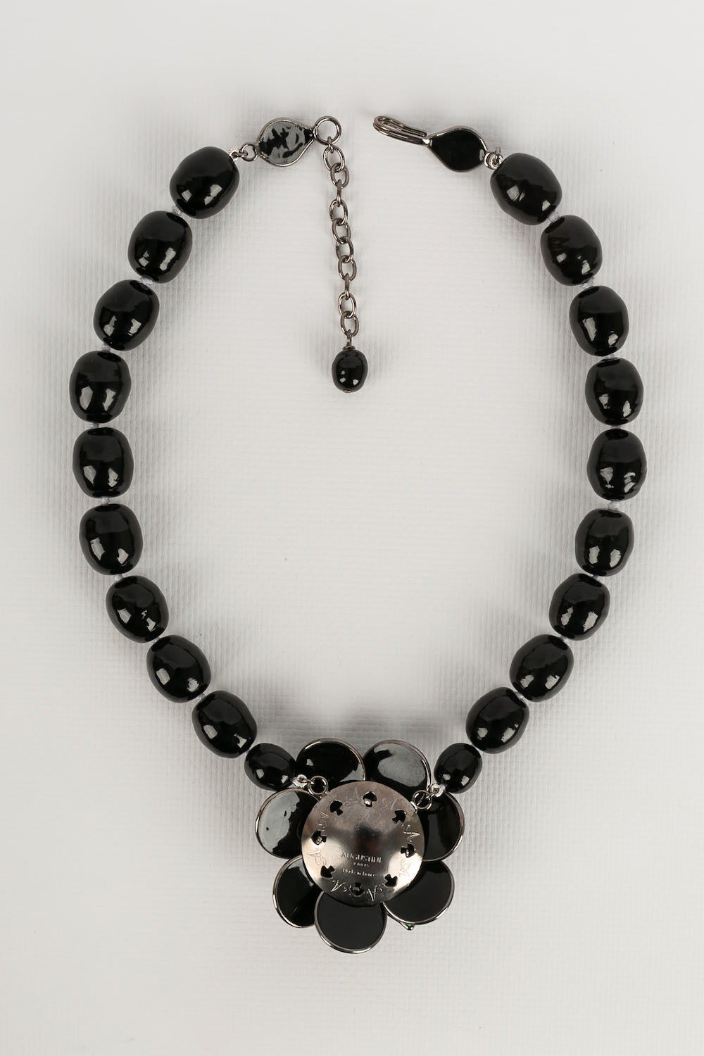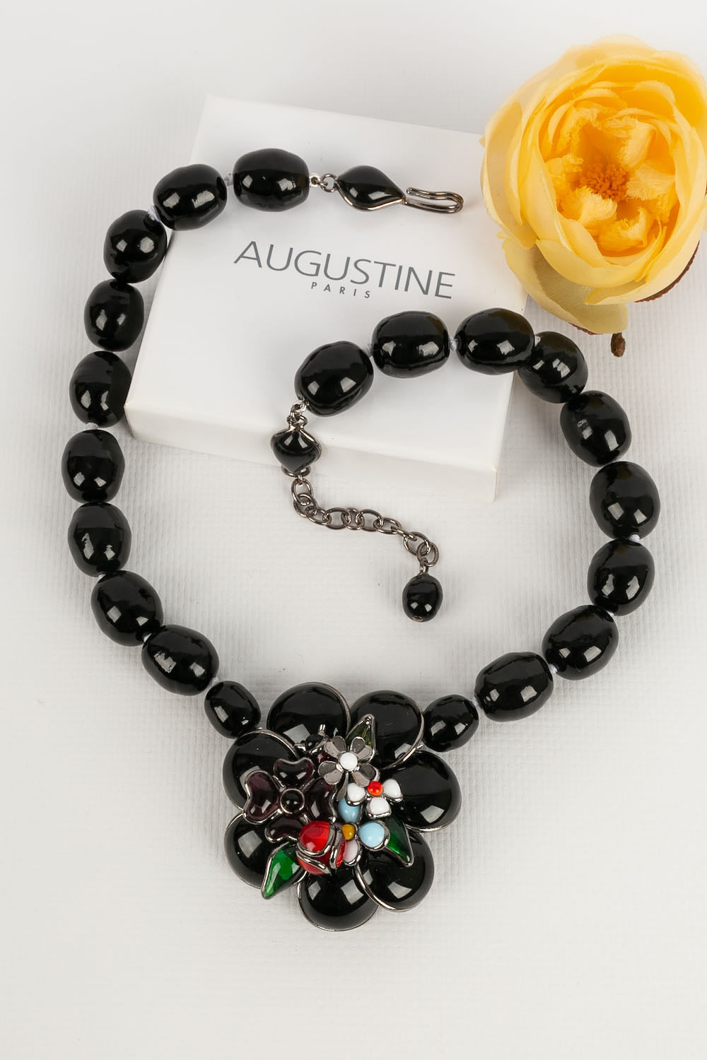 AUGUSTINE -(Made in France) Silver plated metal and black glass paste necklace.