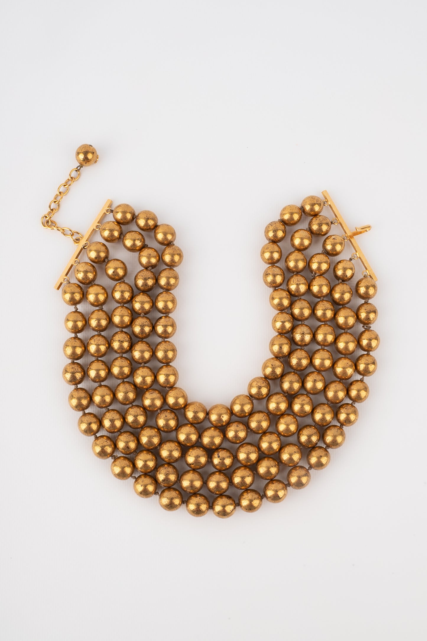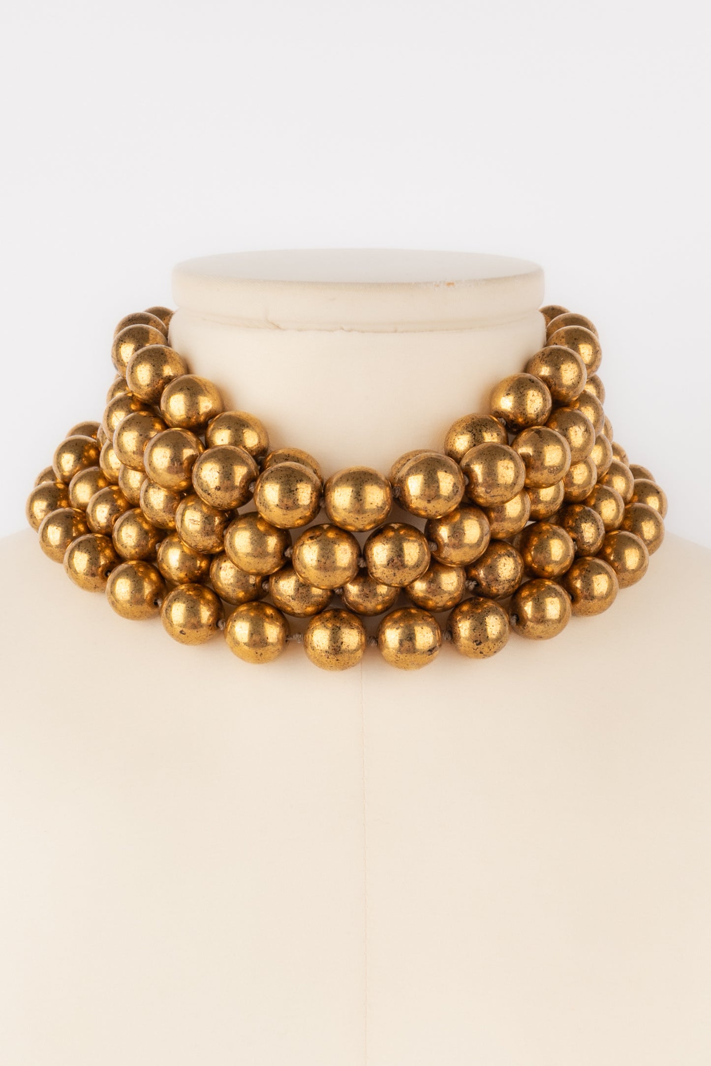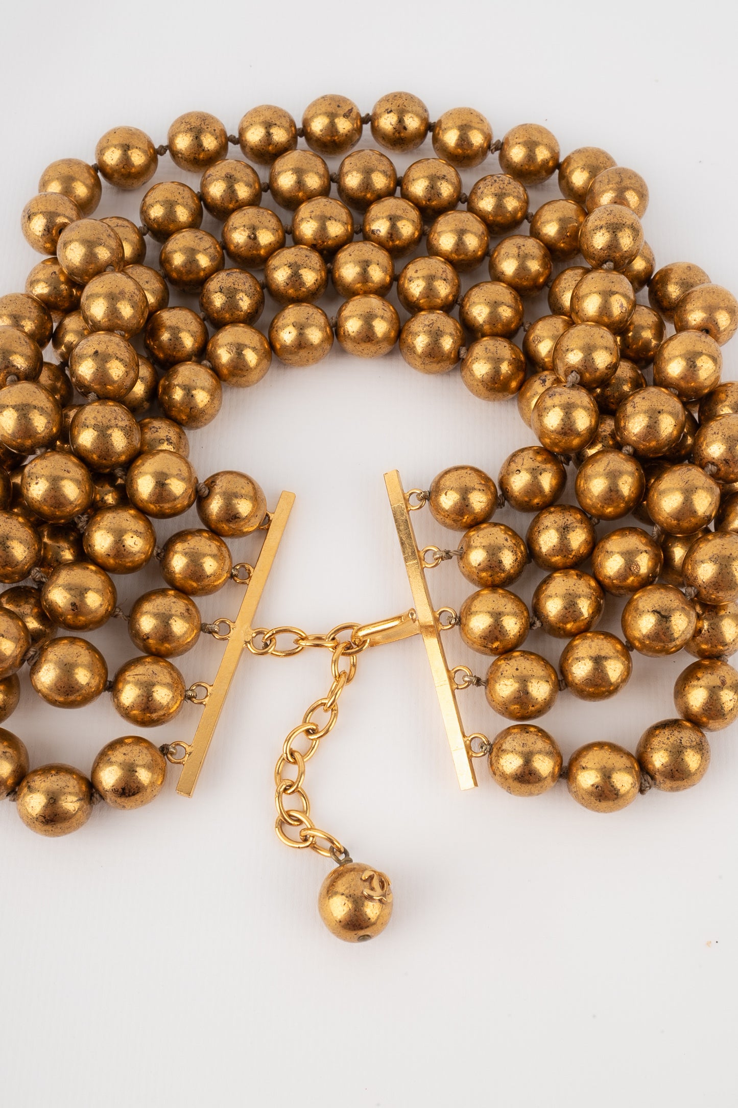 CHANEL - (Made in France) Five-row choker necklace with golden metal pearls. To be mentioned, the metal has worn marks.