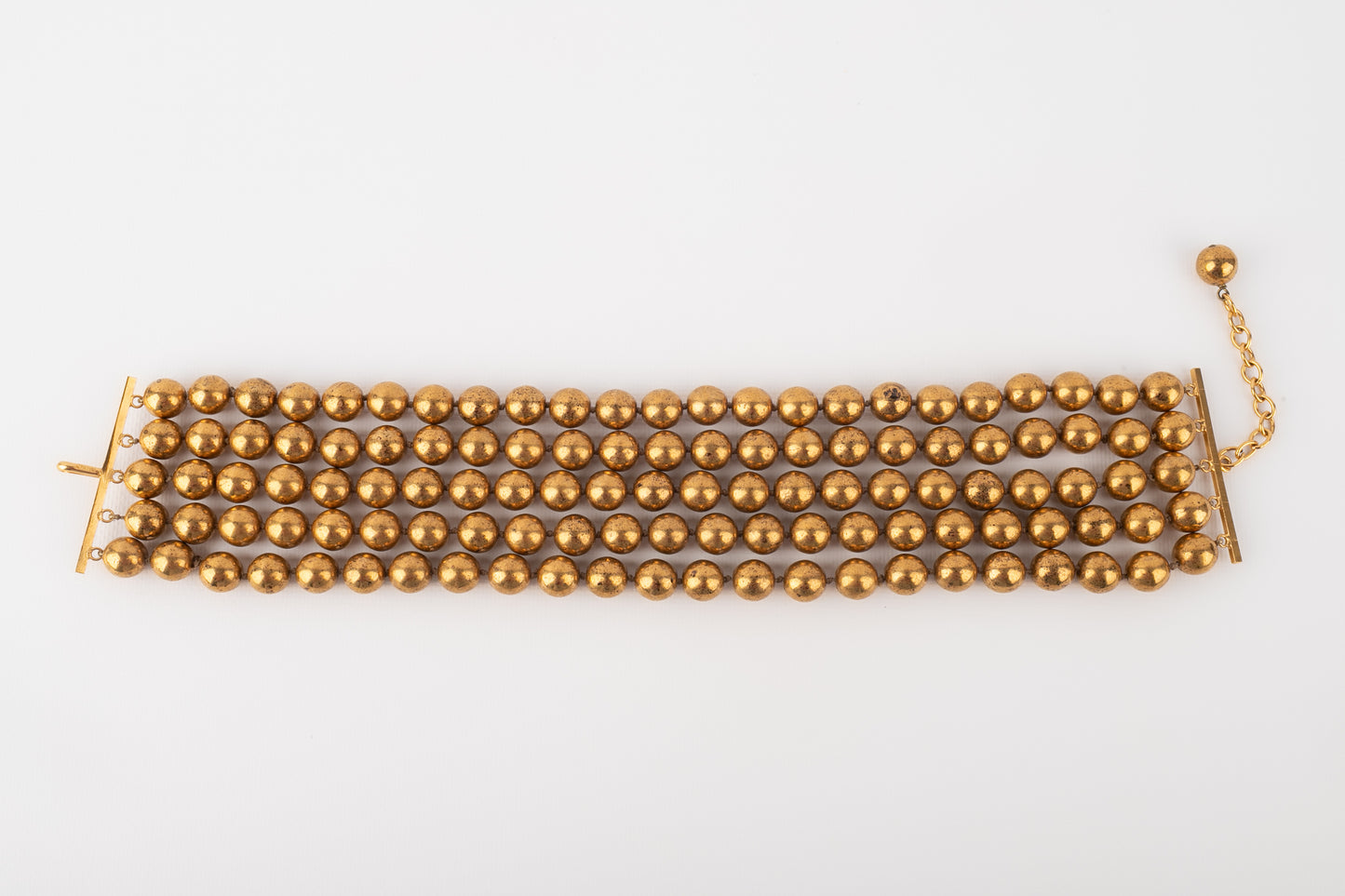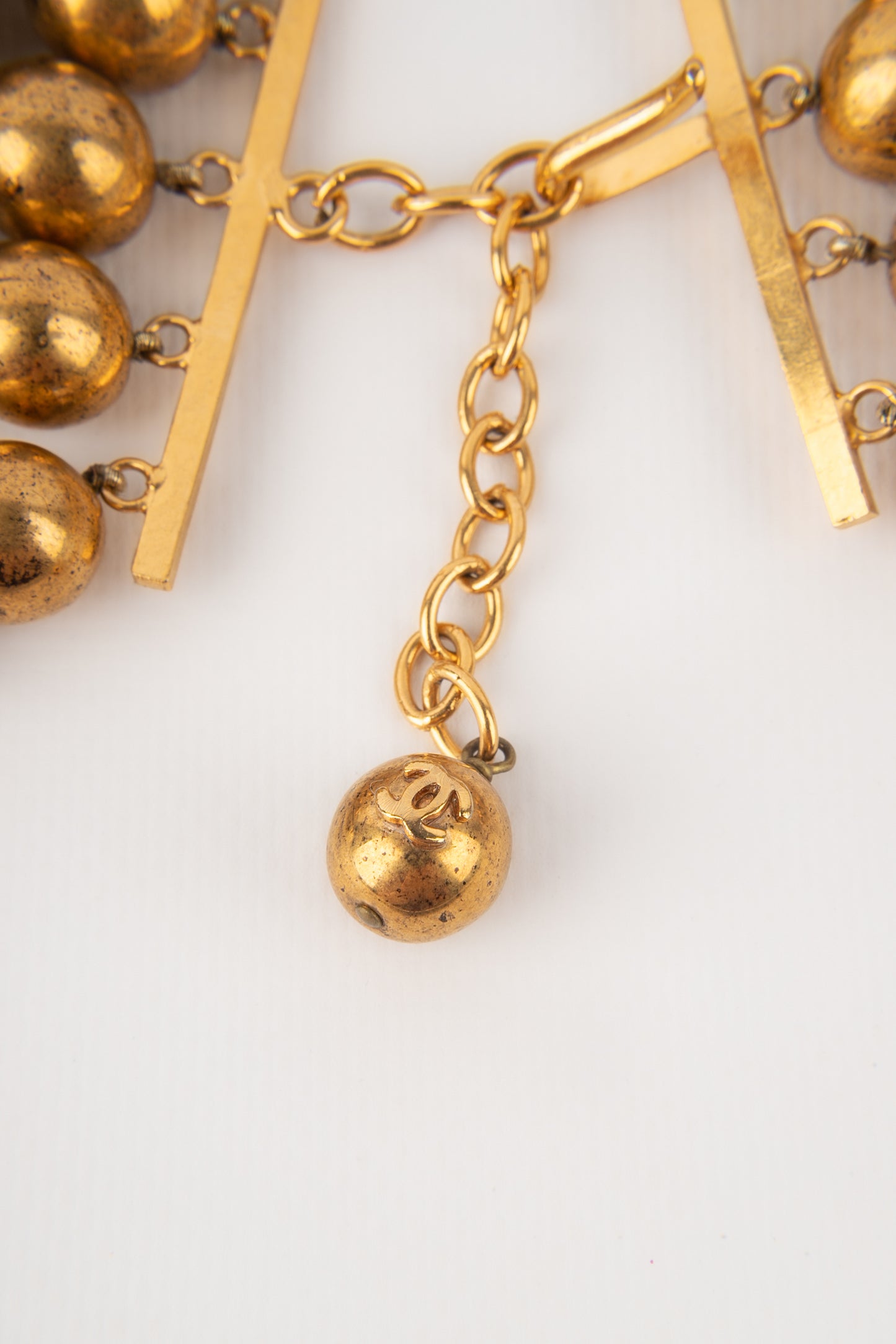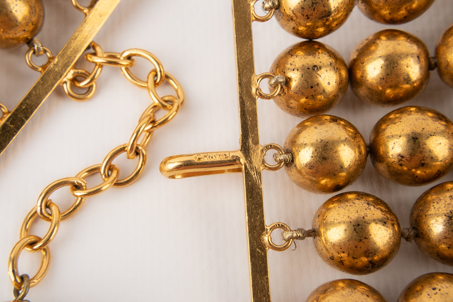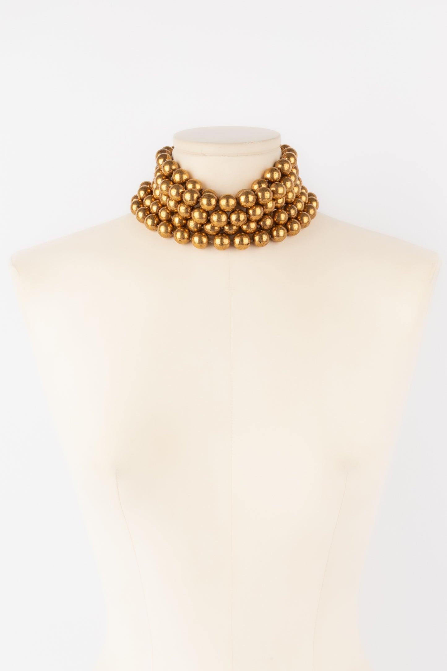 CHANEL - (Made in France) Five-row choker necklace with golden metal pearls. To be mentioned, the metal has worn marks.