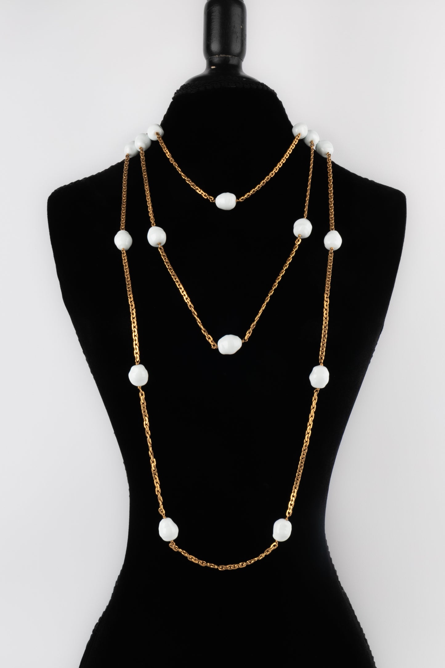 CHANEL - (Made in France) Golden metal sautoir with white glass pearls. 1996 Fall-Winter Collection.
