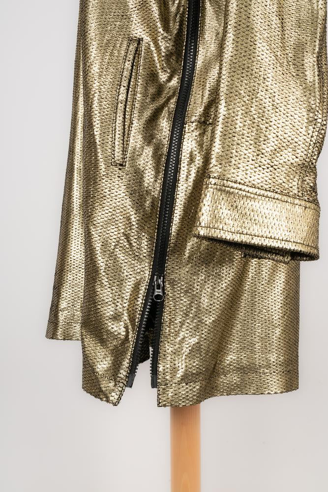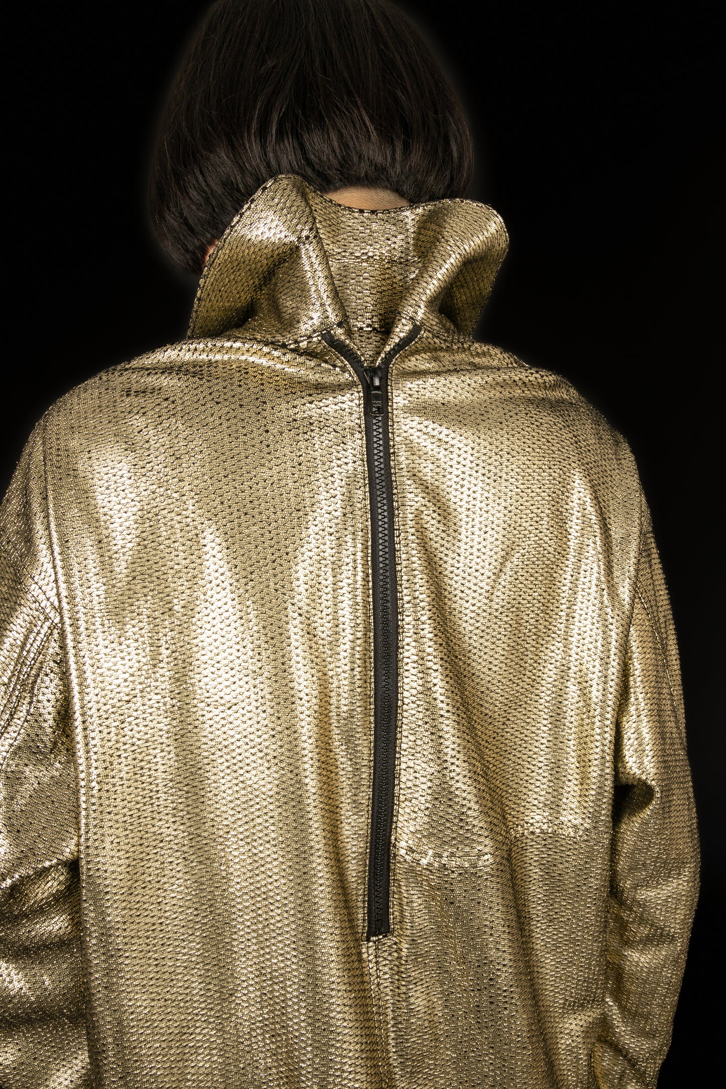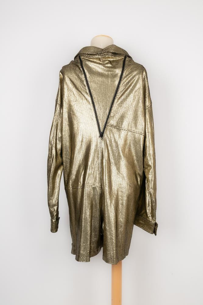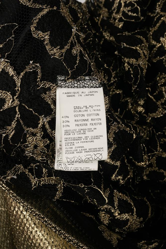 YOHJI YAMAMOTO - (Made in Japan) Golden sheepskin jumpsuit with a black lace lining and a golden lurex thread floral pattern. No size indicated, it fits a 36FR/38FR.