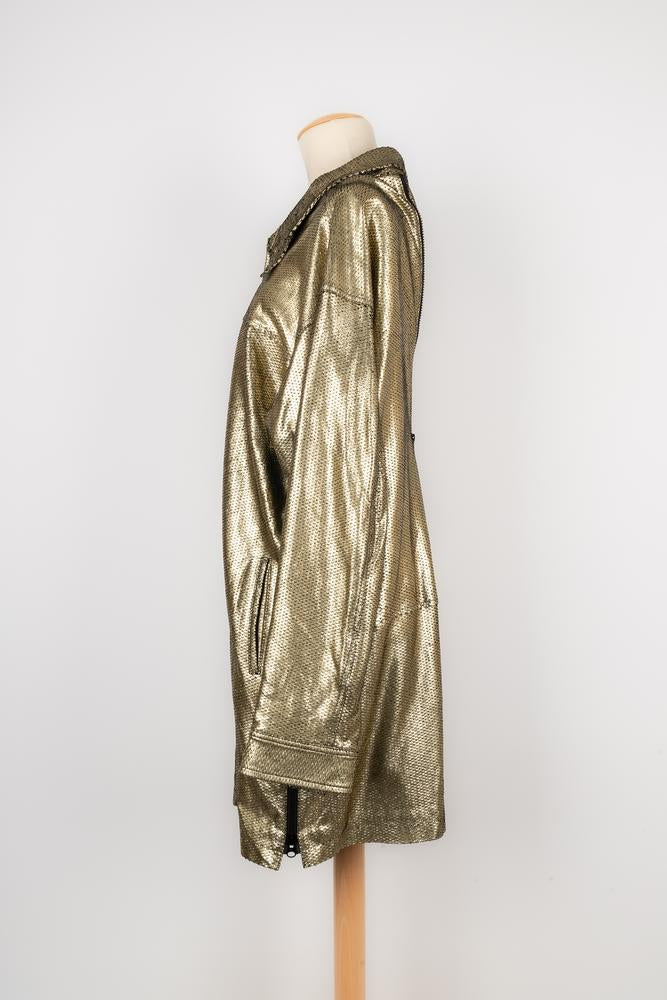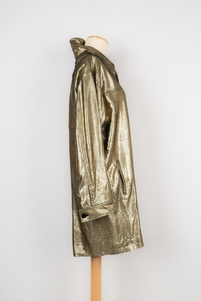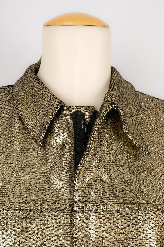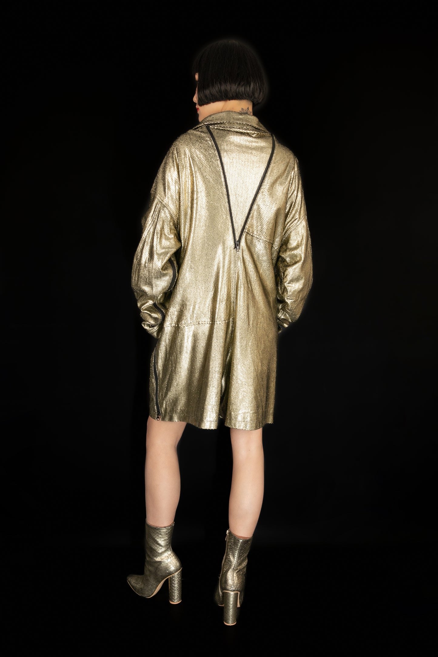 YOHJI YAMAMOTO - (Made in Japan) Golden sheepskin jumpsuit with a black lace lining and a golden lurex thread floral pattern. No size indicated, it fits a 36FR/38FR.