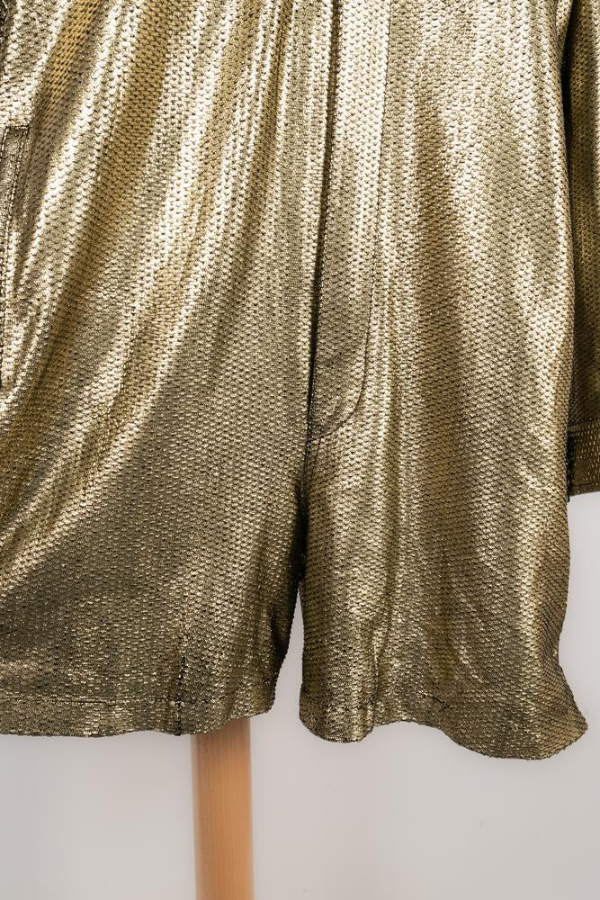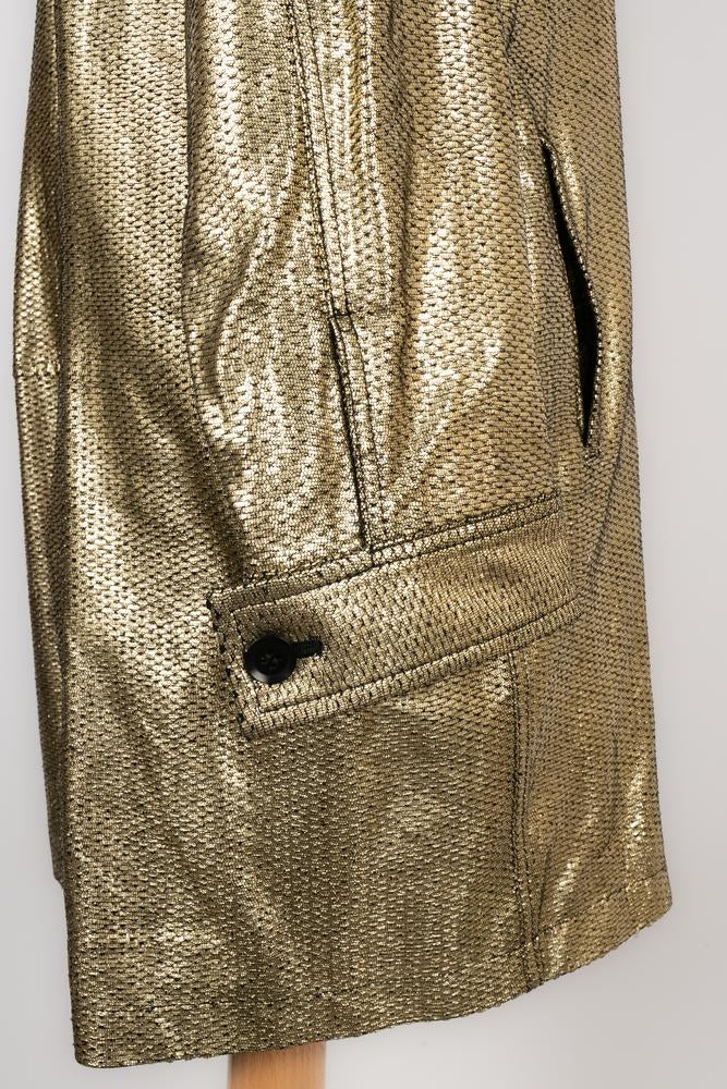 This clothing item, in very good condition, keeps its original quality and allure. The fabric is perfect, without any significant tear or stain, and the stitches are absolutely undamaged. The colours remain bright, and its refined finishes show its excellent maintenance.