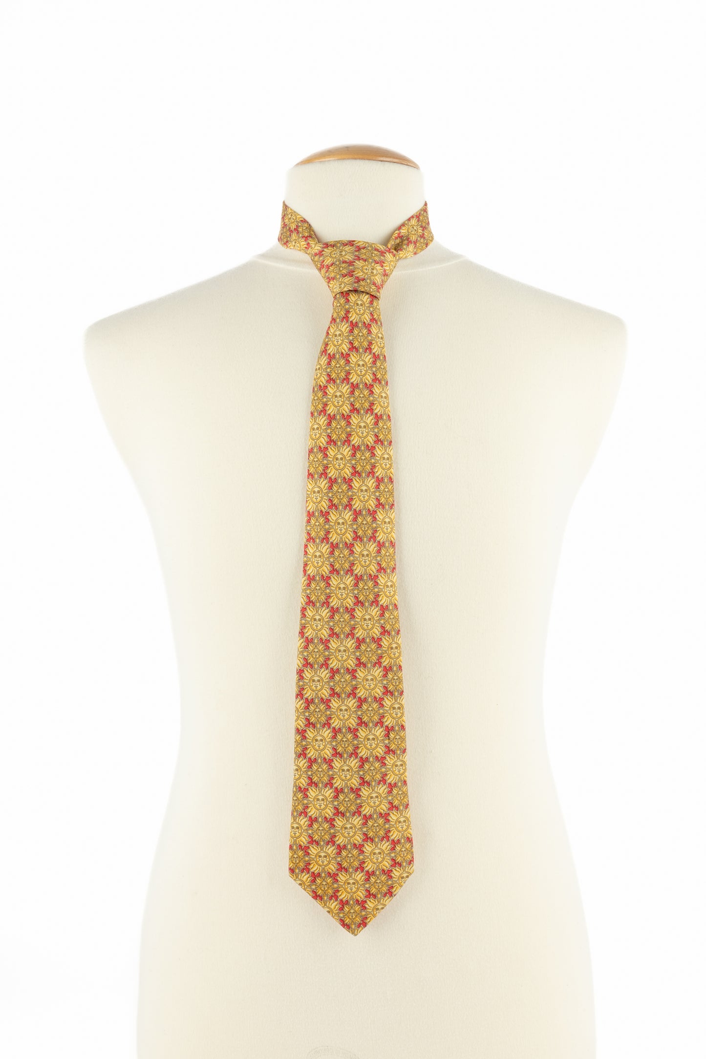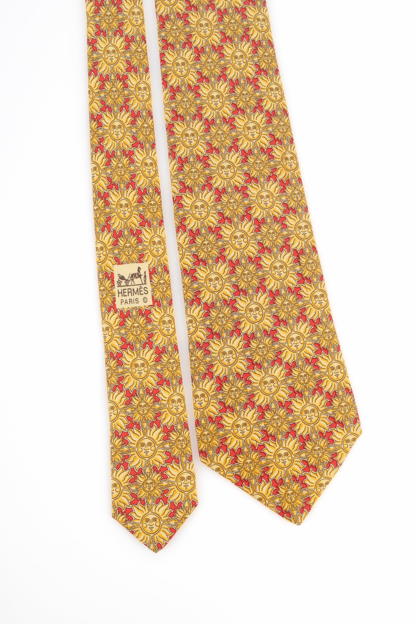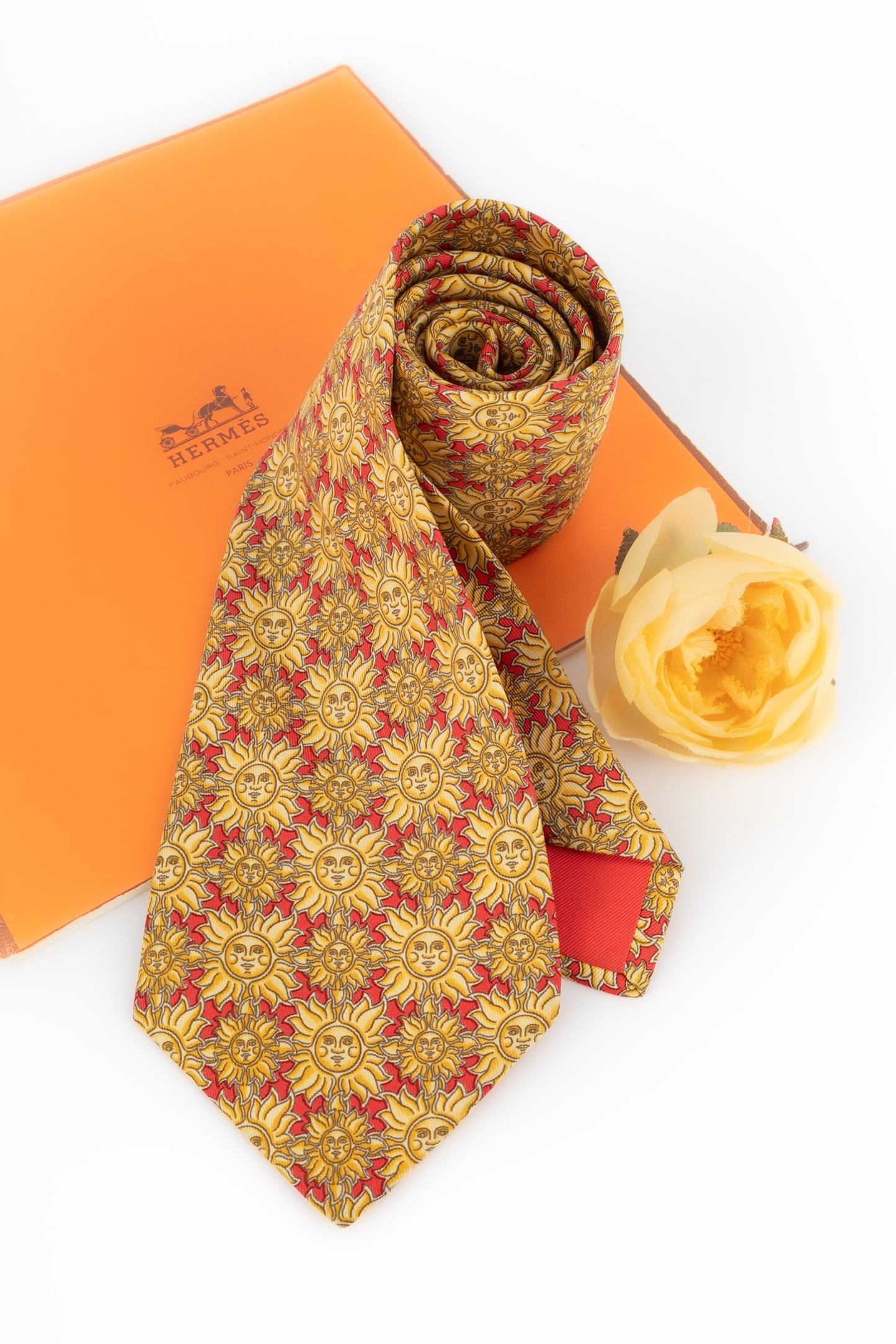 HERMÈS - (Made in France) Yellow and red silk tie printed with suns.