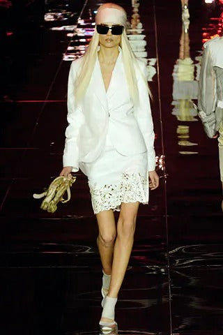Renowned for his theatrical style and daring creations, Galliano revitalised the French fashion house with his innovative and exuberant collections. He introduced fantasy and glamorous elements, reinterpreting Dior classic looks with a touch of modern and drama.