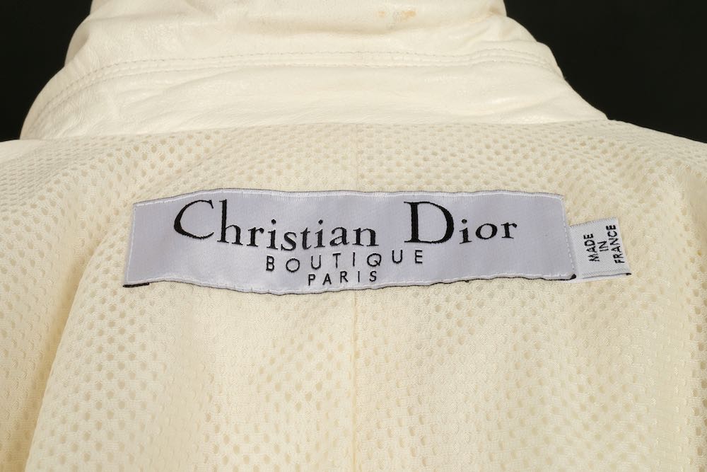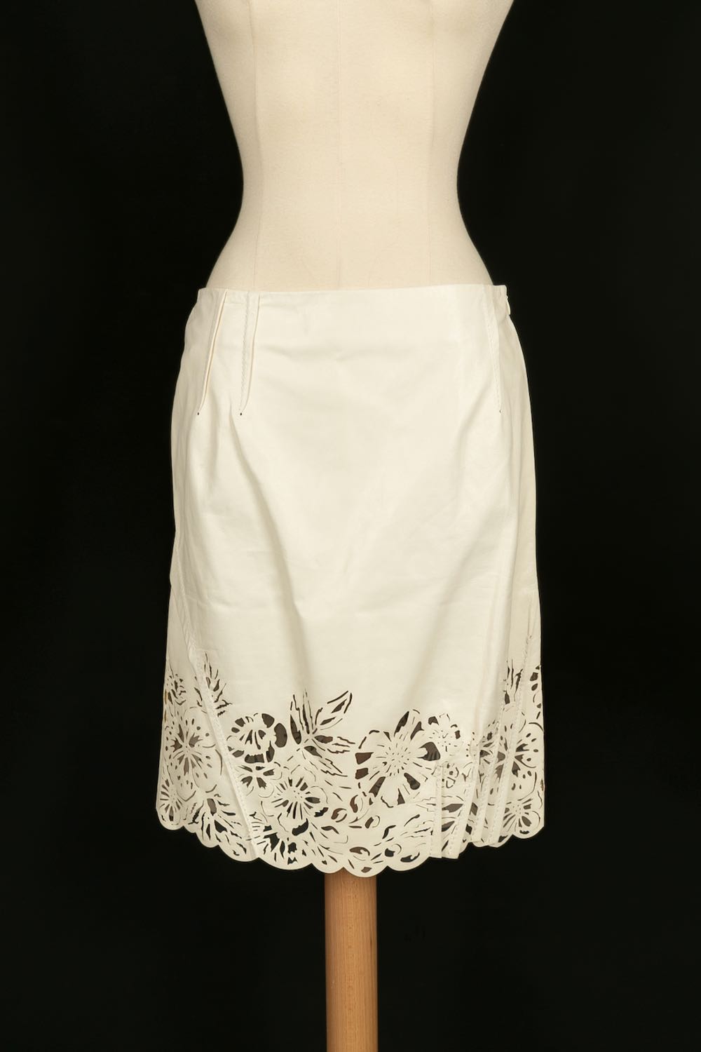 DIOR - (Made in France) Off white lamb leather jacket and skirt set. Size 36FR.