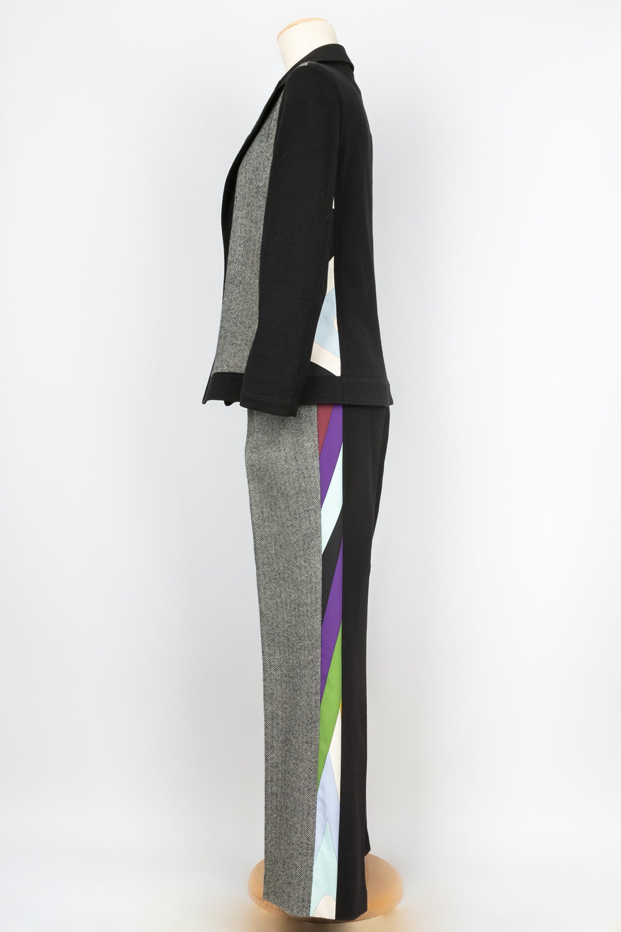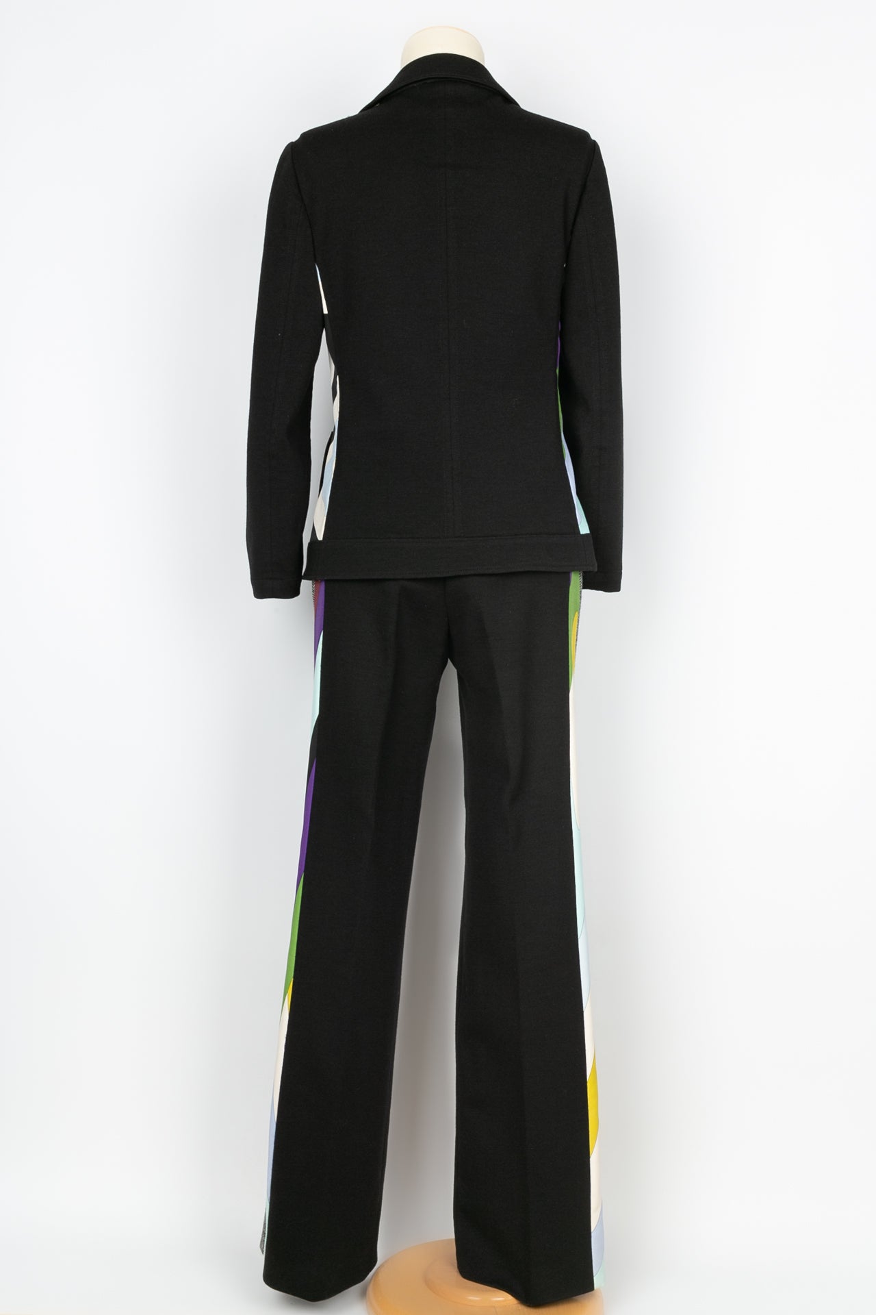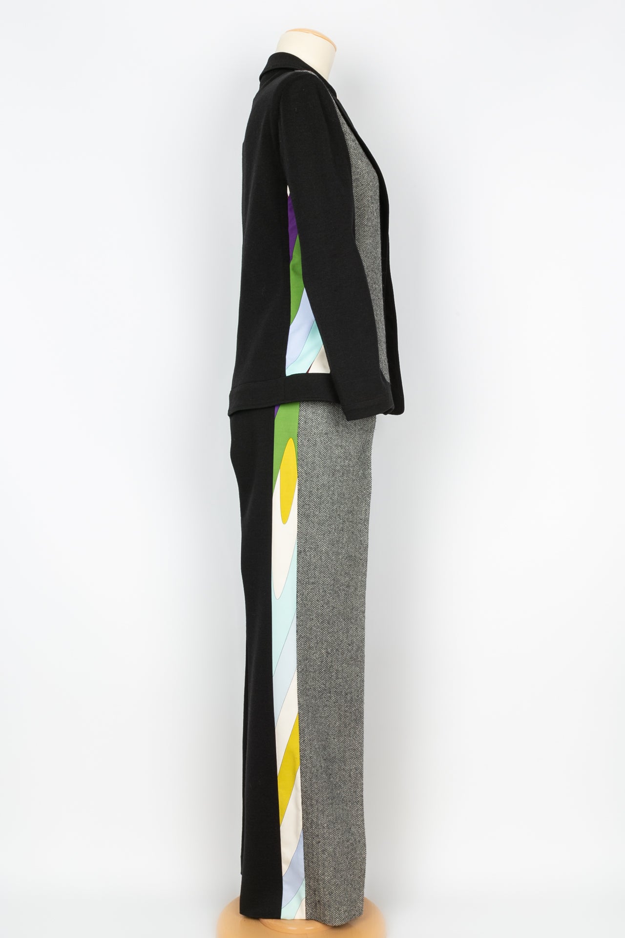 PUCCI -(Made in Italy) Suit made of wool and multicolored geometric printed fabric. Size 38FR. To note, several stains on the jersey.