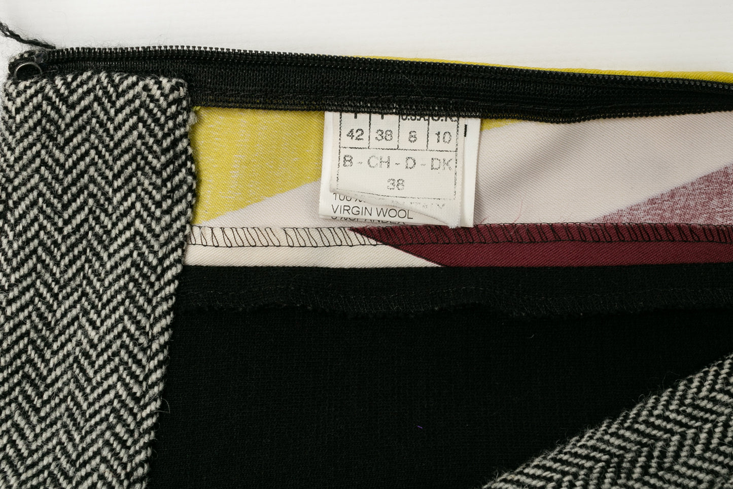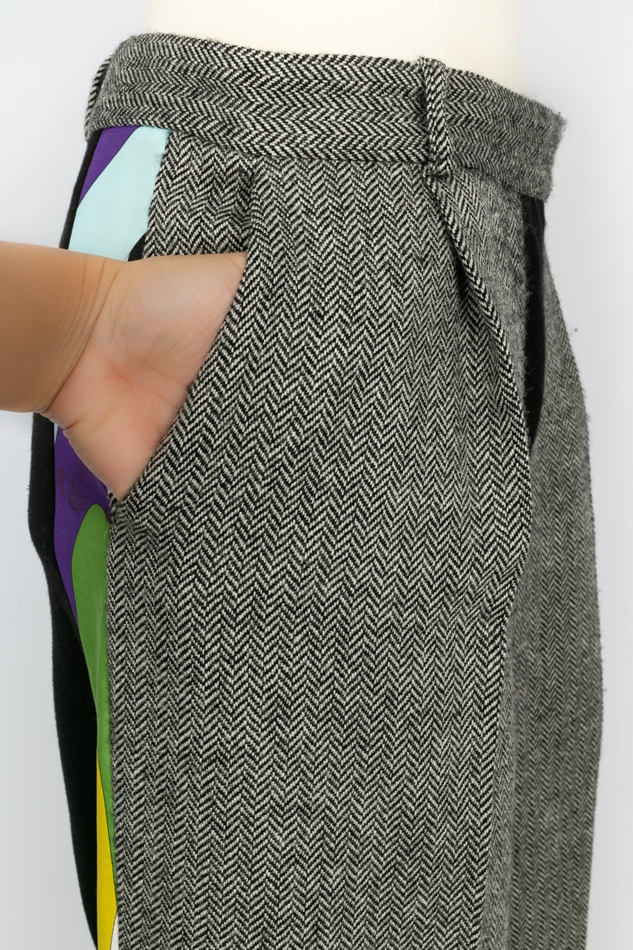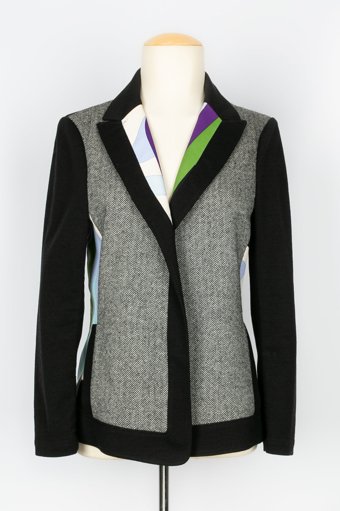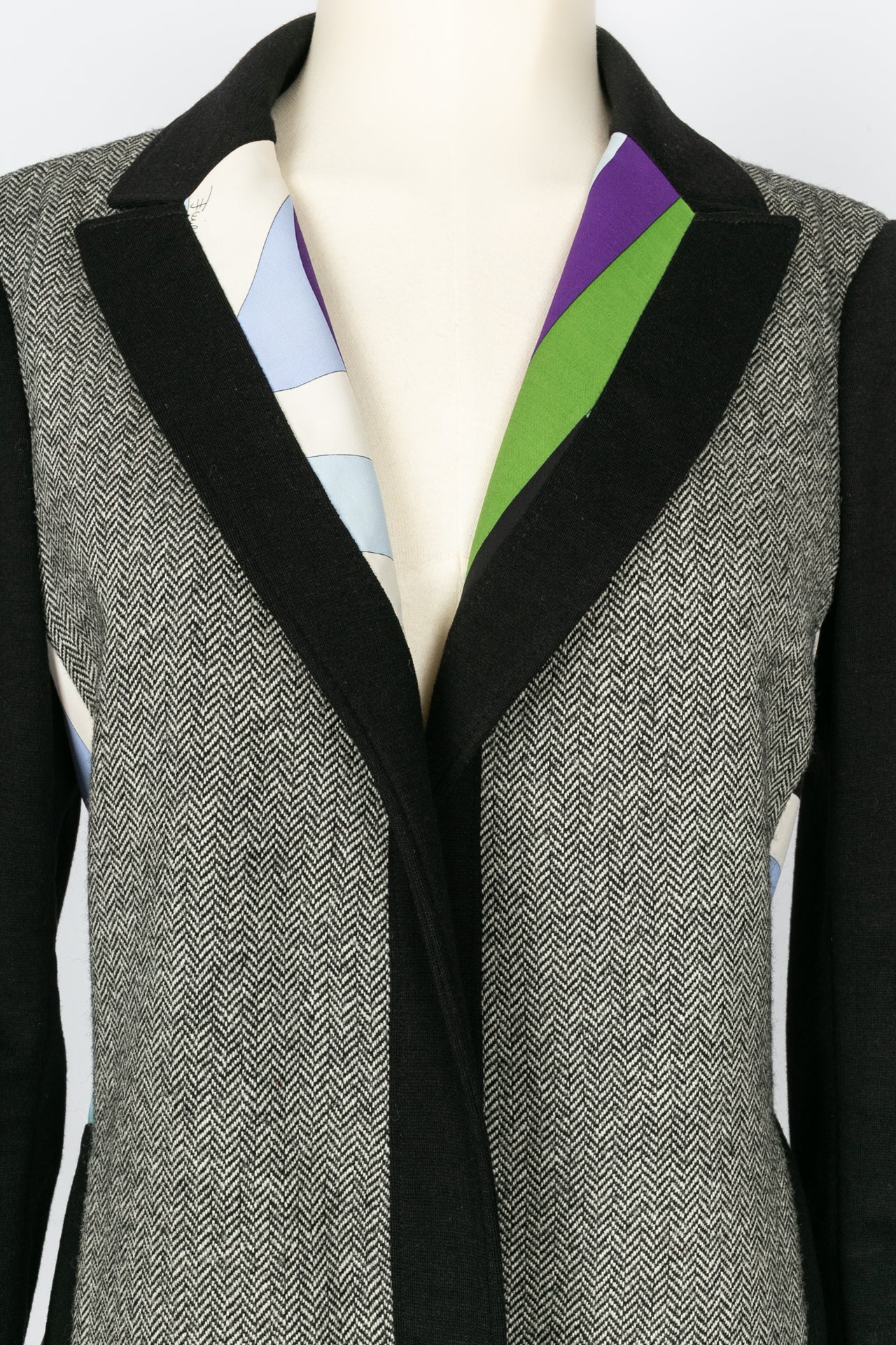 PUCCI -(Made in Italy) Suit made of wool and multicolored geometric printed fabric. Size 38FR. To note, several stains on the jersey.