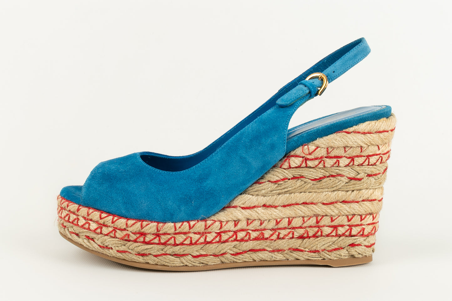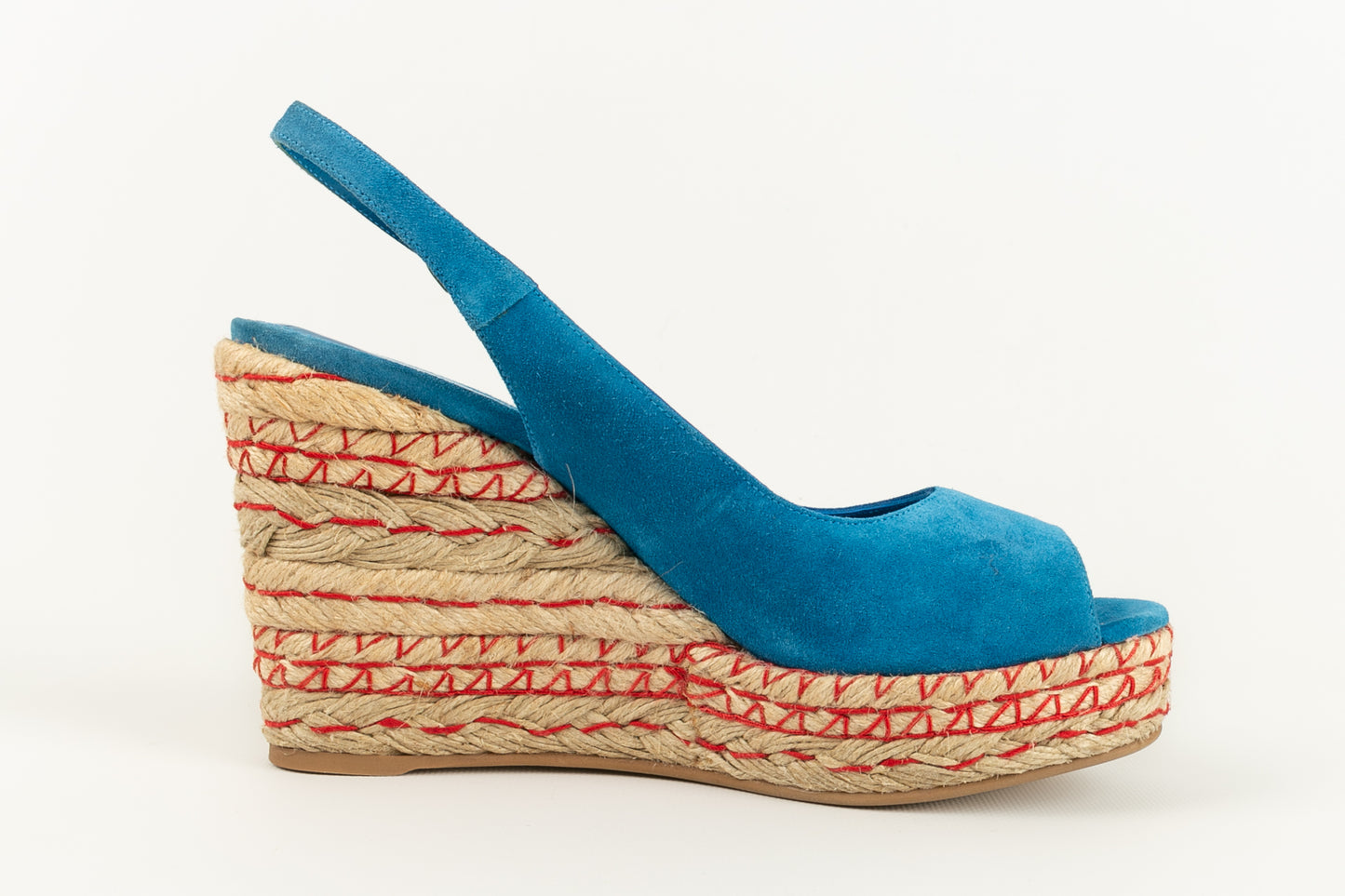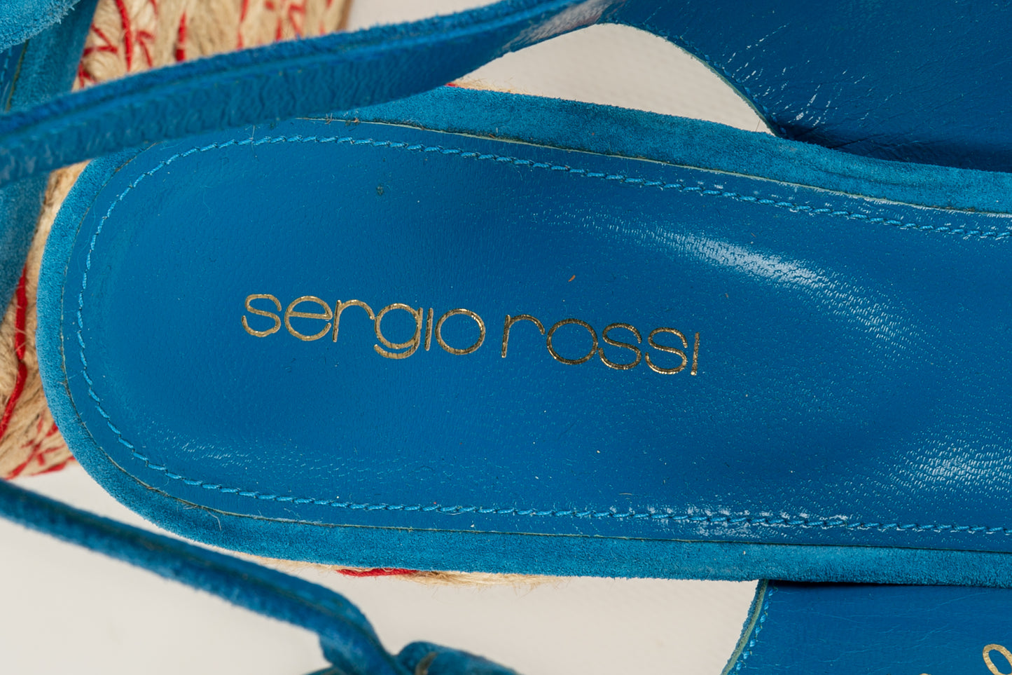 SERGIO ROSSI - (Made in Spain) Blue suede open-toe pumps. Size indicated 39EU.