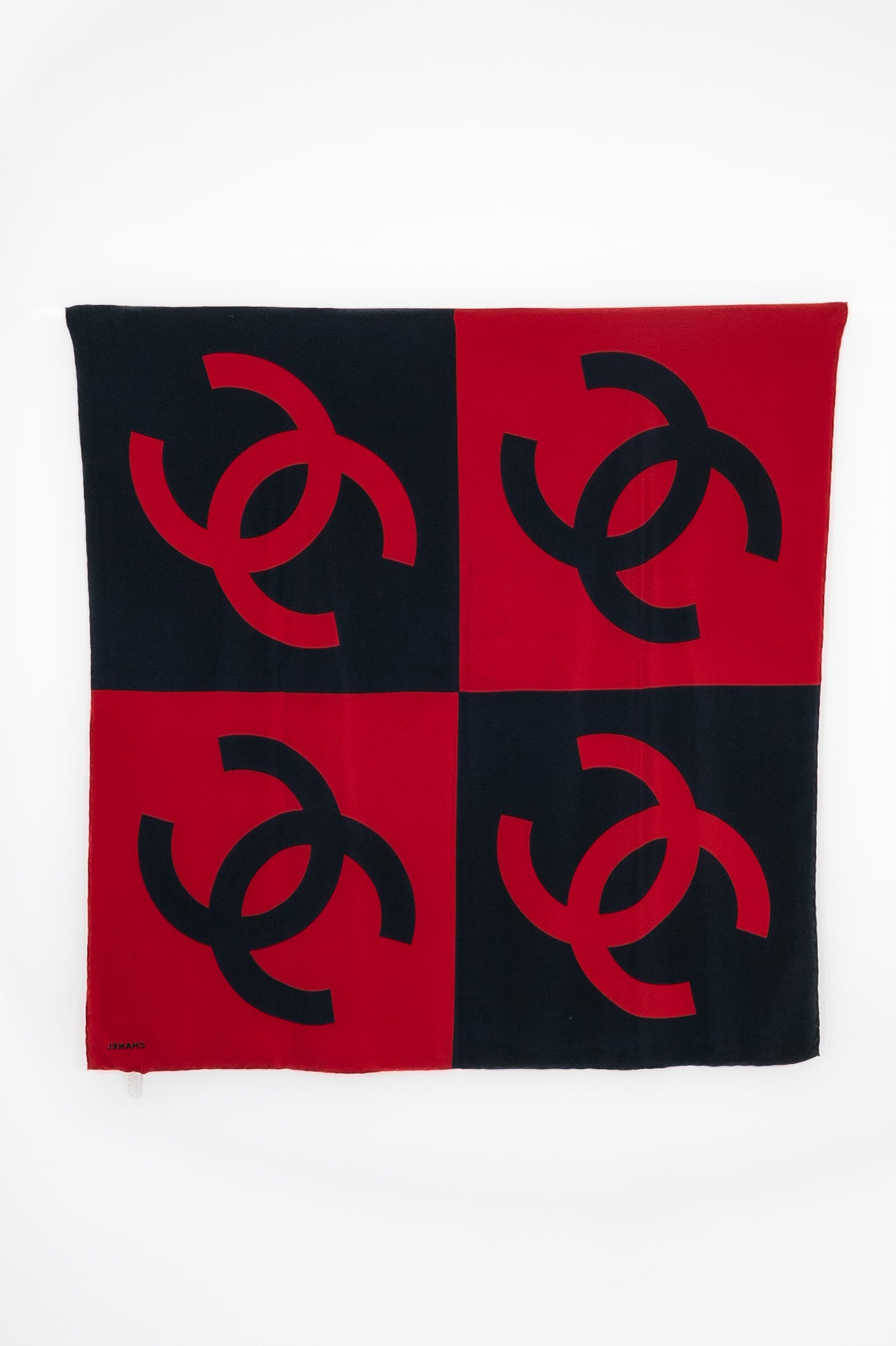 CHANEL - (Made in Italy) Red and blue silk foulard /scarf.