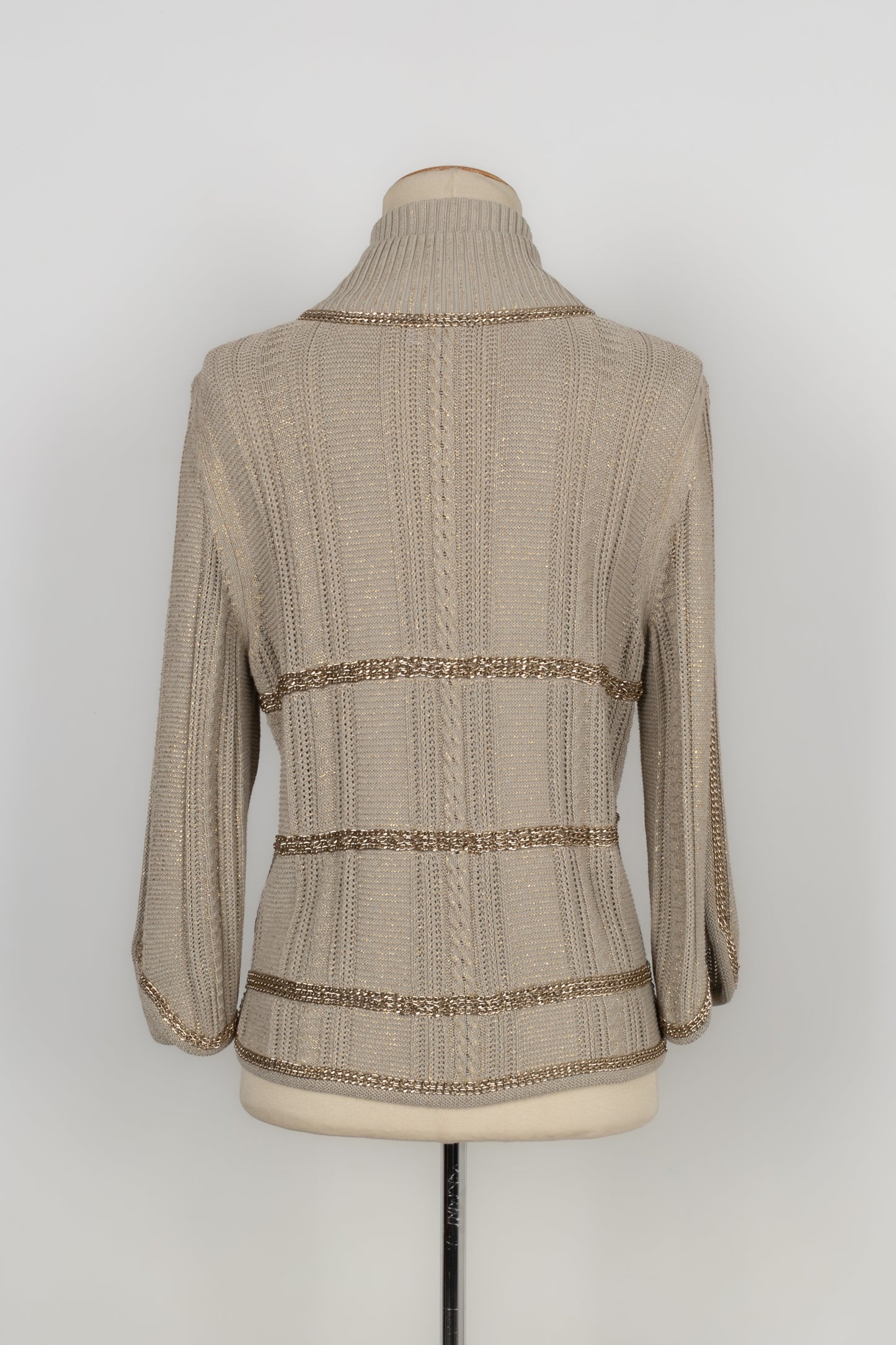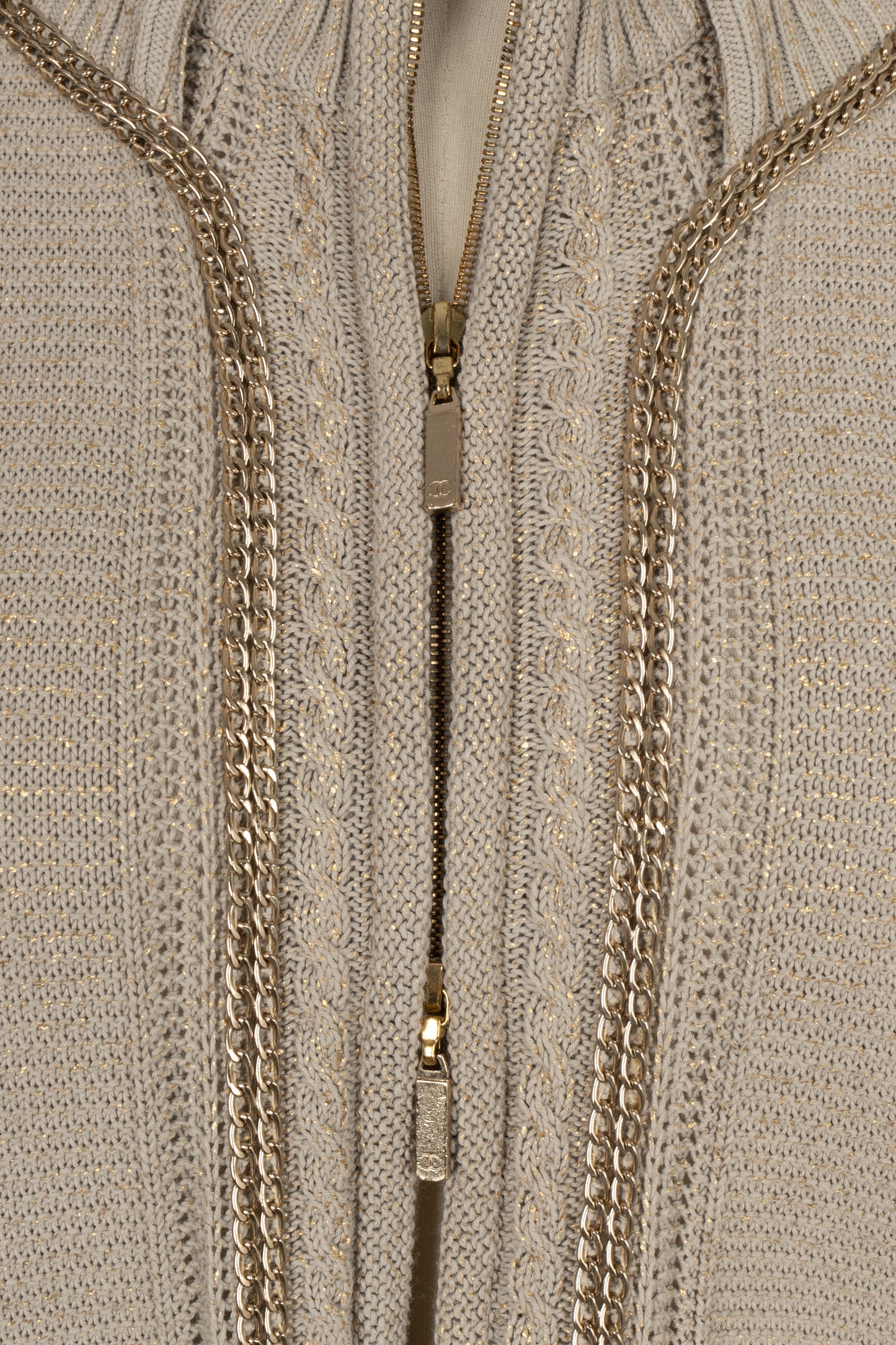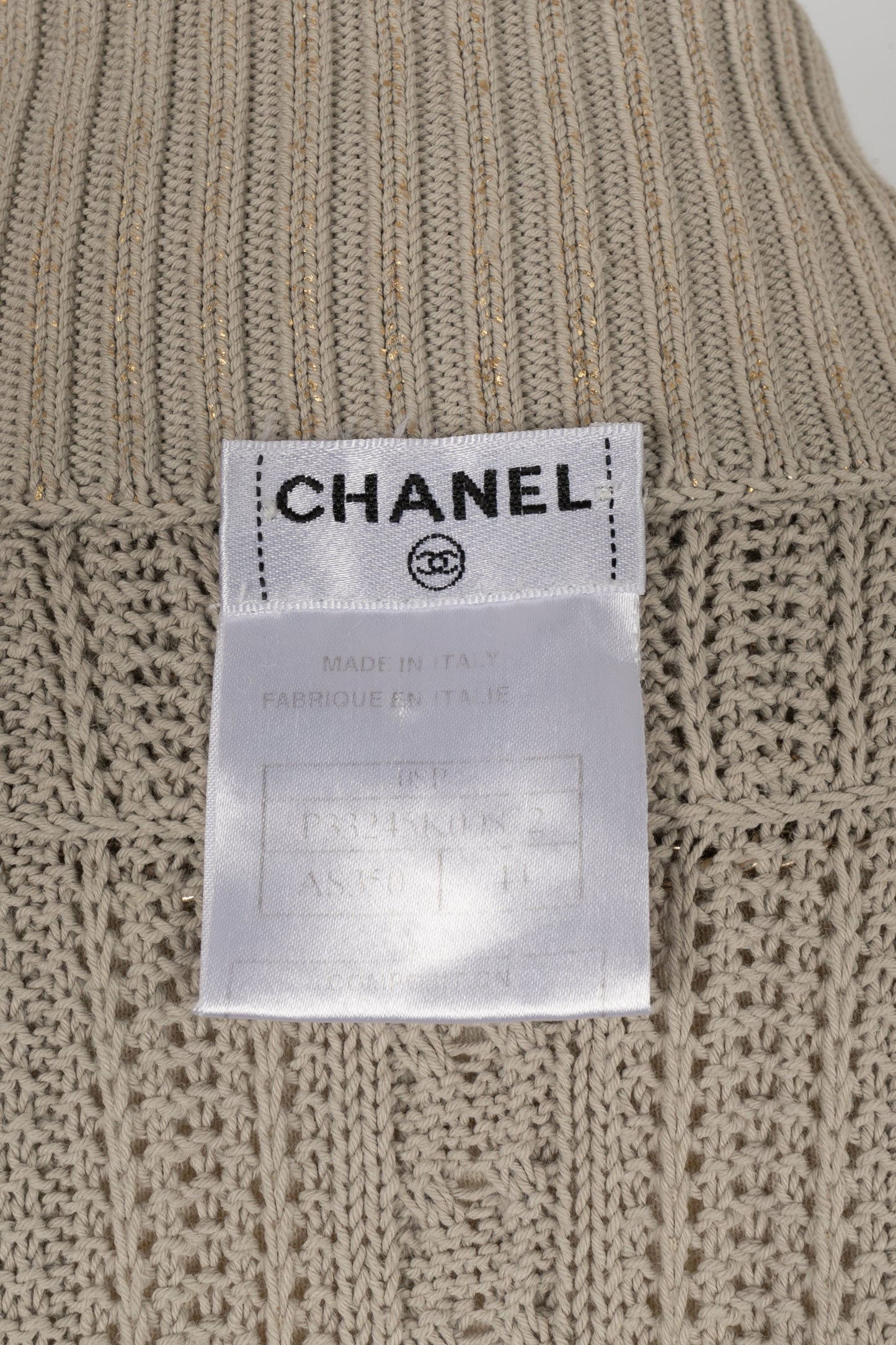 CHANEL - (Made in France) Coated mesh cardigan in beige/golden tones. Size 44FR. Spring-Summer 2008 Collection.