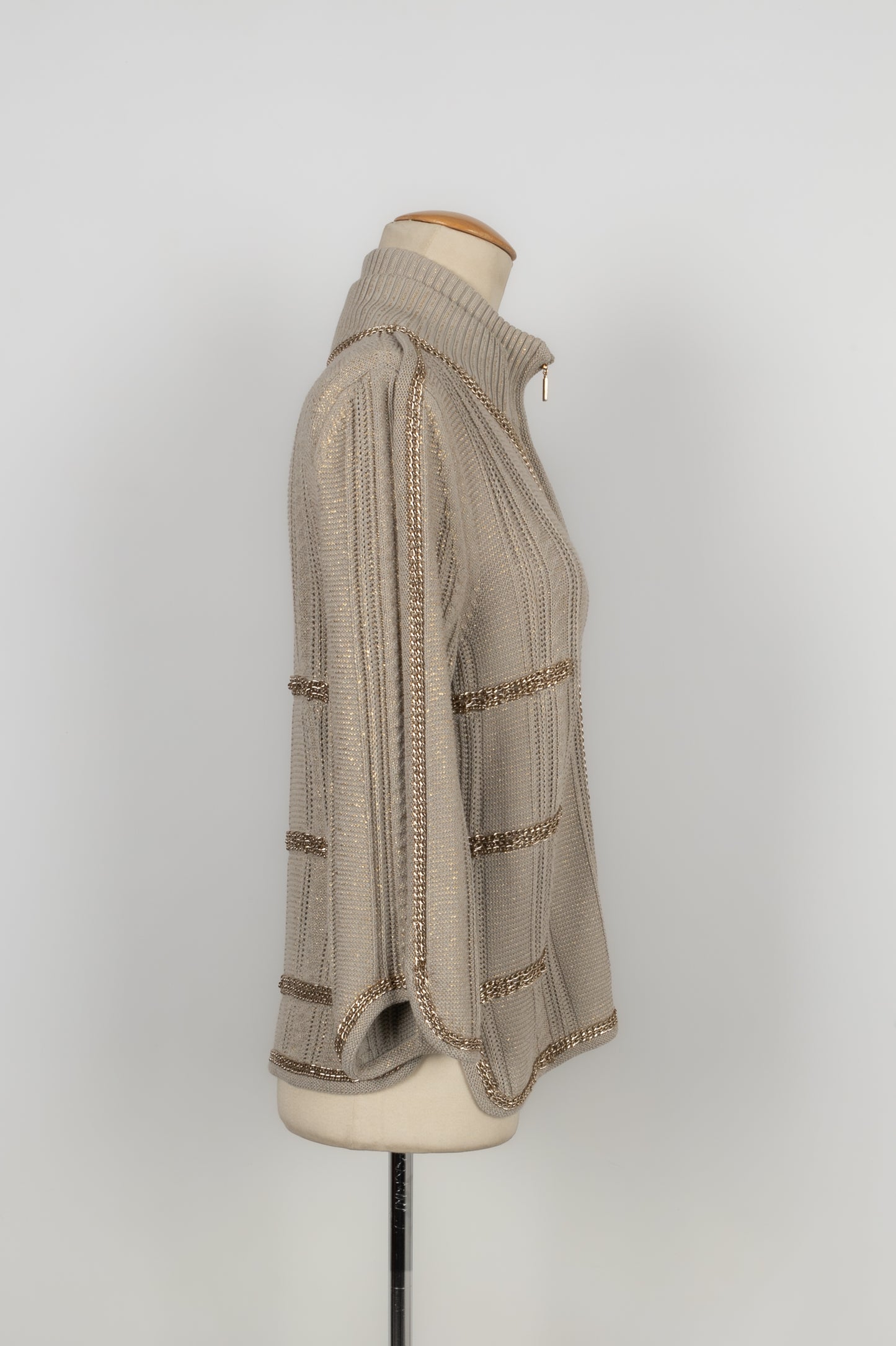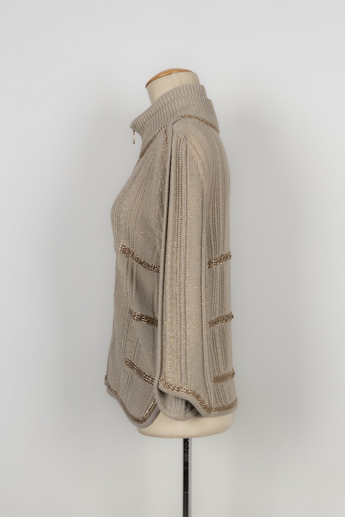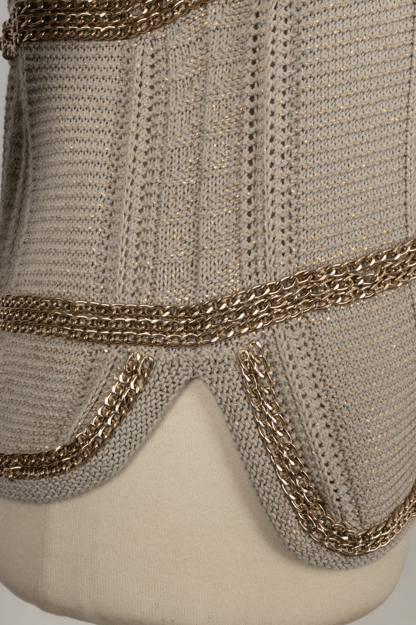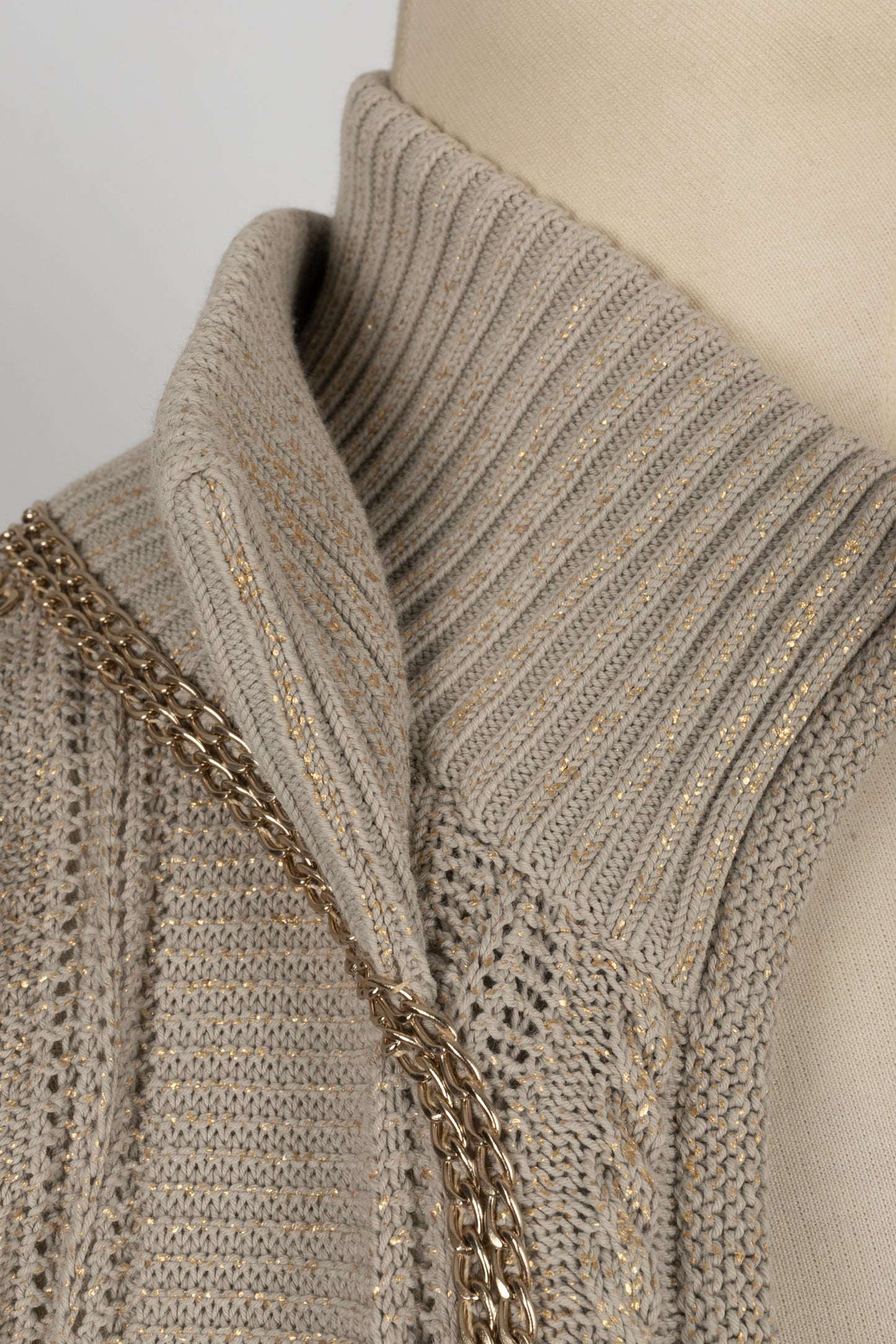 CHANEL - (Made in France) Coated mesh cardigan in beige/golden tones. Size 44FR. Spring-Summer 2008 Collection.