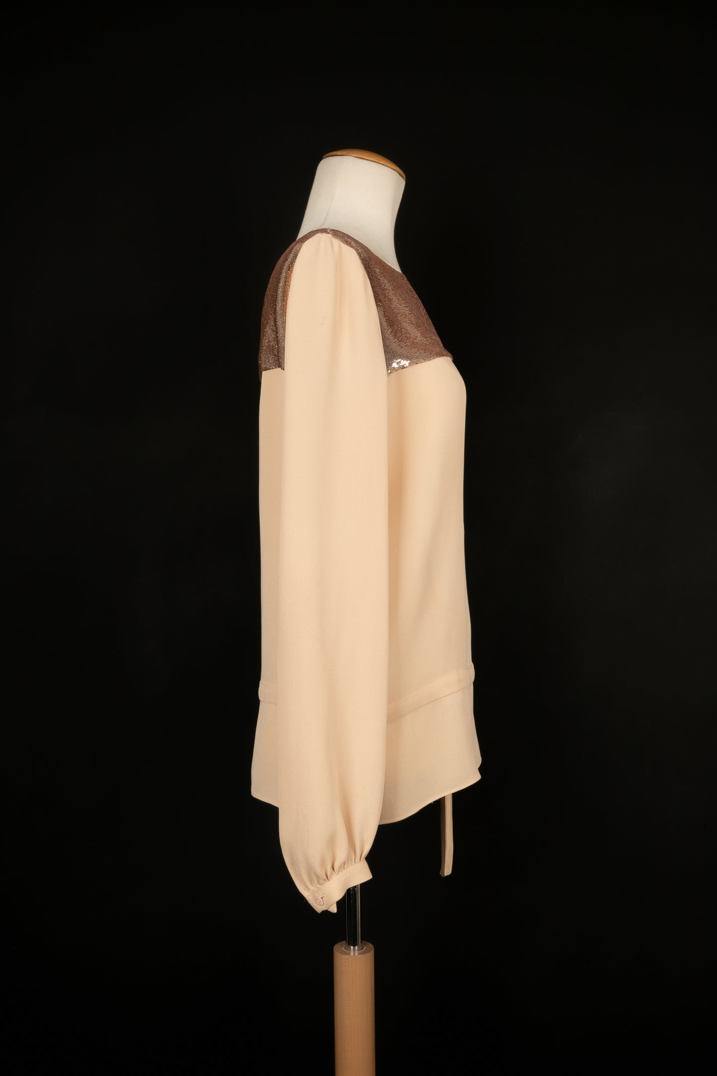 DIOR - (Made in Italy) Beige long-sleeve top embroidered with sequins. No size indicated, it fits a 36FR/38FR.