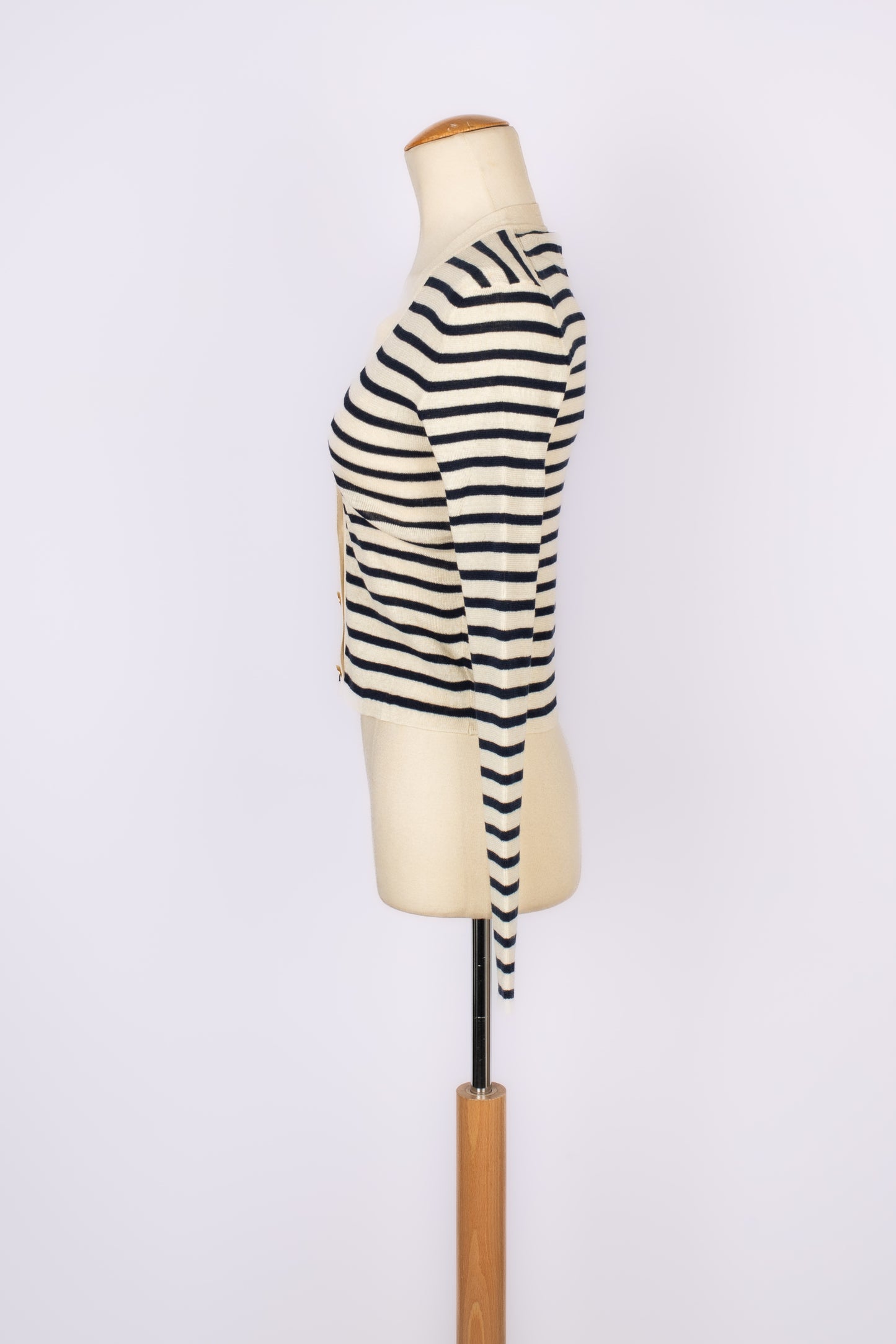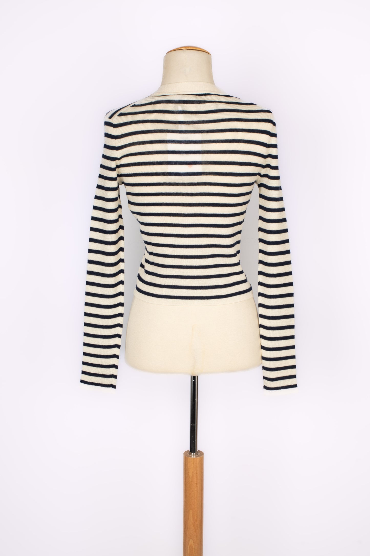 DIOR -(Made in Italy) Silk, cashmere and linen cardigan with blue and white stripes. Size 38FR indicated.