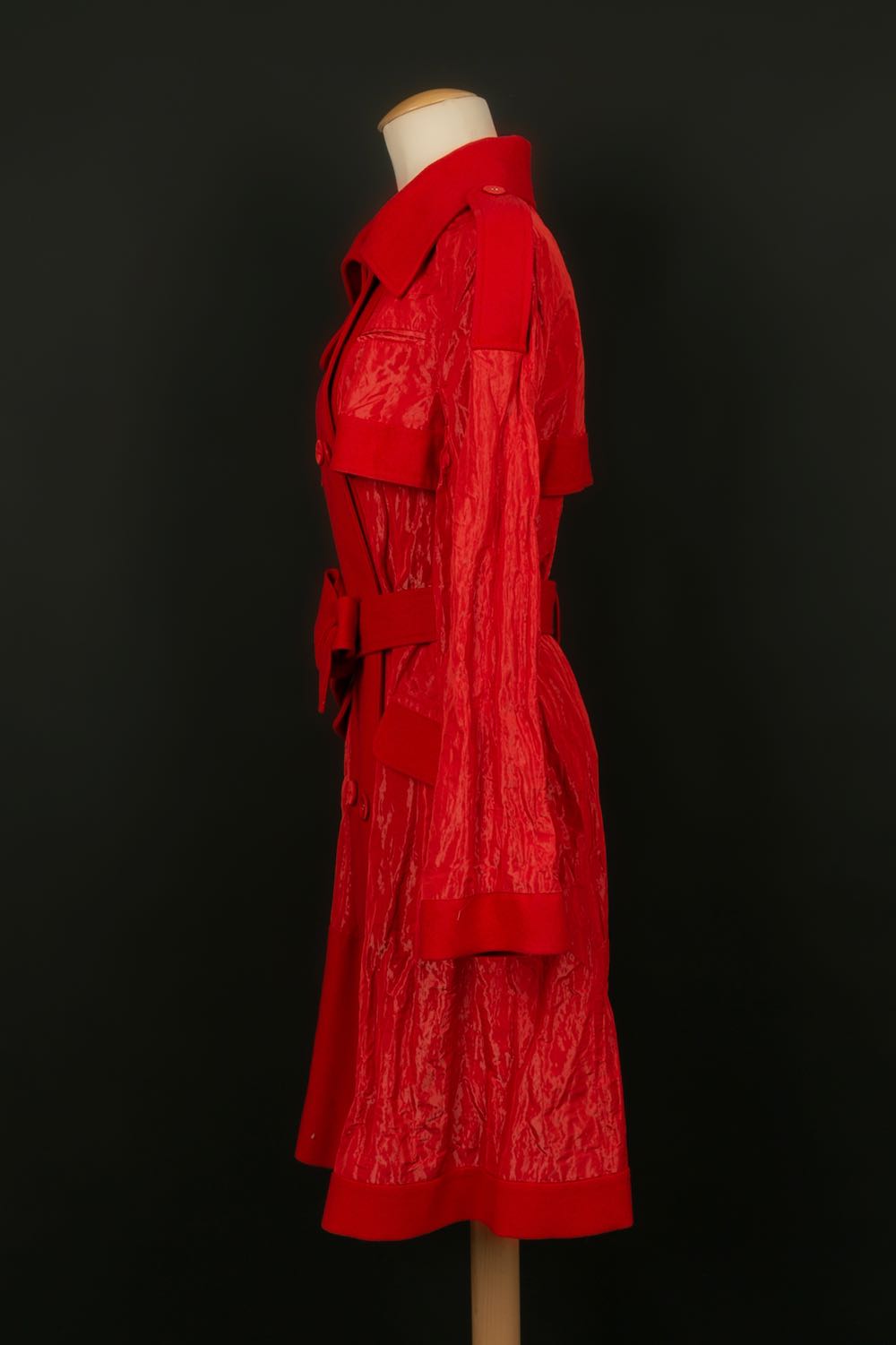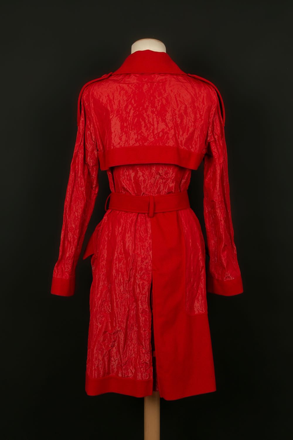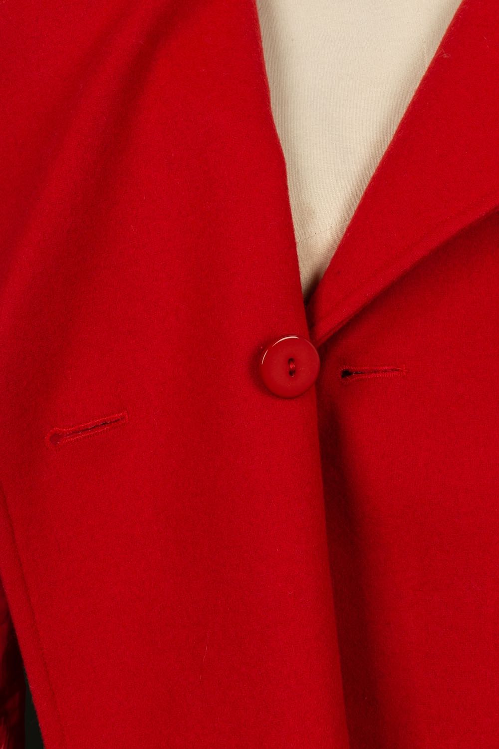 DIOR - (Made in France) Red wool and polyester coat. Monogrammed silk lining. Size 36FR. Collection 2006.