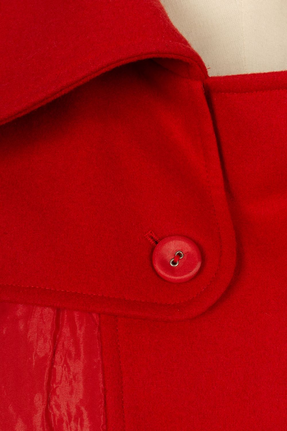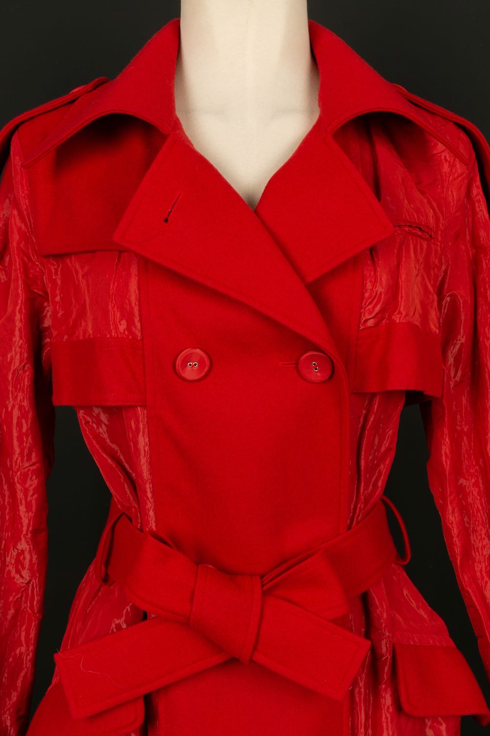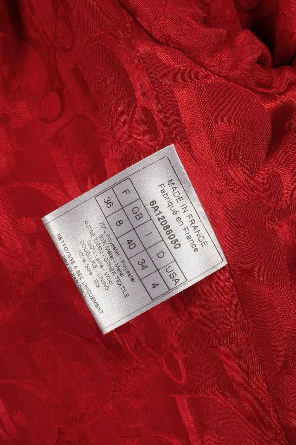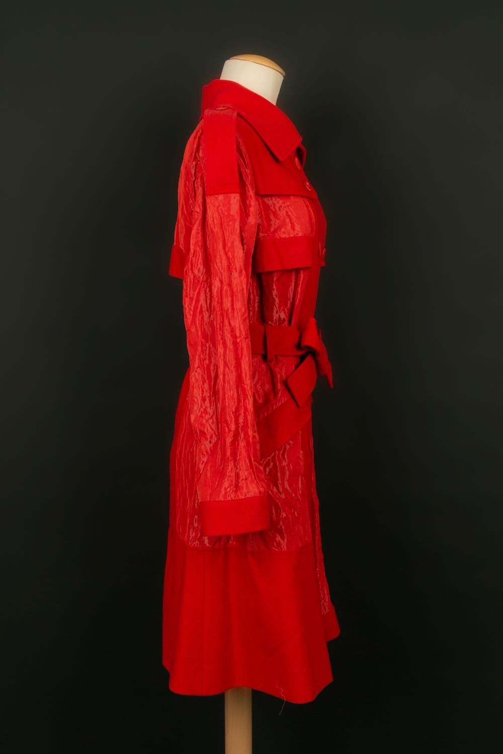 DIOR - (Made in France) Red wool and polyester coat. Monogrammed silk lining. Size 36FR. Collection 2006.