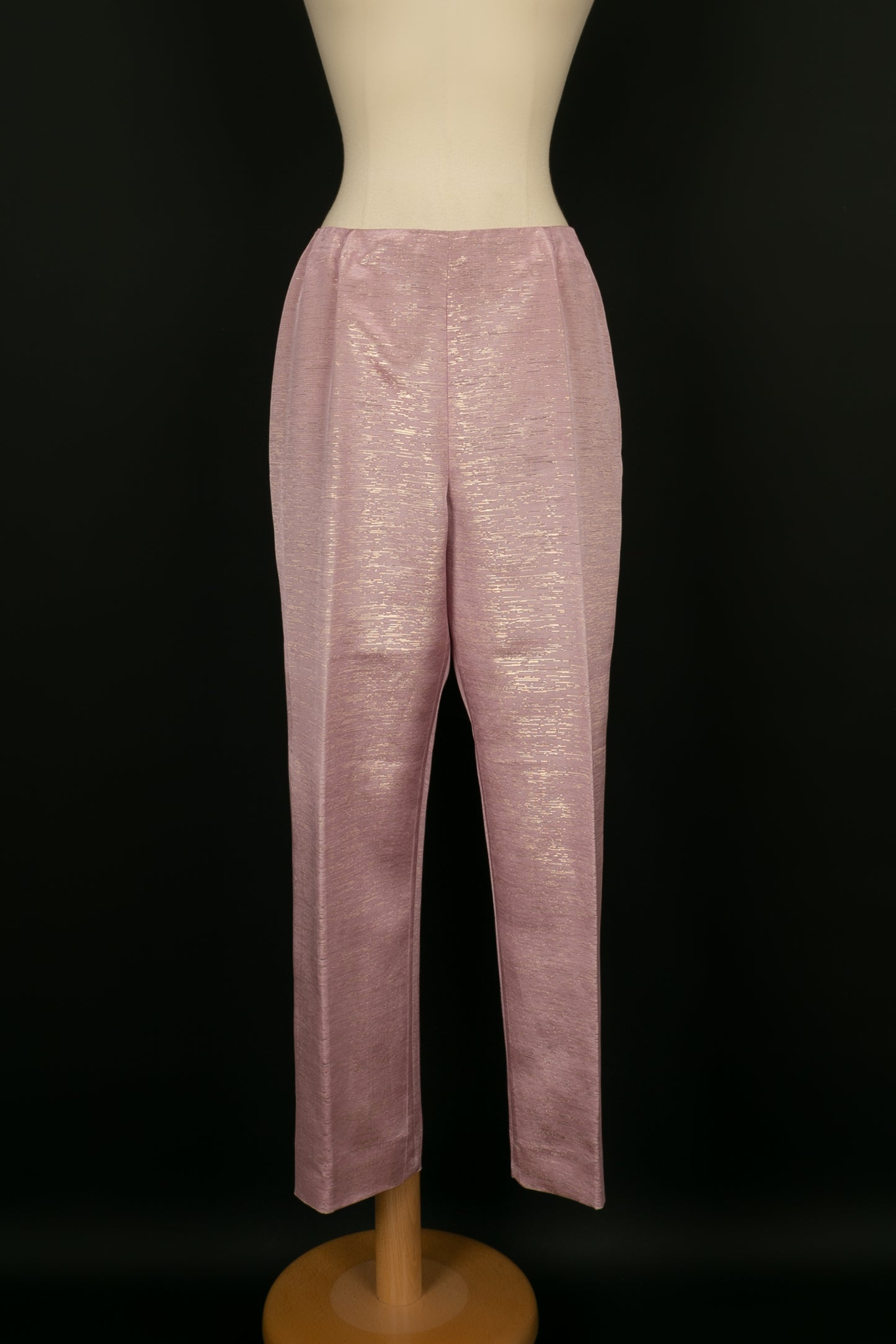 NINA RICCI -Pants in iridescent pink taffeta. No size indicated, it fits a 36FR/38FR.