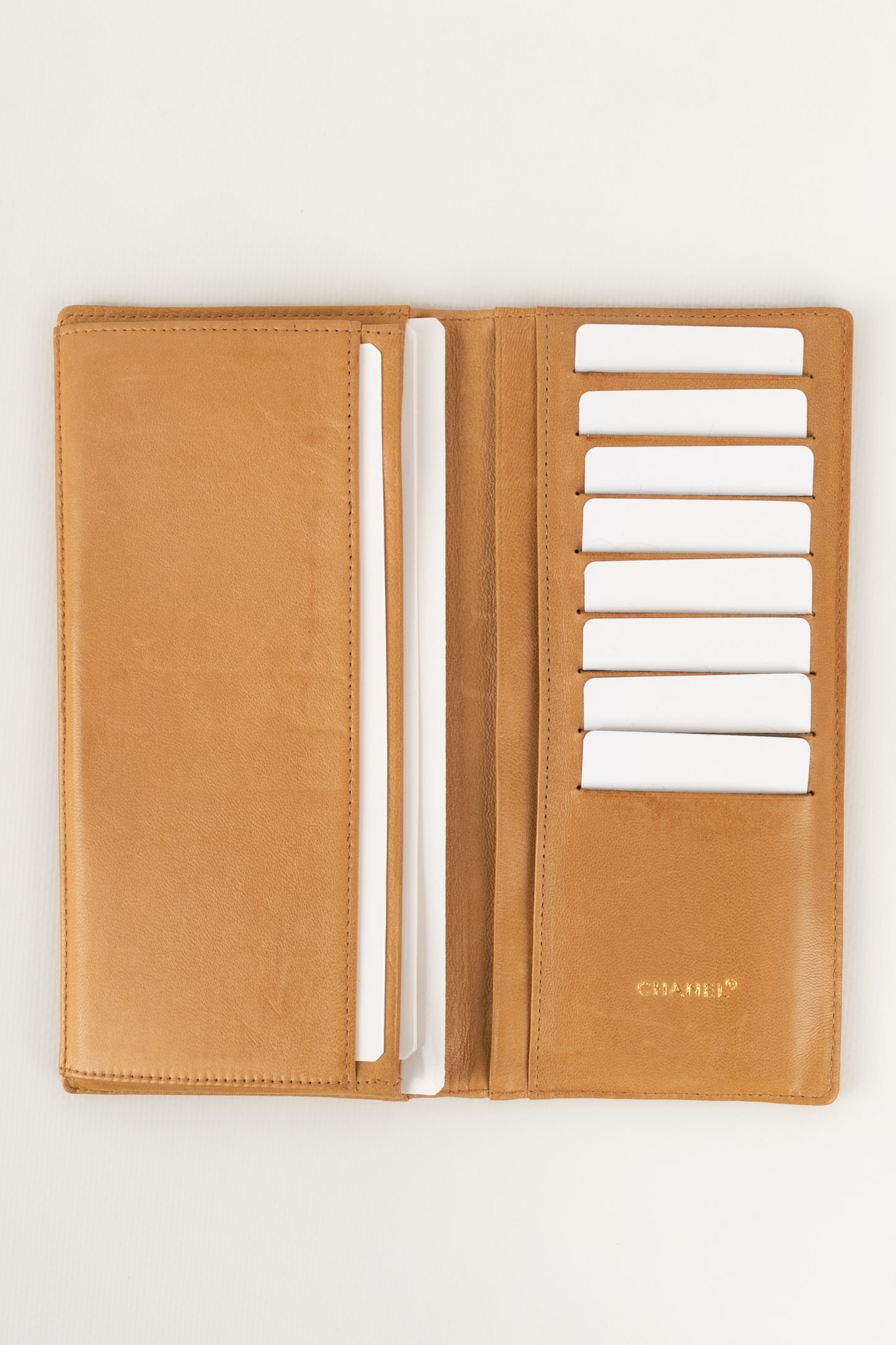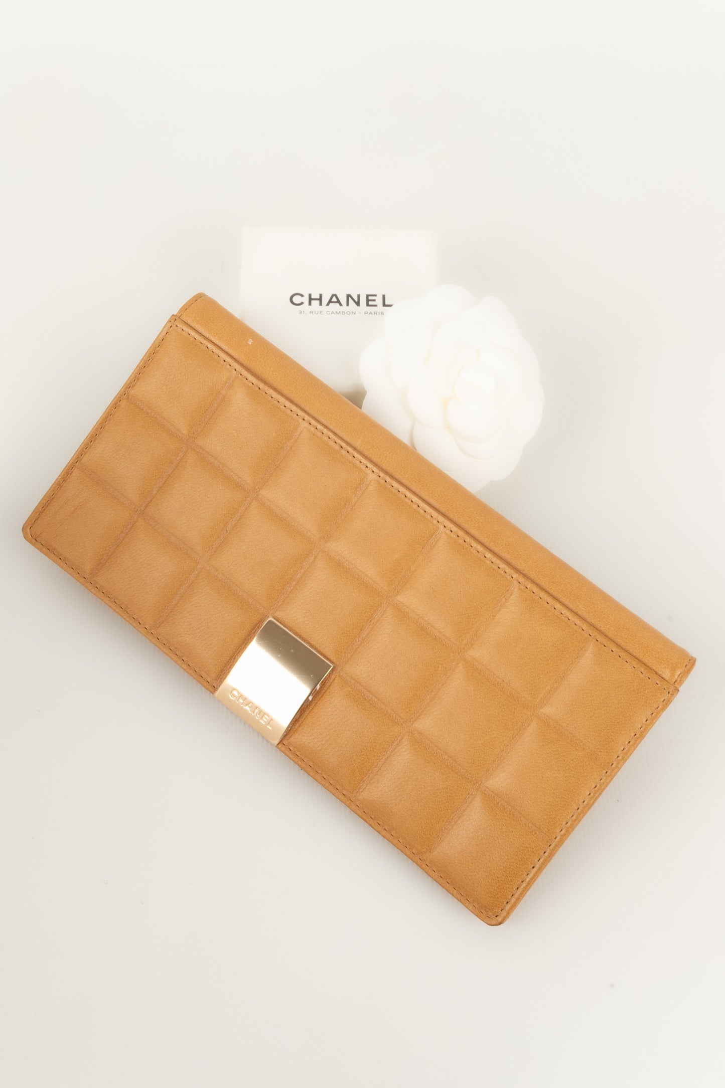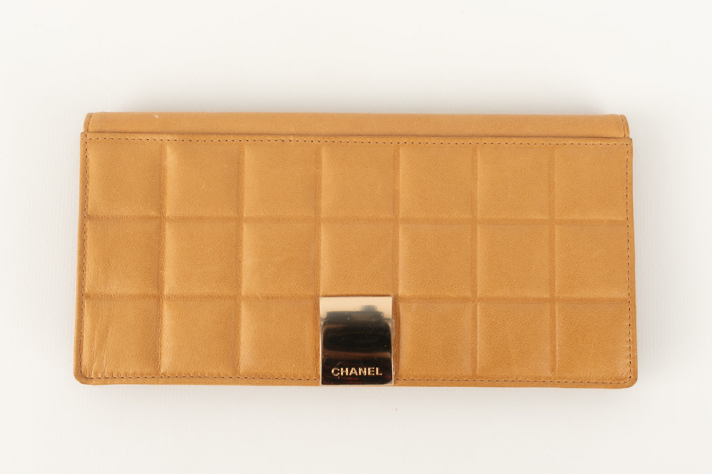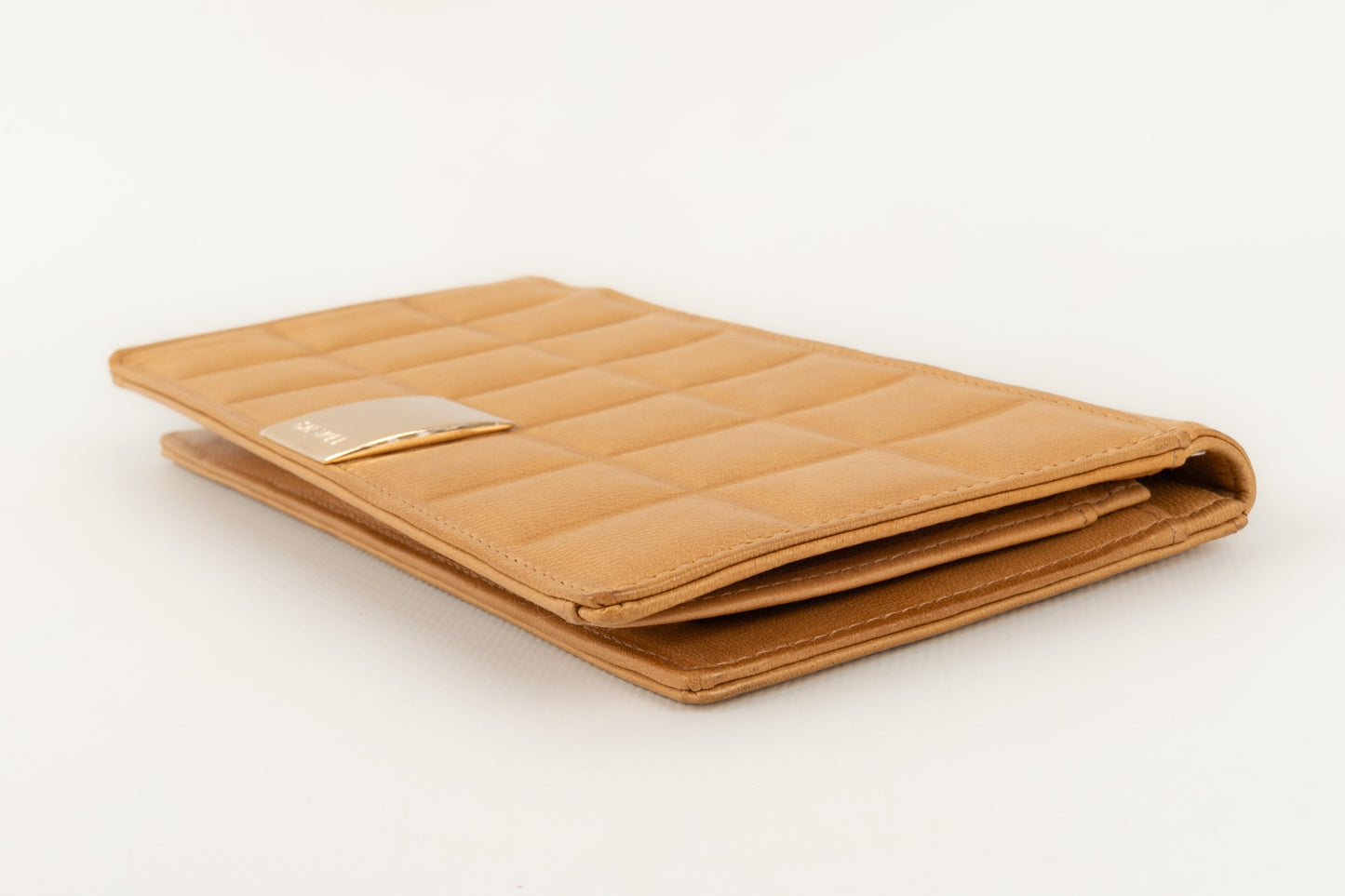 CHANEL -Golden metal and beige leather wallet with a serial number. 2002/2003 Collection.