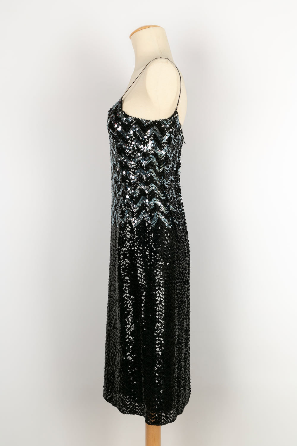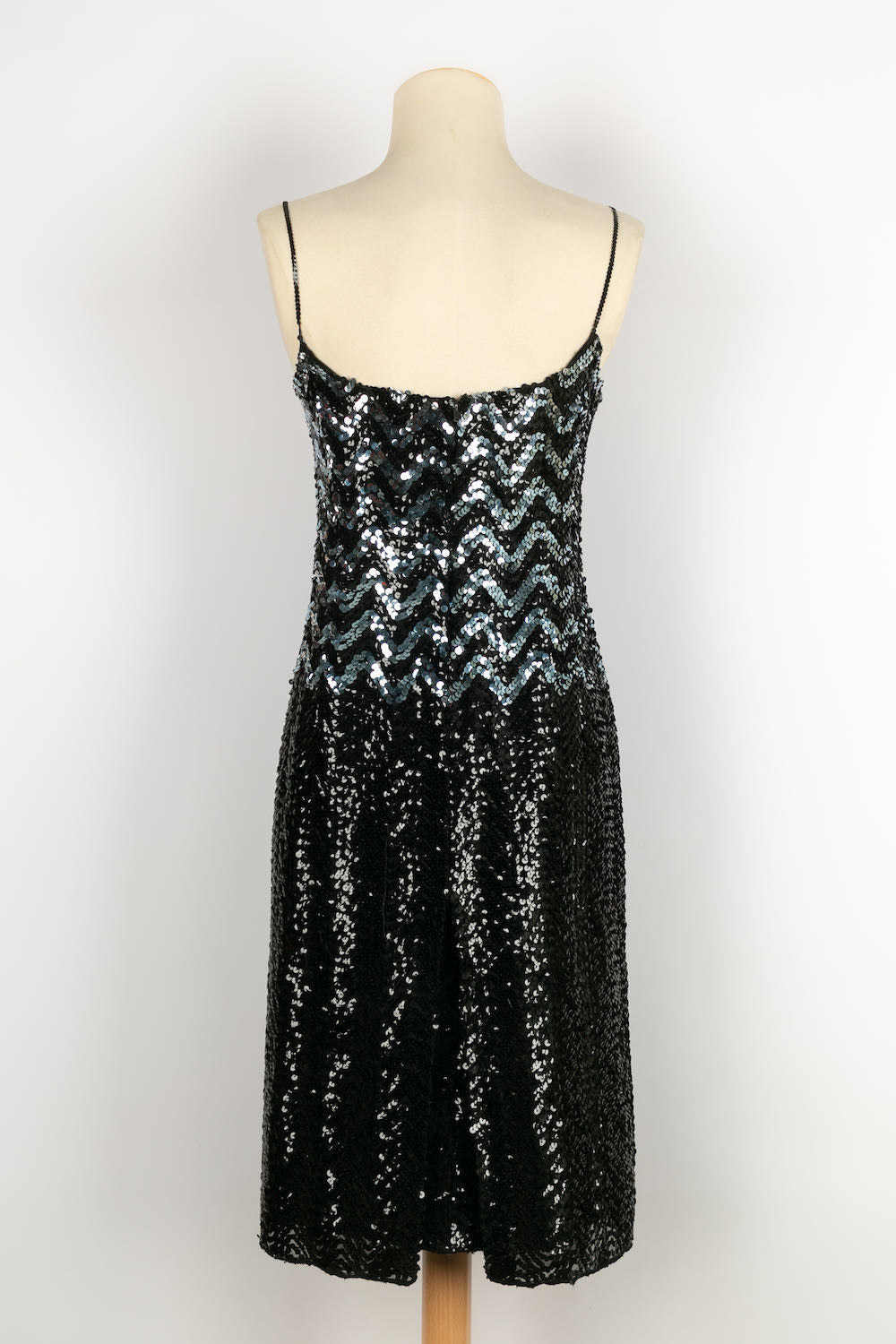 LOUIS FÉRAUD -Dress embroidered with black and blue sequins. Size 38FR.