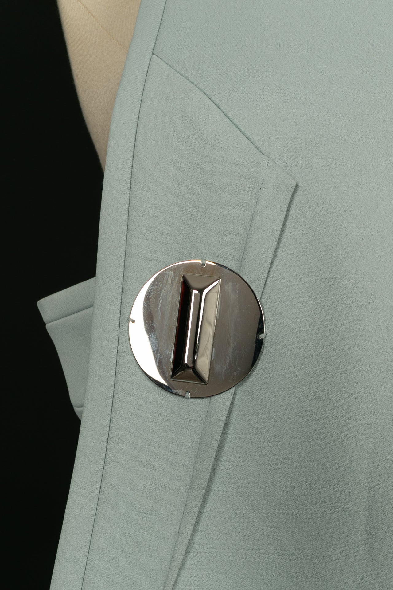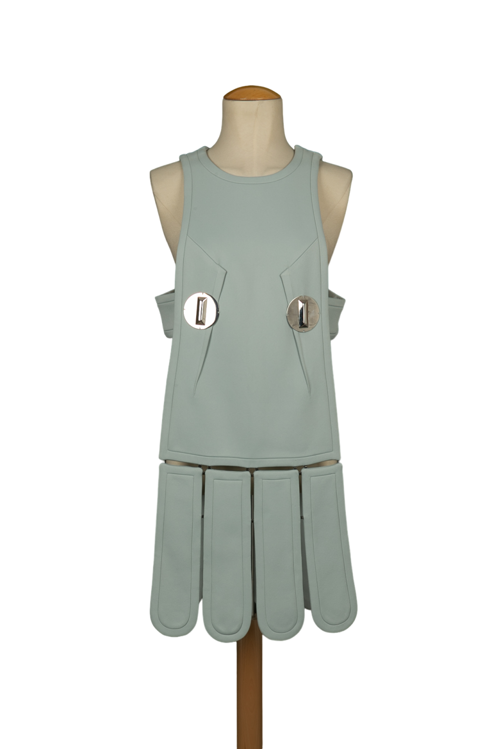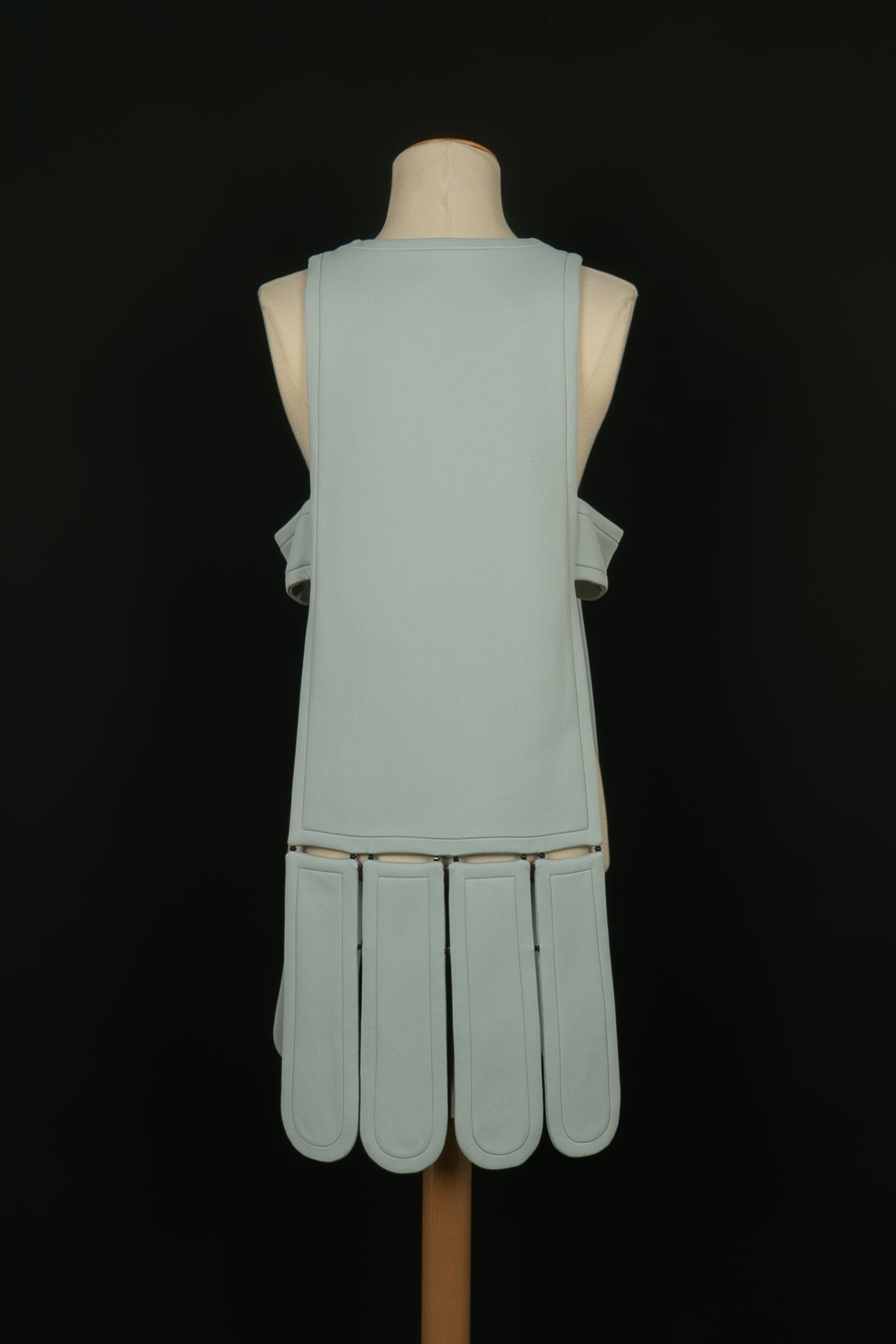 PAULE KA -Duchess satin light blue / gray and silver metal dress. No size indicated, it corresponds to a 36FR/38FR. Spring-Summer 2011 collection.