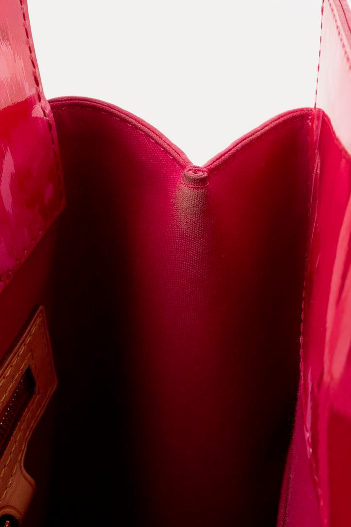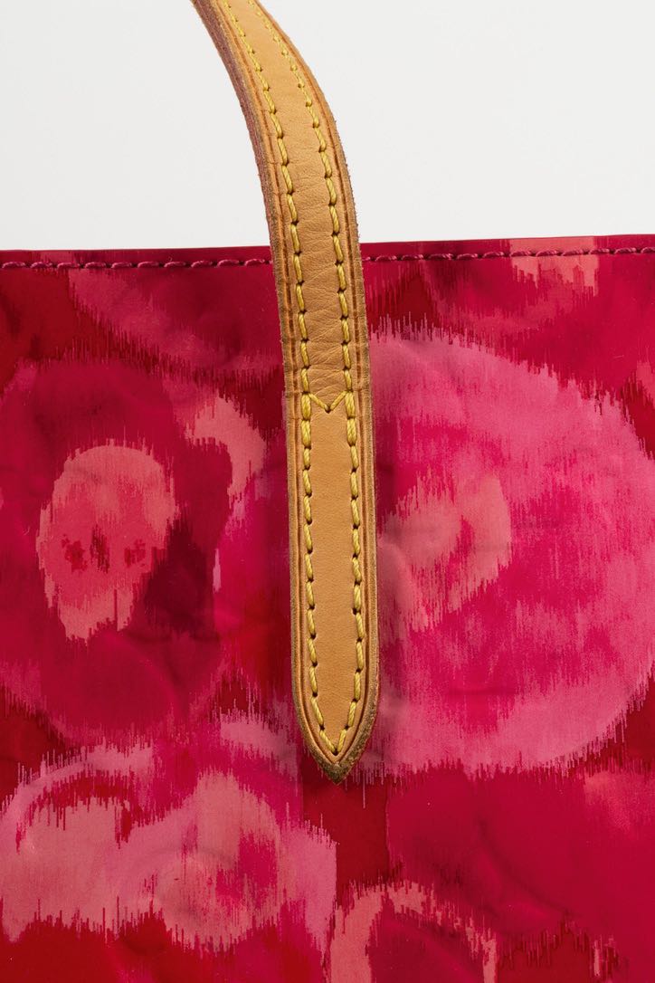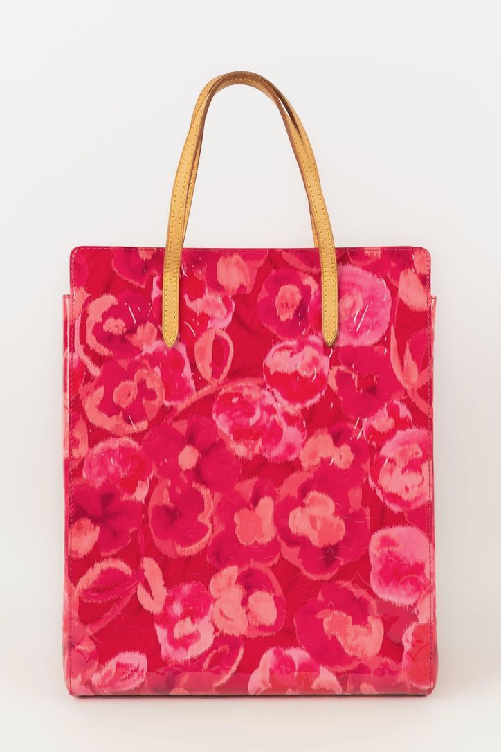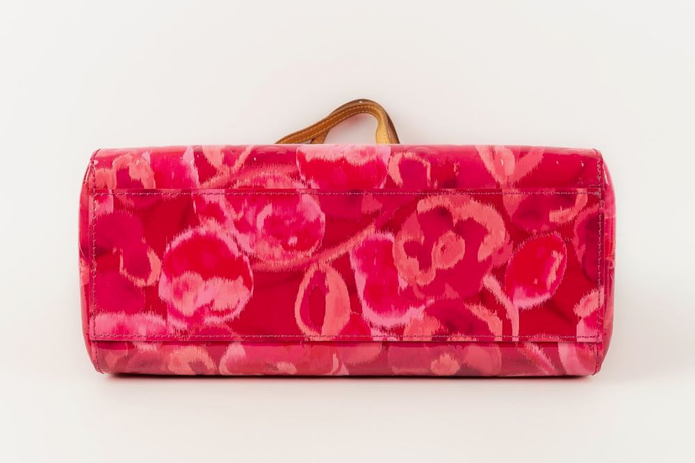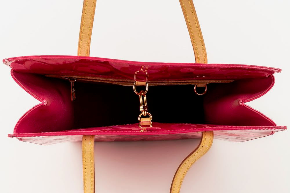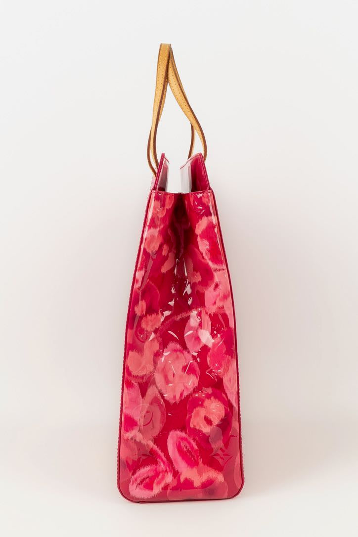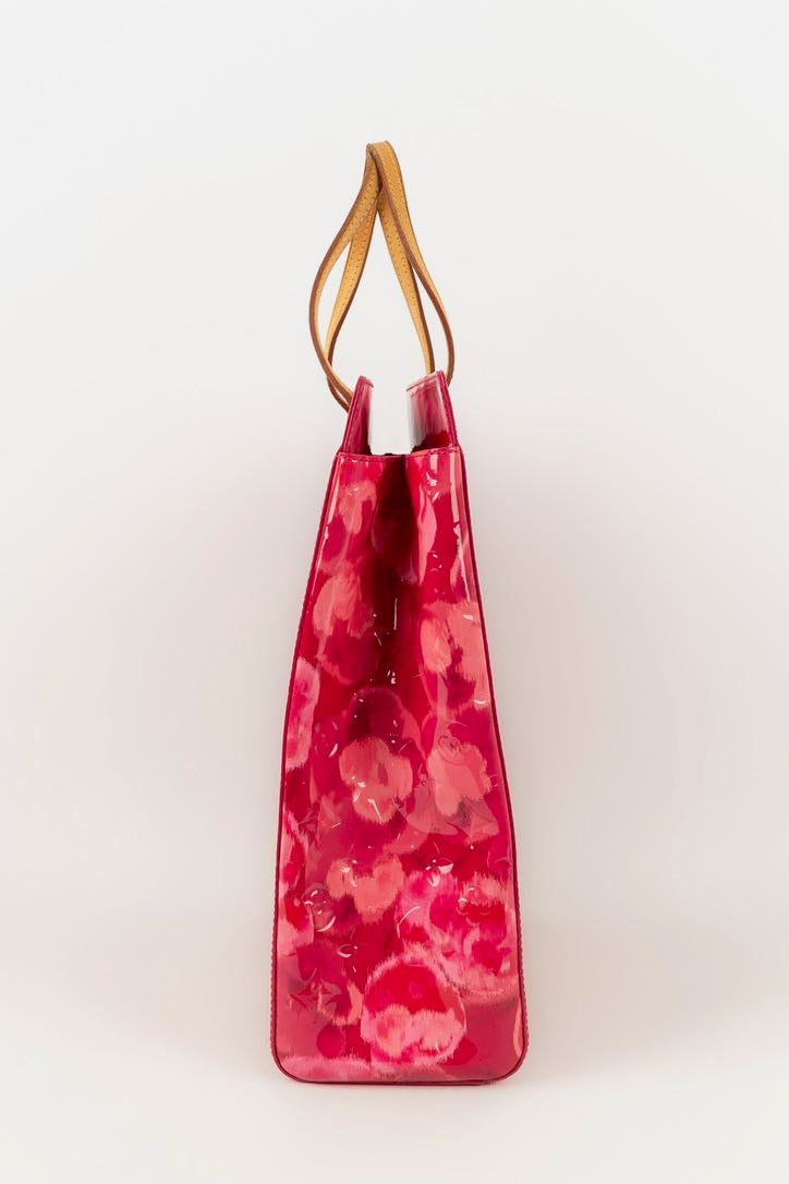 LOUIS VUITTON - (Made in France) Catalina shopping bag in pink monogram patent leather and natural leather, garniture in gold-plated metal, and double handle in natural leather.