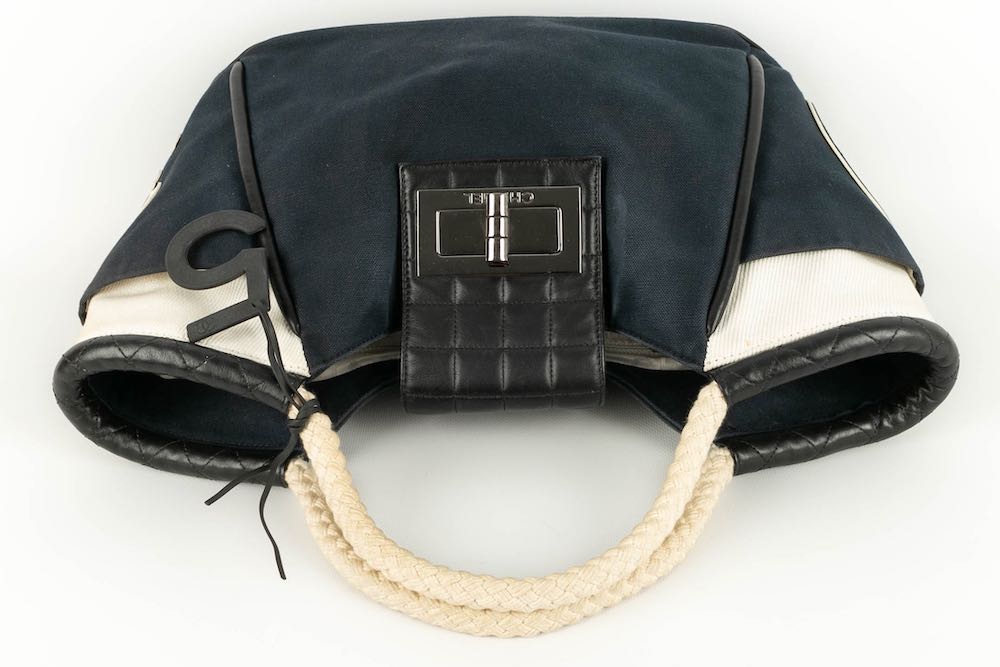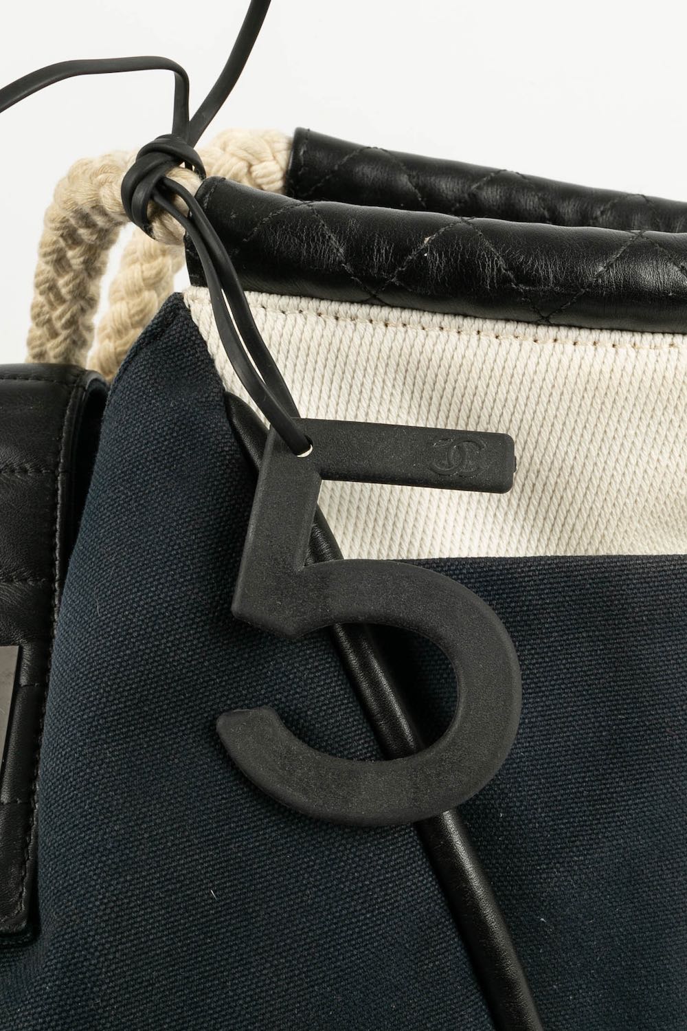 CHANEL - (Made in Italy) Black leather and canvas bag. Attributes in silver plated metal. Serial number present Collection 2004/2005. Good condition. Presence of signal tasks present.