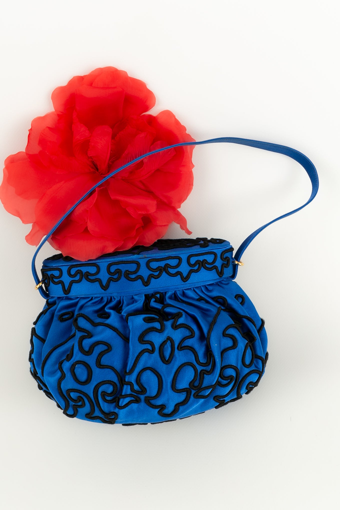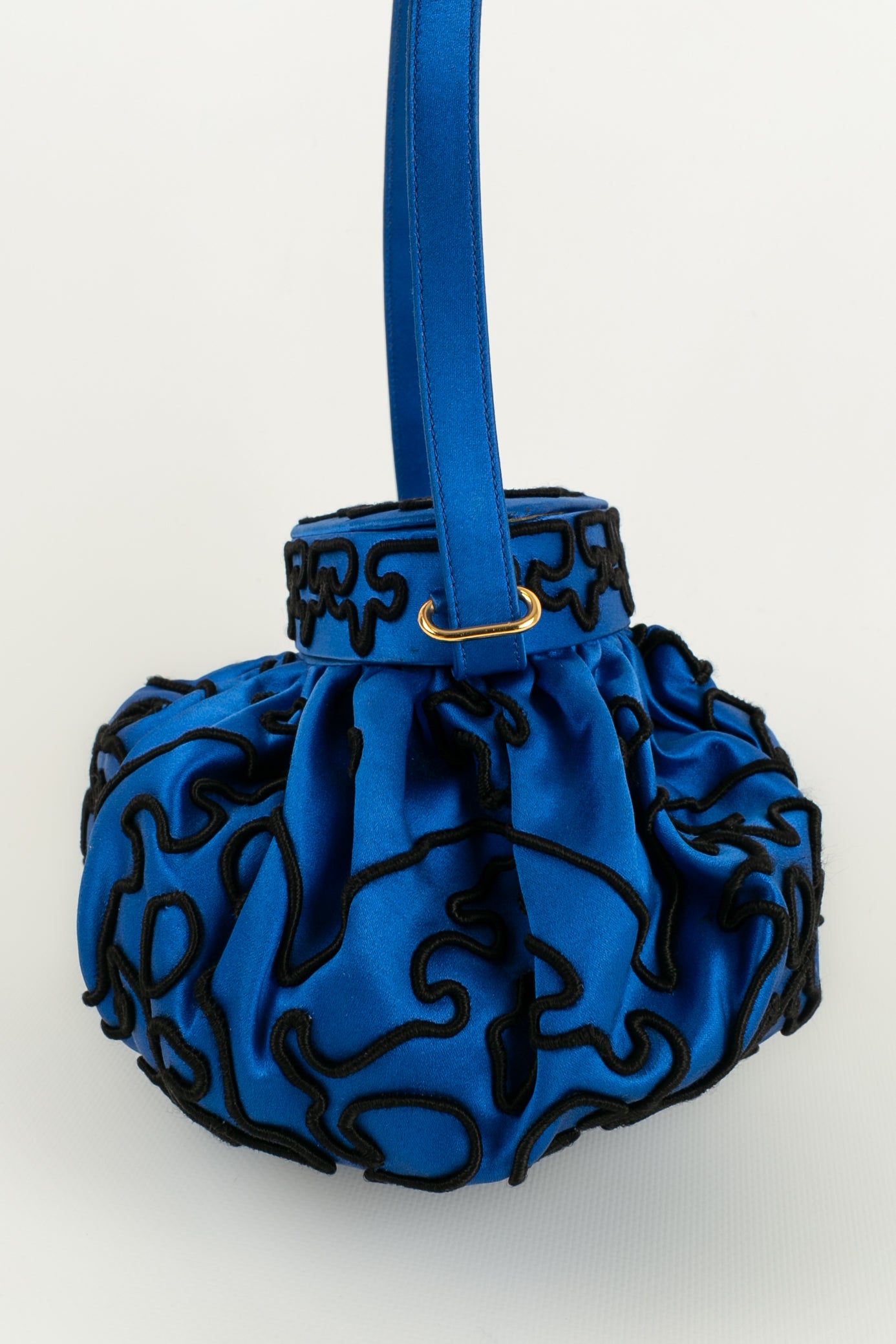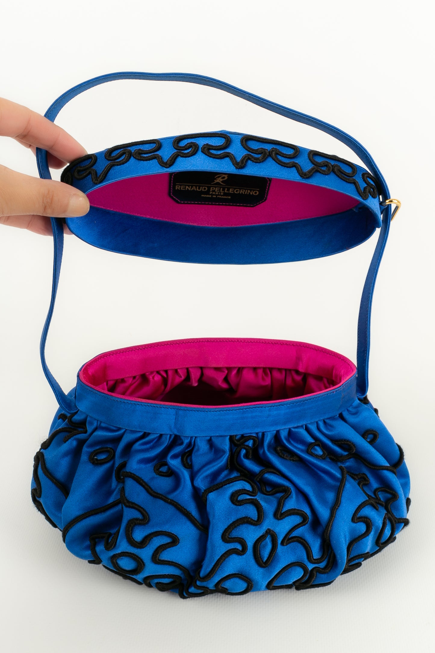 RENAUD PELLEGRINO - (Made in France) Blue silk bag with black trimmings.